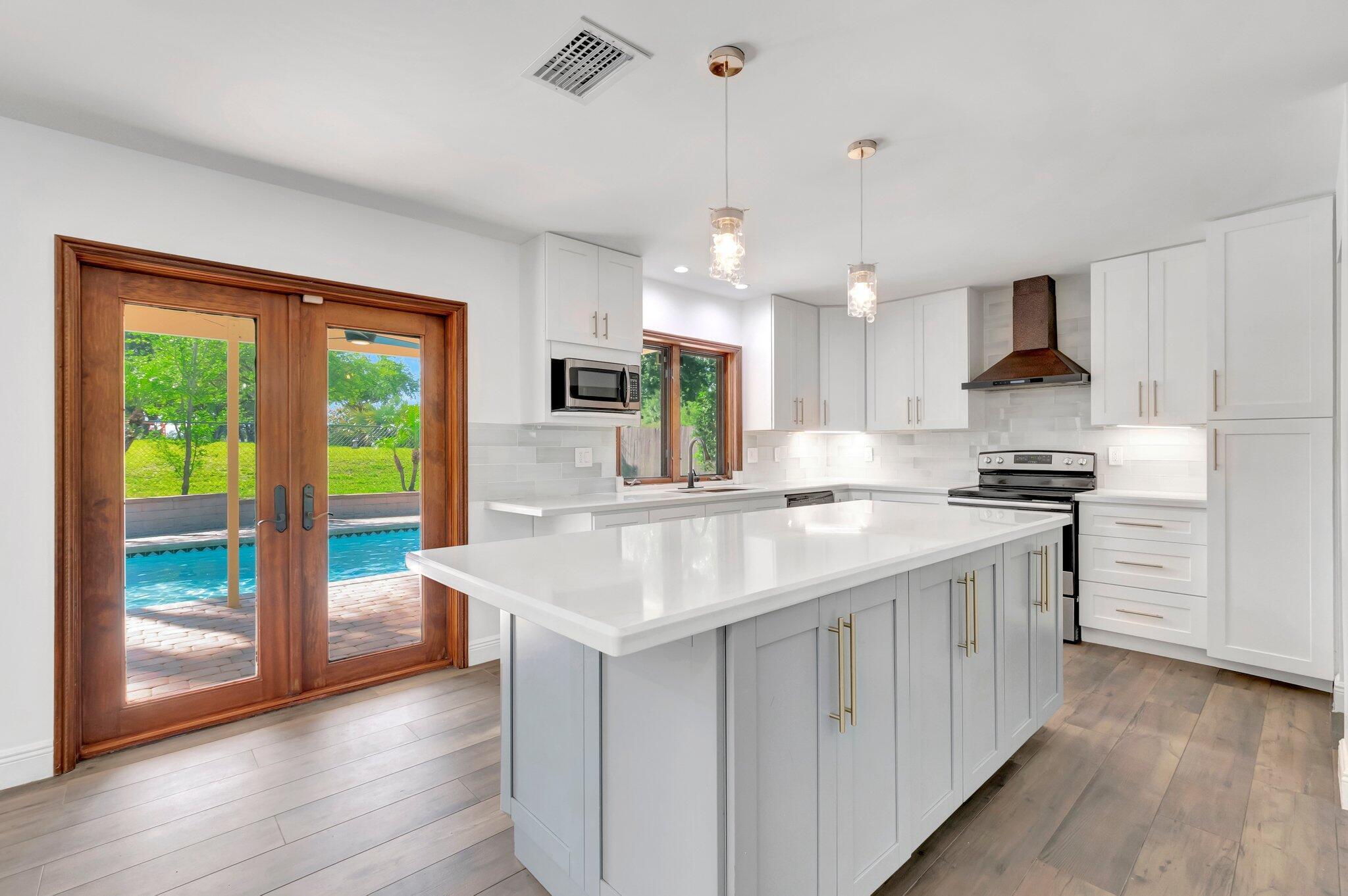 Price adjustment for an immediate sale! Ready to move in. Spacious, clean, and updated. This 4-bedroom, 2 bathroom, 2-car garage, pool home in Central Boca Raton is zoned for Boca's best school district. Oversized pool backing to private gated access to community park and playground.Low HOA under $1300 per YEAR! Home features wood-look tile flooring in main areas, real wood floors in bedrooms, smooth ceilings, and recessed lighting. Open kitchen with quartz countertops, white shaker-style cabinetry, large island, and custom windows and doors. Cabana door for swimming and kitchen pass-through window for entertaining. Flex room in garage with exterior door.Freshly painted inside and out.Resurfaced pool.Close to house of worship, shopping, restaurants, I-95, Boca Town Center Mall,and beaches