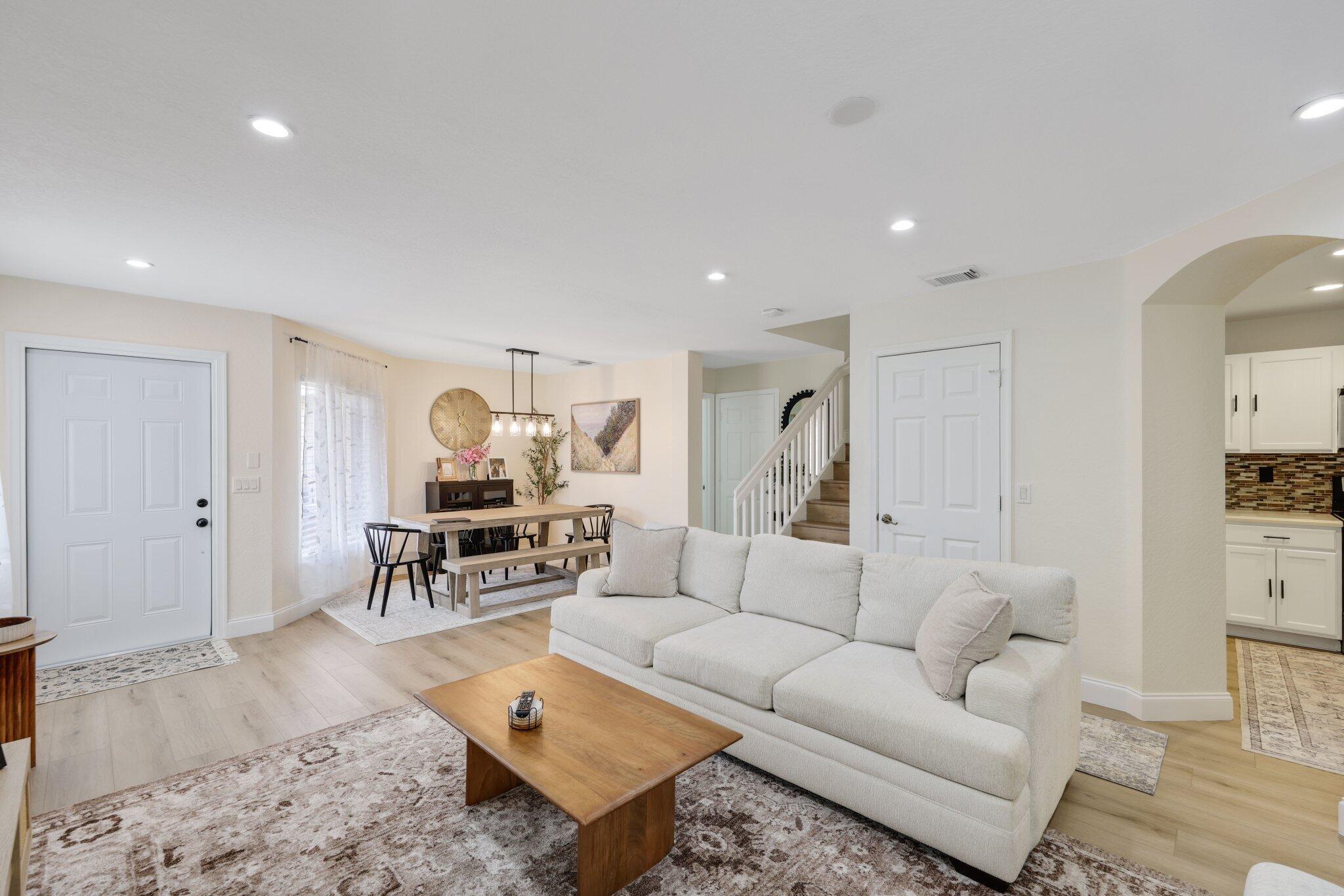 Welcome to this beautifully remodeled end-unit townhome in the gated community of Briar Bay! This home has been thoughtfully upgraded with a brand-new AC and heater, a hurricane-rated front door, and a whole-home water softener filtration system--giving you comfort, peace of mind, and added value from day one.Step inside and you'll notice the updated flooring and energy-efficient LED lighting that create a clean, modern feel throughout. The kitchen features newer appliances and is perfect for everyday meals or entertaining guests. The open-concept layout flows seamlessly between the living and dining areas, making it easy to enjoy time with family and friends.Upstairs, the spacious bedrooms offer comfort and privacy, while the bonus den/office provides a flexible space for working