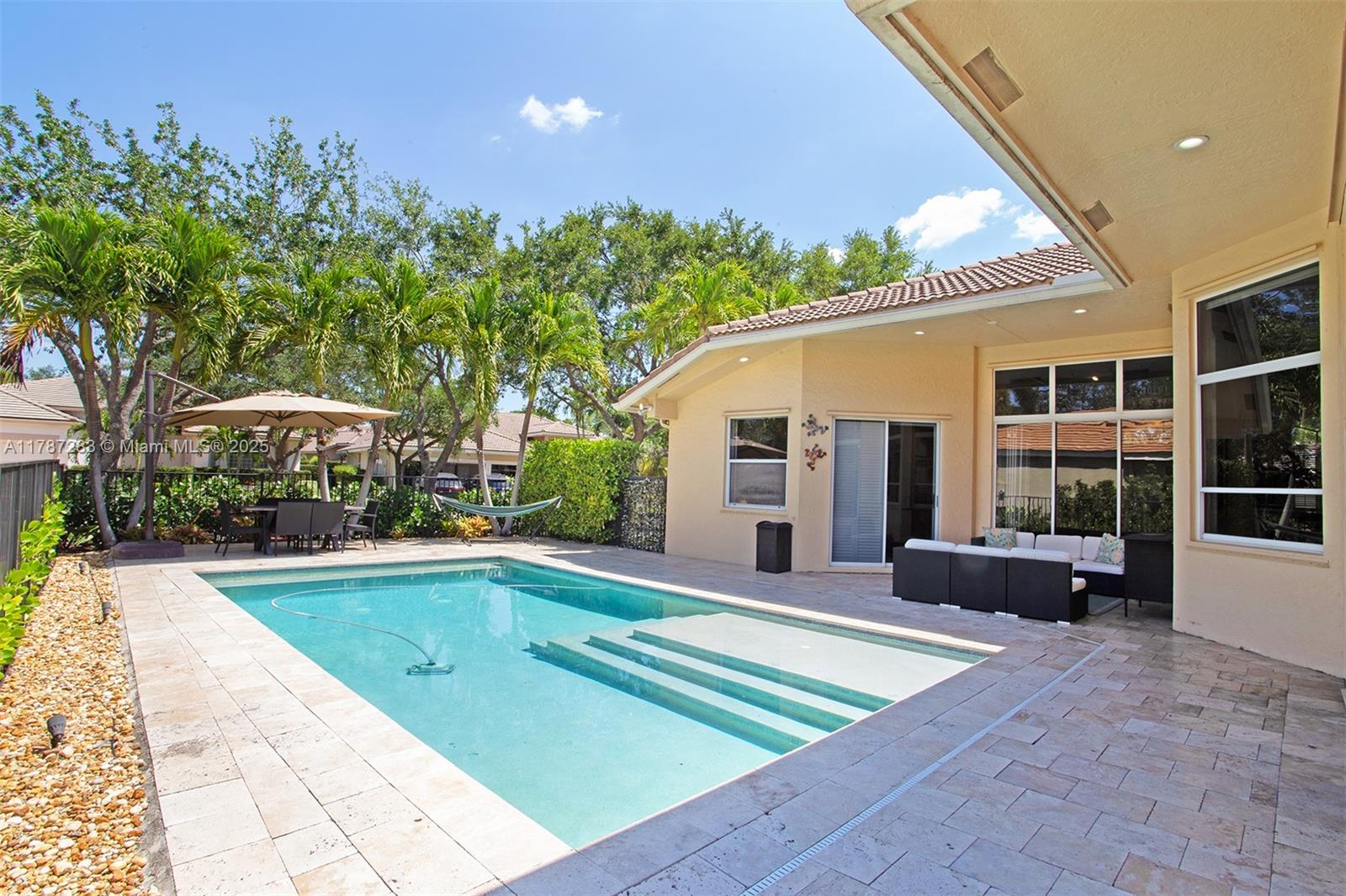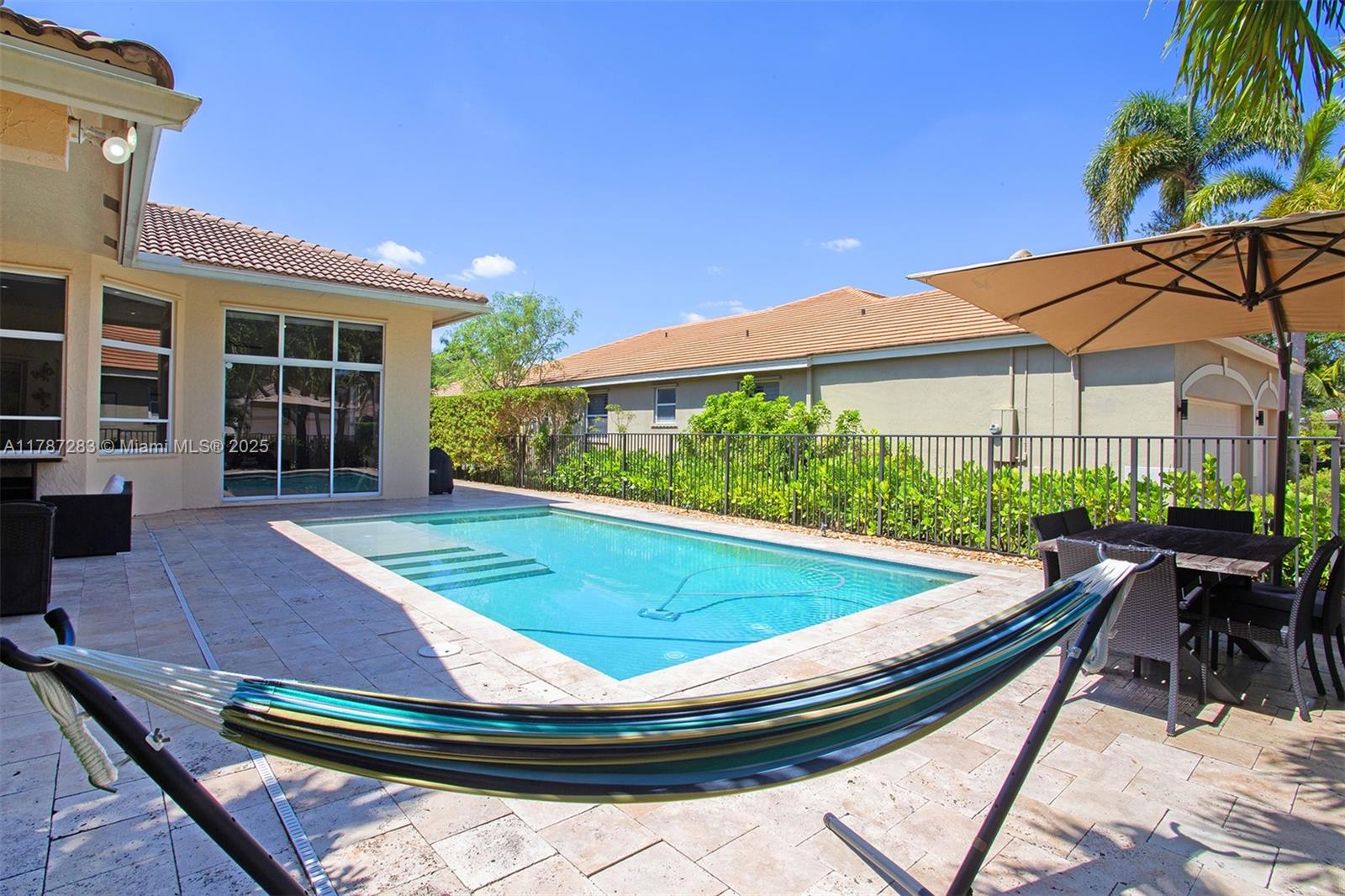 Discover this immaculate 4-bedroom, 3-bathroom corner-lot pool home in The Ridges, one of Weston's premier gated communities. This single-story residence features a thoughtful 3-way split floor plan, high ceilings, and abundant natural light. Recent upgrades include a new heated pool (2014), a newer roof (2018), and remodeled kitchen and bathrooms (2022). Additional highlights: two AC units, a new clusia privacy fence, and an electric vehicle charge among others. Resort-style amenities and top-rated schools in this tranquil neighborhood with easy access to major roads.