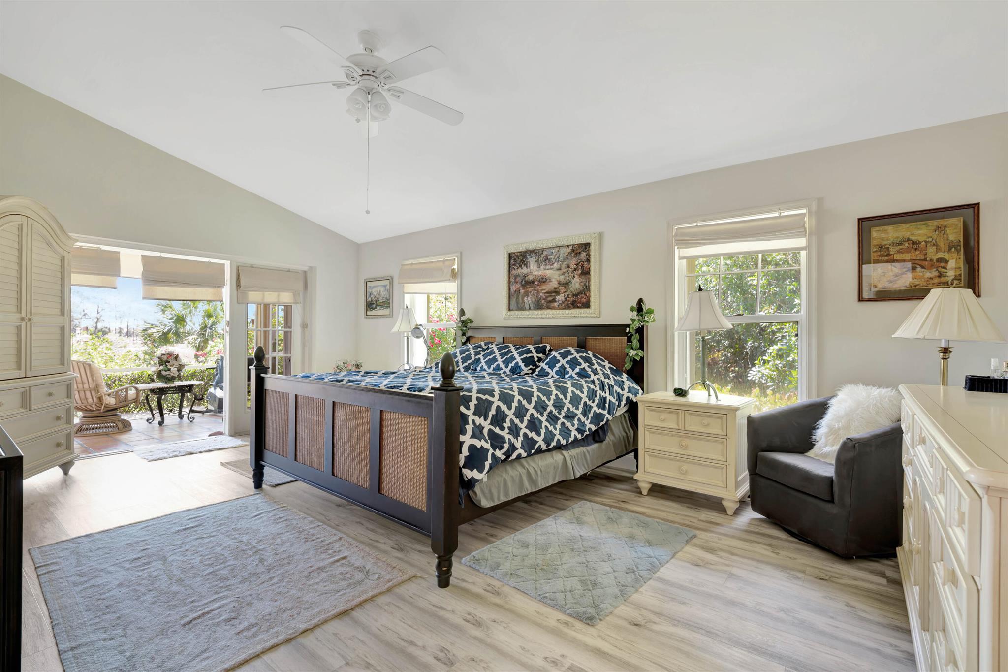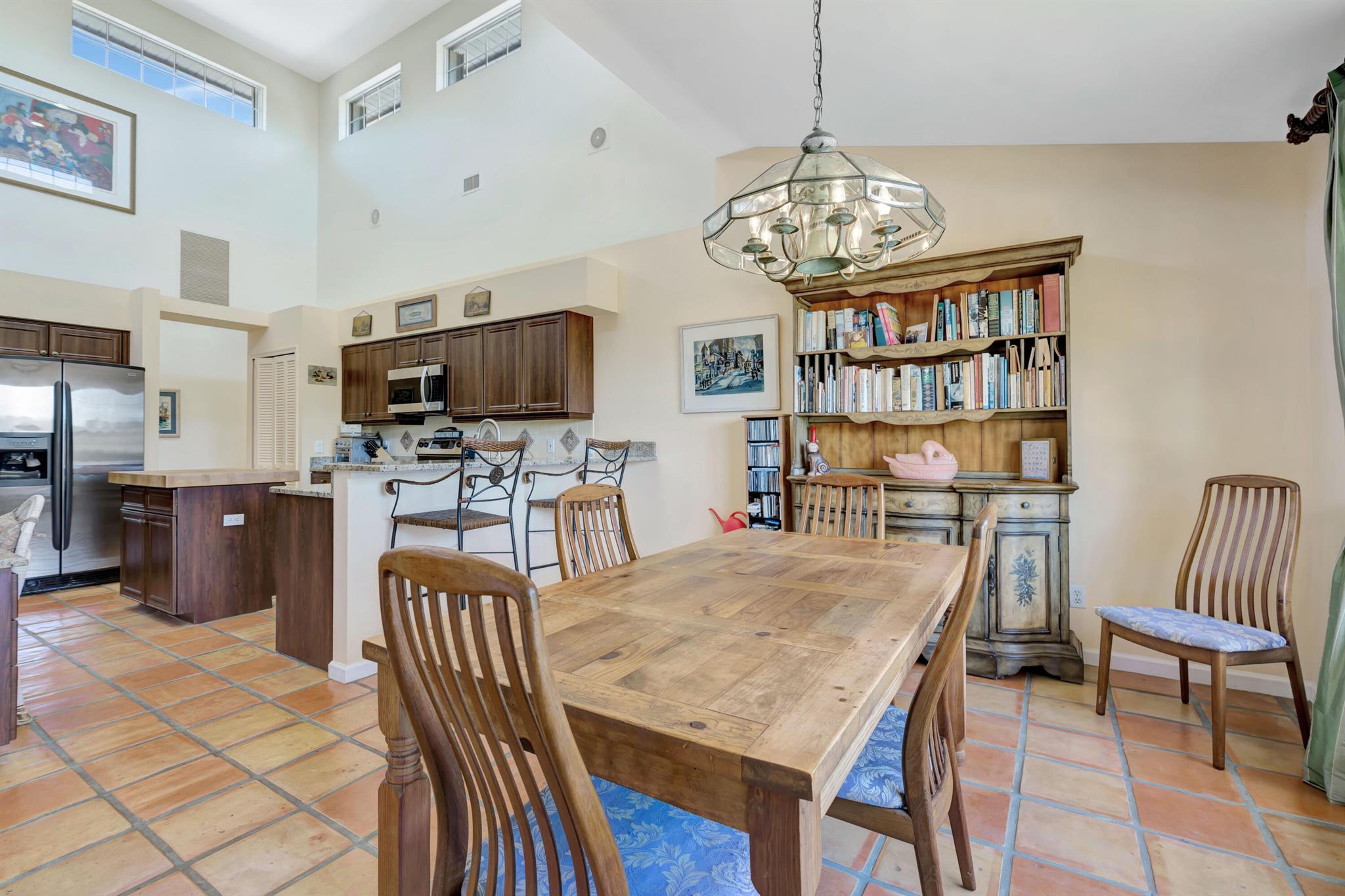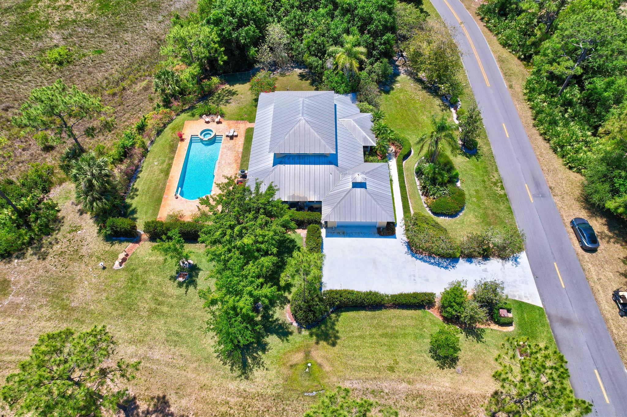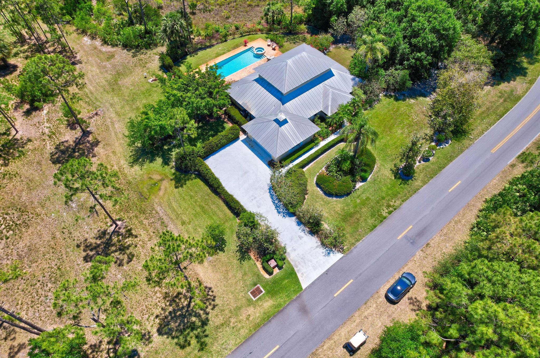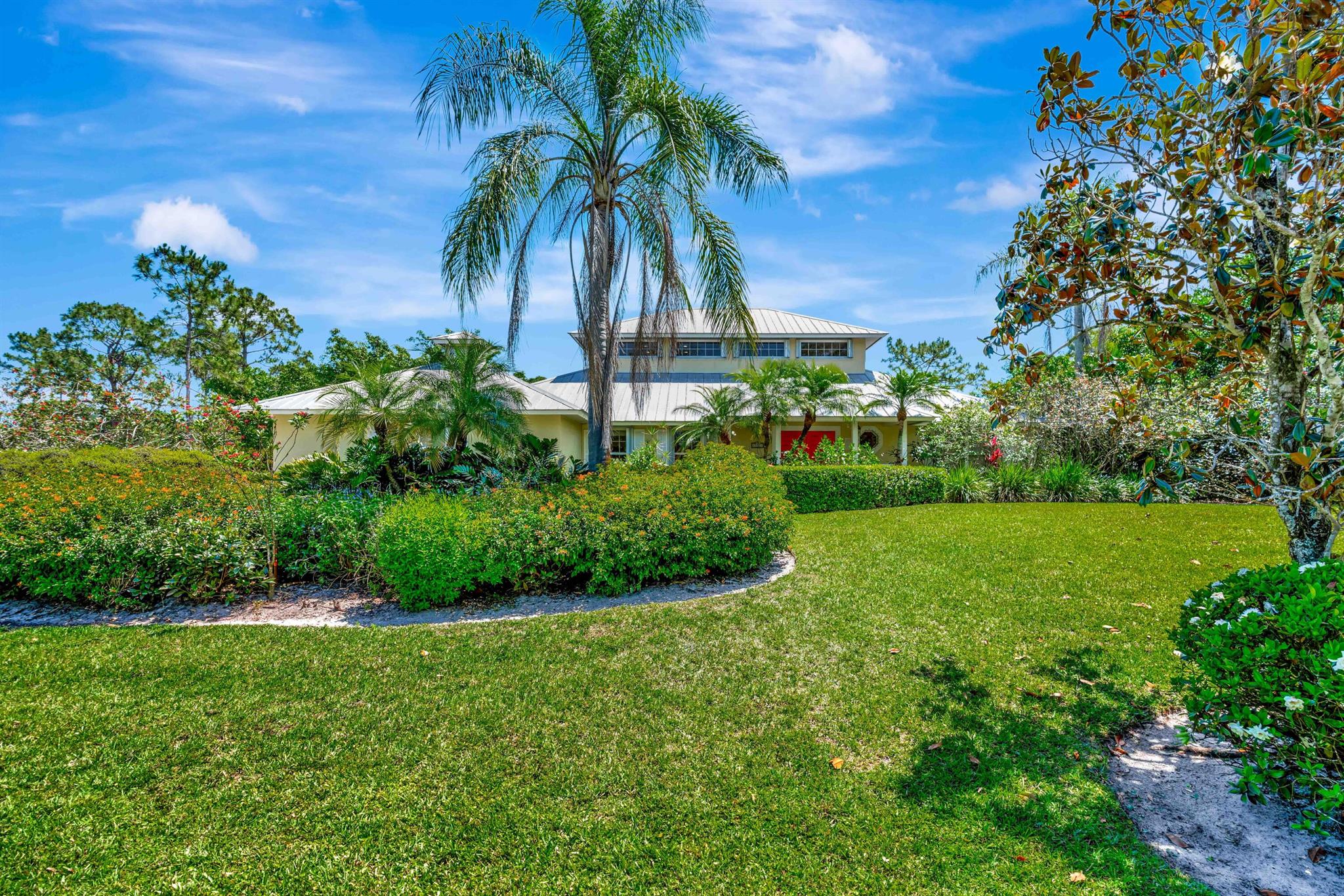 Old Trail at Ranch Colony is the ideal golf home -.9 acre set in a conservation area - commanding views of the fifth hole of the brand-new Gil Hanse designed course on the Jonathan's Landing Old Trail Golf Course. Stunning home with 18-foot ceiling has four bedrooms, two and one-half baths, office, large laundry room, and updated kitchen. Dining Room and large Florida Room overlook a landscaped, fenced yard with 40' pool set in brick paver pool deck. Hibiscus, and bougainvillea provide a colorful backdrop.House measures 2,288 SF under air and 3,308 SF total. Home updated in 2019 with new lighting system, new Trane HVAC, and new microwave. Master is large, with access to Florida room, and features a new bath in 2015 with walk-in shower and over-sized closet. 24/7 Manned Gate Community