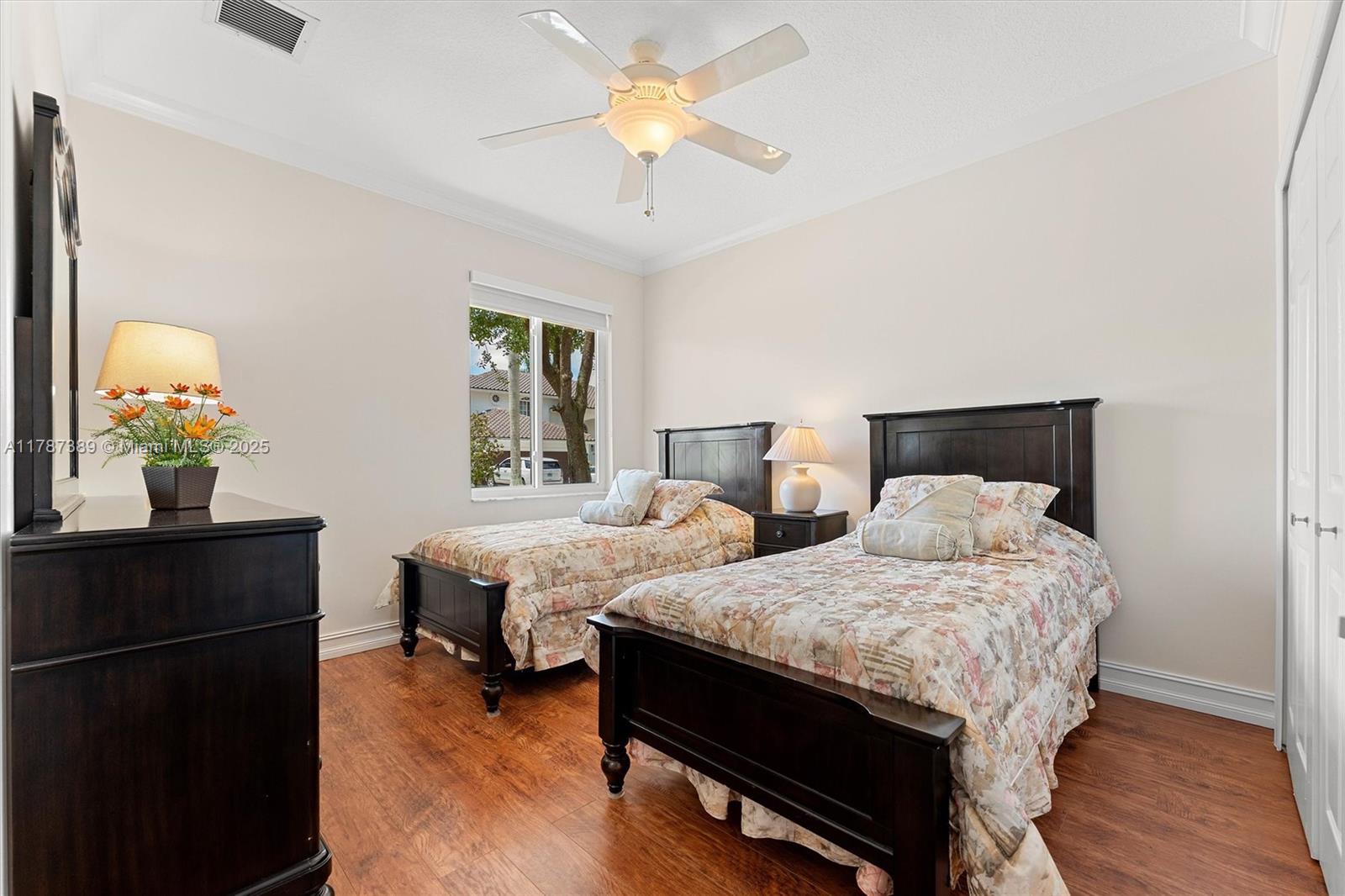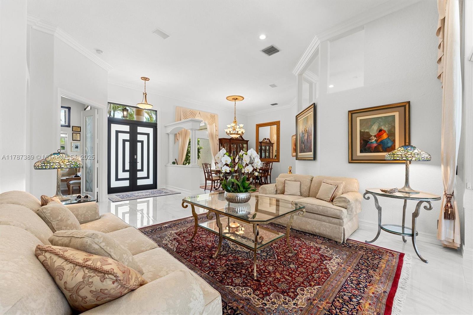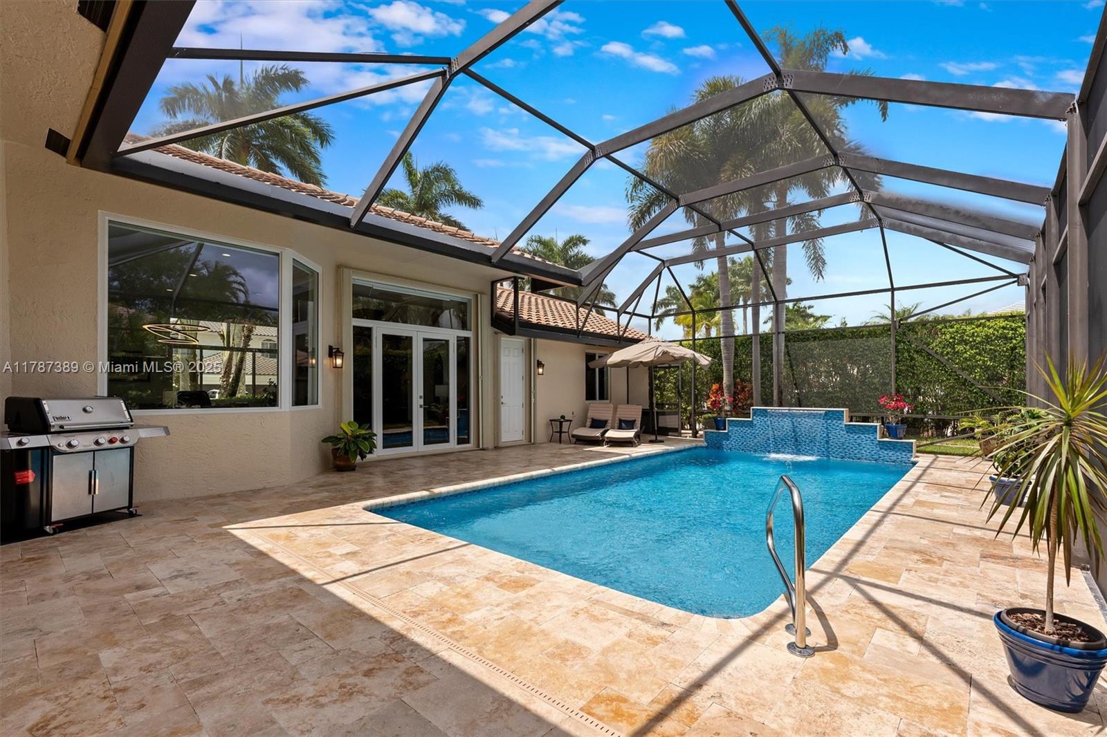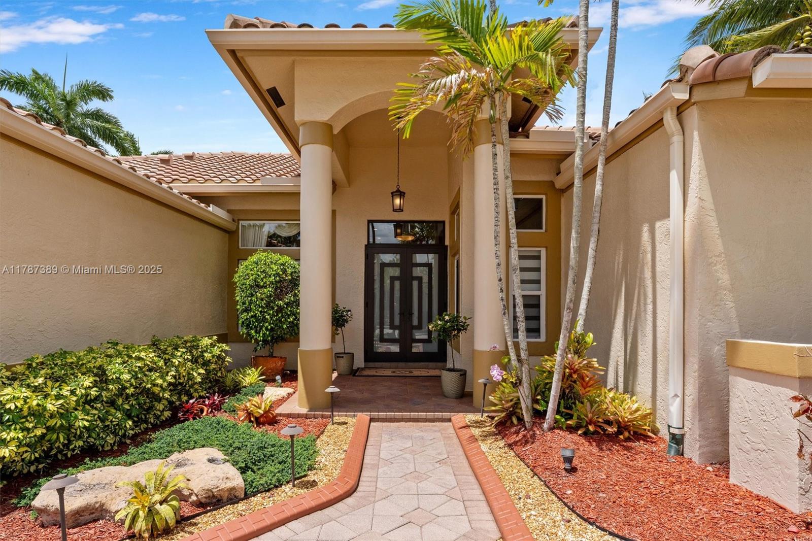A rare offering in Weston Hills, where timeless architecture & exceptional craftsmanship meet on an expansive corner lot. This elegant home features 5BD plus a dedicated office and an entertainment room, with luminous porcelain flooring & rich laminated wood accents throughout. The oversized gourmet kitchen is equipped with Sub-Zero & Thermador appliances, quartz countertops, & a Zephyr wine cooler. Full impact windows fill the home w/ natural light, complemented by a 2017 roof for peace of mind. Enjoy a saline elongated pool within a screened patio, a whole-home water filtration system, & a three-car garage with insulated doors, transformed by Premier Garage. Located within Weston's premier A-rated school zone, this home offers the perfect blend of luxury, functionality, & prime location
