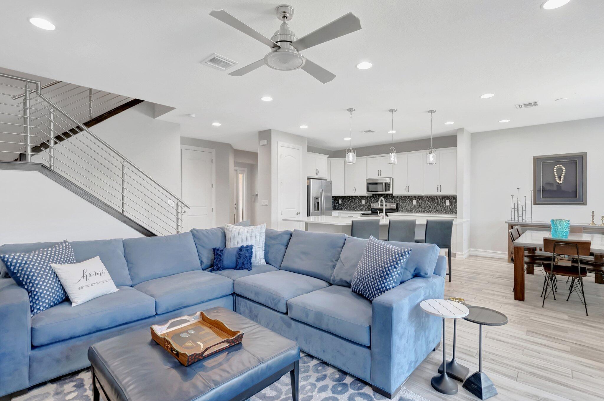 HUGE PRICE REDUCTION..MOTIVATED SELLER! Beautifully appointed 3 bedroom, 2.5 bath townhouse overlooking expansive lake and golf course is a must see! This newer built home features an open concept floorplan, a gourmet kitchen with quartz countertops, great island and stainless steel appliances opening to a large family room and dining area. Beautiful upgraded staircase, large primary bedroom with a custom spa-like bathroom and large closets. The secondary rooms are also very spacious. Laundry room is conveniently located on the second floor. This townhouse also has a two car garage. Private upscale community clubhouse with pool, gym and party room.
