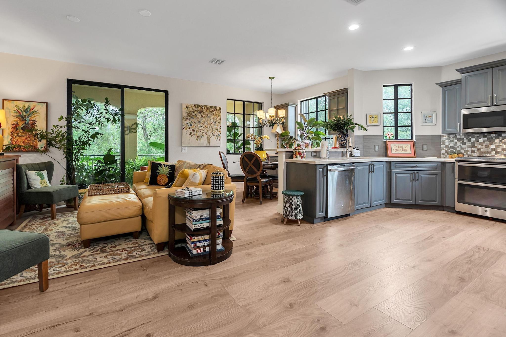 Mariposa Pointe, located in the heart of Weston, offers a tranquil living experience. This home features 4 bedrooms, 3 full bathrooms, plenty of storage and a 2-car garage within a secure walled enclave. Enjoy the added privacy of a personal courtyard and a beautiful outdoor living room off the family room. The residence boasts LVP floors and stairs, newly renovated kitchen with wine cooler, personal lift on staircase and a convenient laundry area. Brand new roof April 2025. Situated in a meticulously maintained community, Mariposa Pointe is just minutes away from Weston Hills Country Club and within walking distance to Town Center.