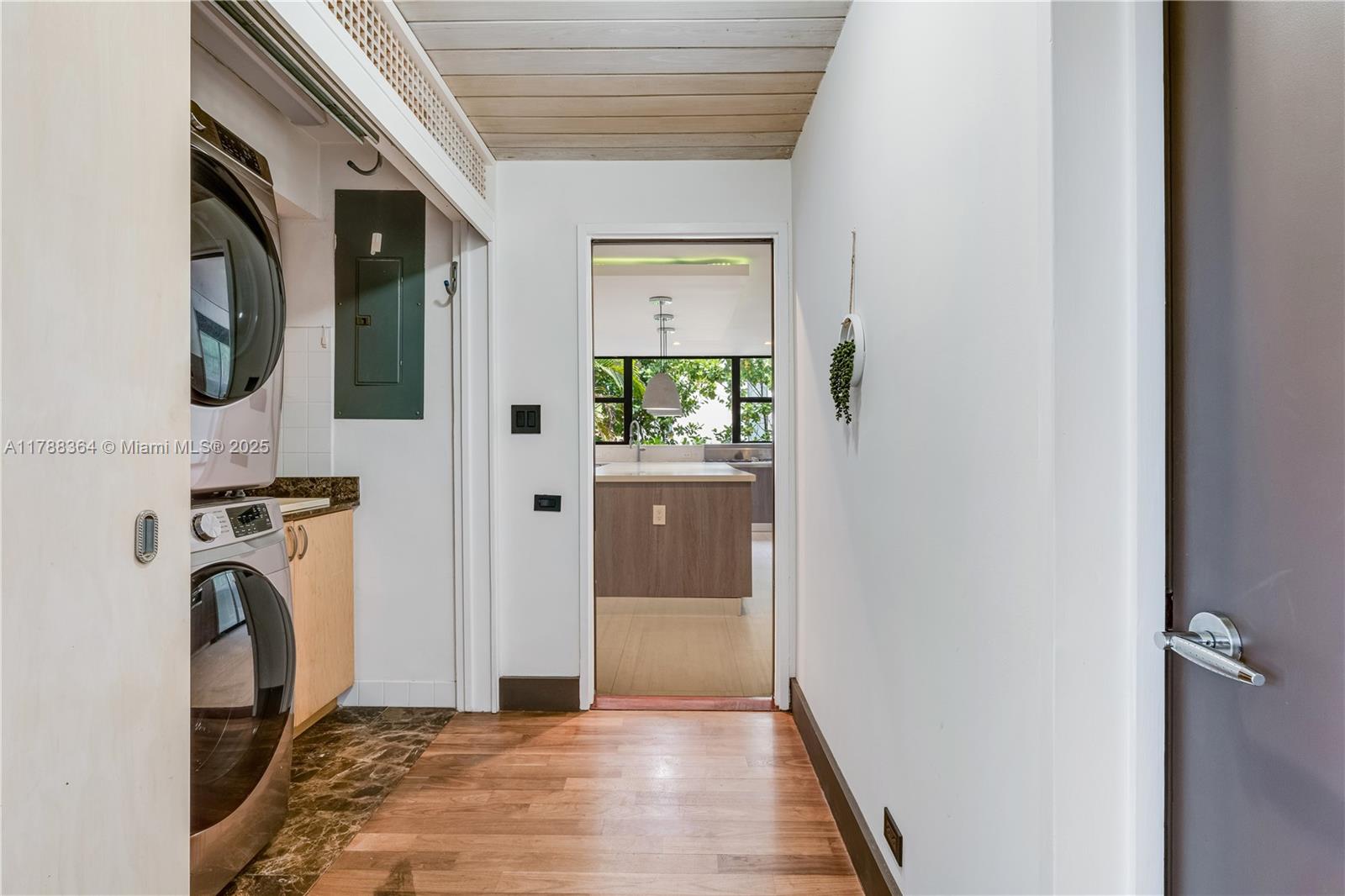 Designed by renowned architect Barry Sugarman, discover your coastal sanctuary where panoramic windows frame breathtaking views of the shimmering pool and the tranquil canal of the sea—perfect for yacht lovers. Natural light floods the space, creating a serene ambiance of peace and tranquility. This elegant home features 4 spacious bedrooms, 3.5 baths, and an elevator connecting the levels. The stunning walnut floors complement the Italian kitchen with a ceiling of warm wood. A Gumbo Limbo tree in the lush garden adds warmth and freshness, while solar panels on the roof ensure energy efficiency. Experience a harmonious blend of luxury, nature, and sophisticated design.