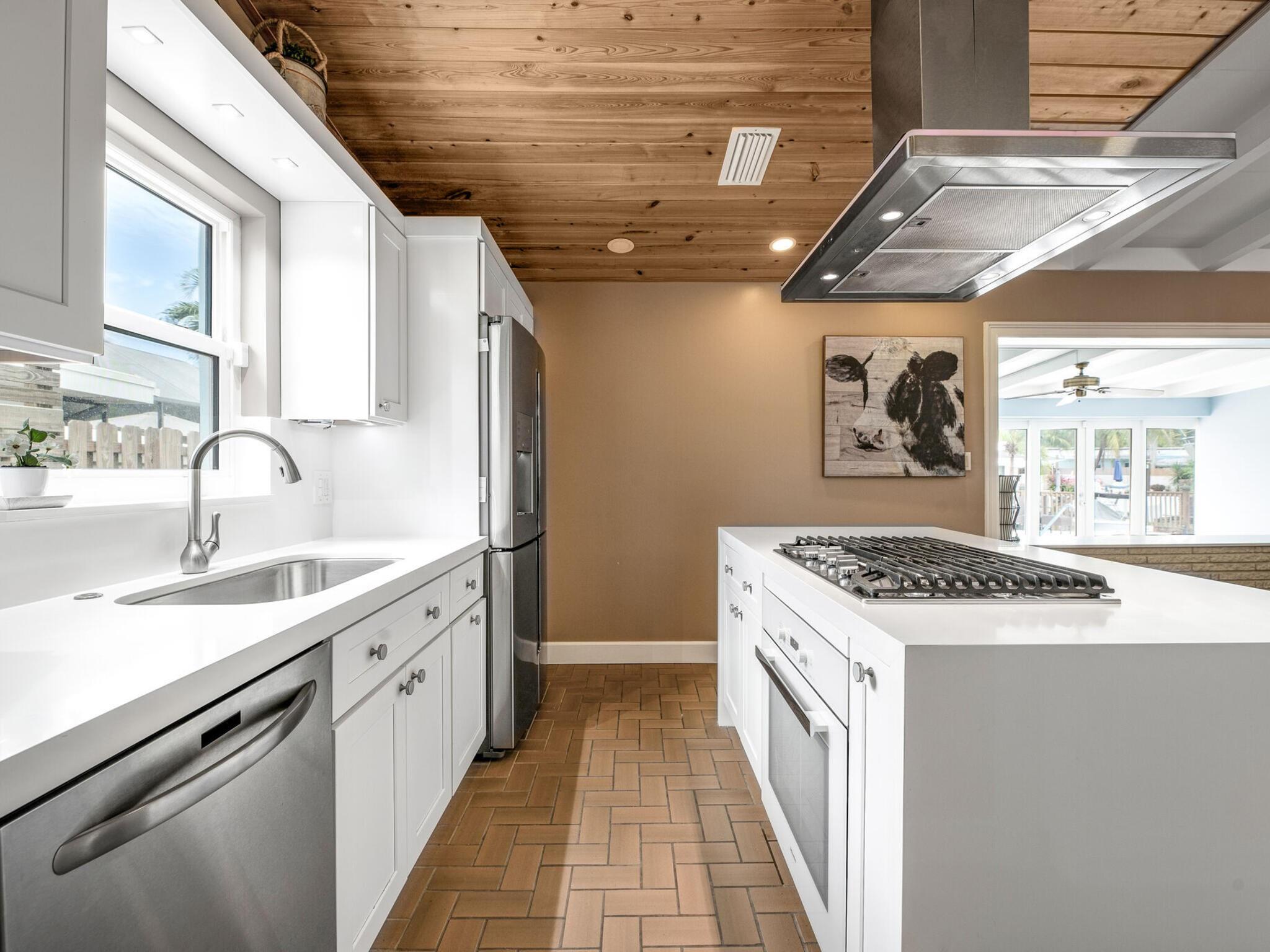 Seller offering substantial roof replacement credit to buyer at closing! Beautifully updated home offers 65' of ocean-access waterfront with no fixed bridges, perfect for water lovers. Inside you'll find a sleek kitchen with high-end appliances—including a built-in Miele island oven—open to dining & living areas. With 3 bedrooms plus a den/office with water views, 2 bathrooms, a Florida room, dedicated laundry room, & garage, the layout is both functional & flexible. Enjoy peace of mind with impact windows & doors throughout. Outdoors, relax on the expansive patio & take a dip in the refreshing pool. Dock at your private dock & embrace the Lauderdale Isles boating lifestyle—a welcoming neighborhood with a community boat ramp.