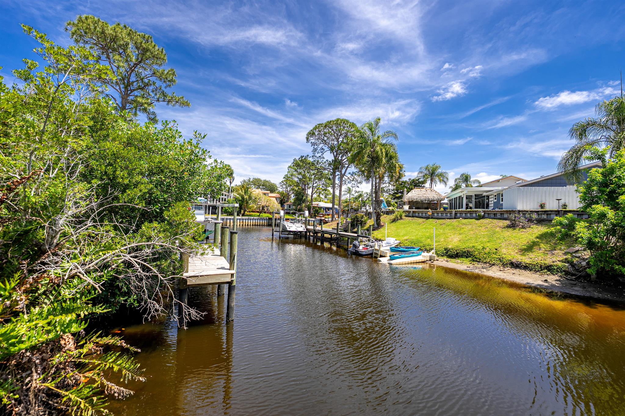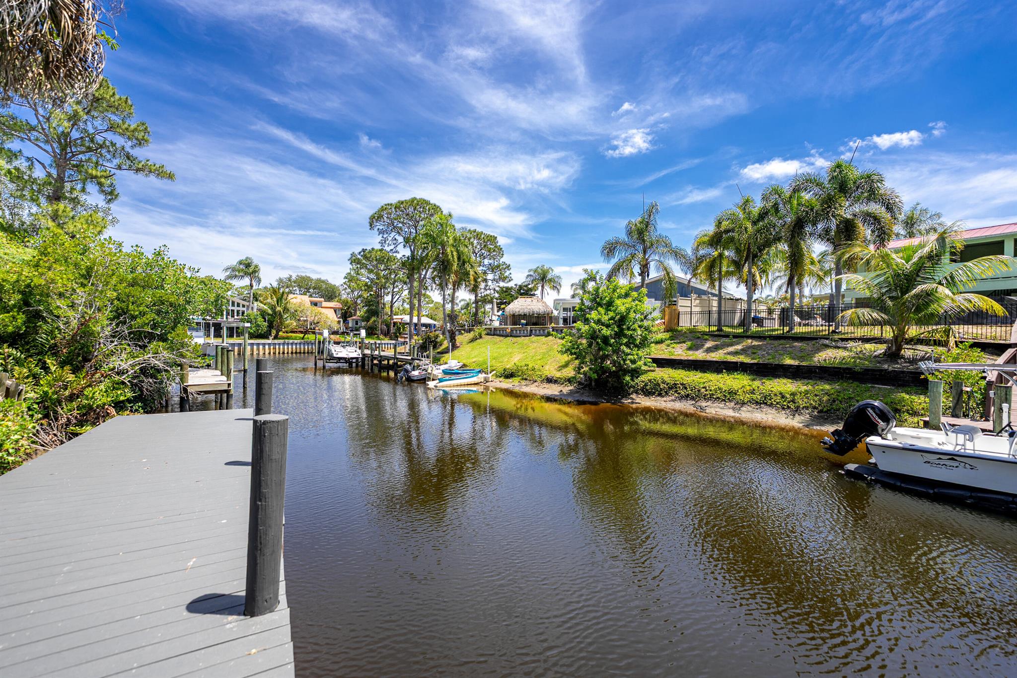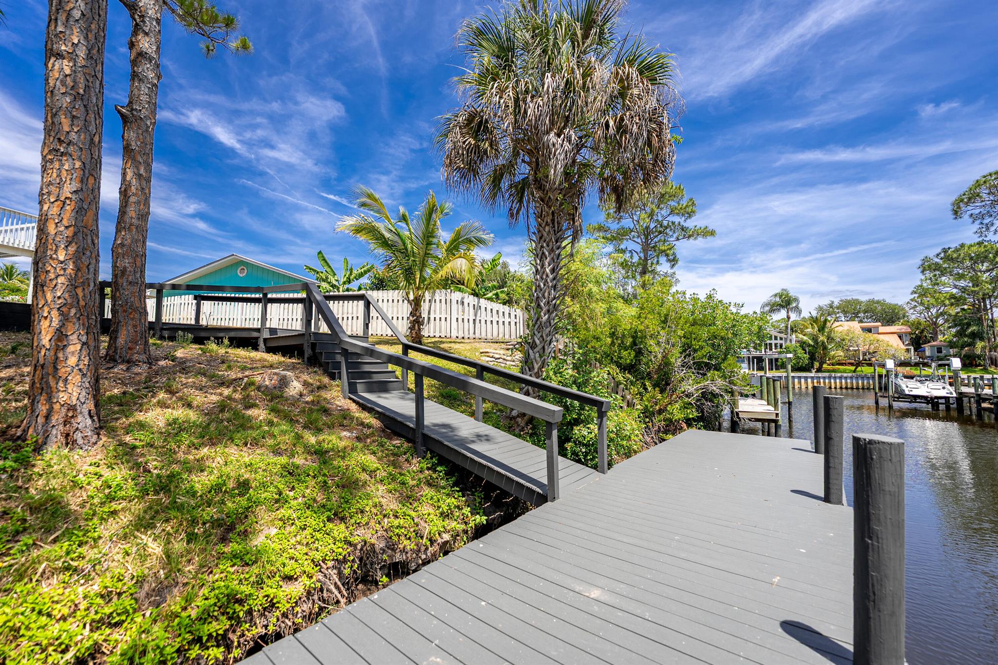 WATERFRONT, OCEAN ACCESS! Discover this gorgeous four-bedroom, three-bath Key West style home in Rustic Hills! Wide open floor plan w/over 2,600 SF of living area! Beautiful waterfront property with 74 feet of frontage on Bessey Creek, and updated 34' private dock with ocean access! Entertainer's dream home! Completely remodeled and updated with new quartz kitchen, custom cabinets, backsplash, stainless hood & wall oven, 6 burner gas stove, sub-zero fridge and more! Wide open upstairs living area with beautiful canal, dock view and French doors to deck! Master bedroom with ensuite bath, guest bed & bath upstairs with two additional bedrooms, bath and huge living area with wet bar downstairs! Great for in-laws/teens! NEWER METAL ROOF and AC SYSTEM!