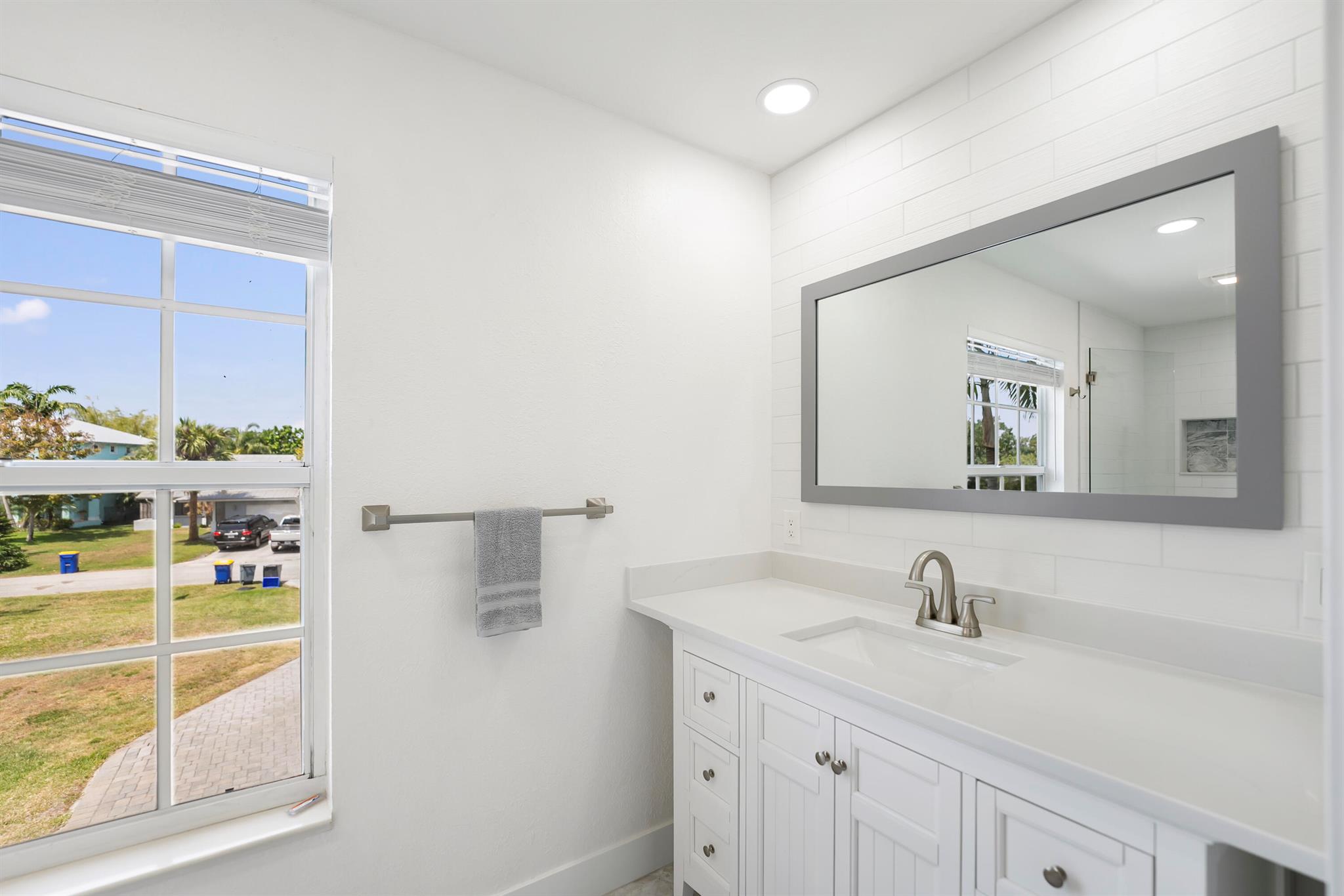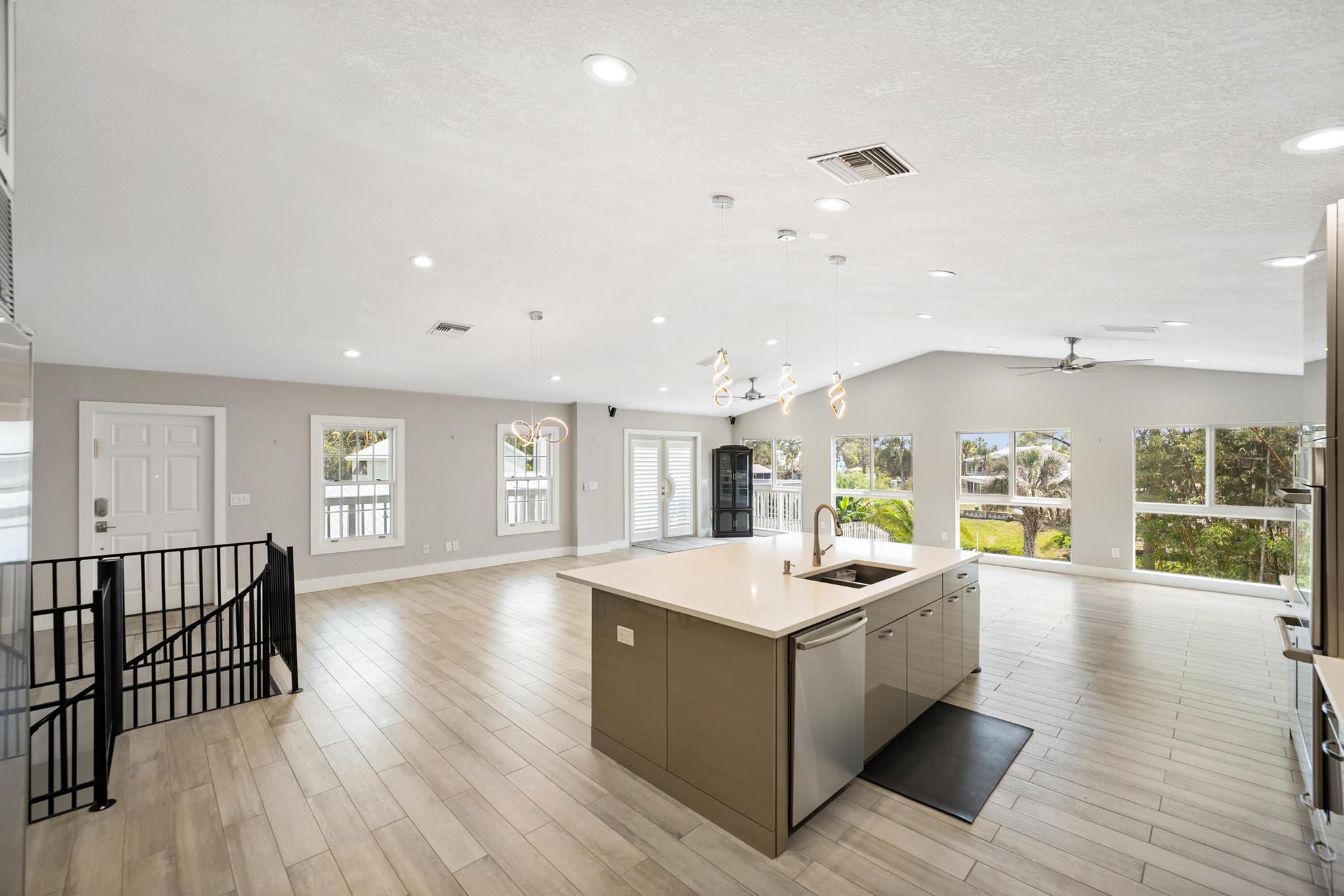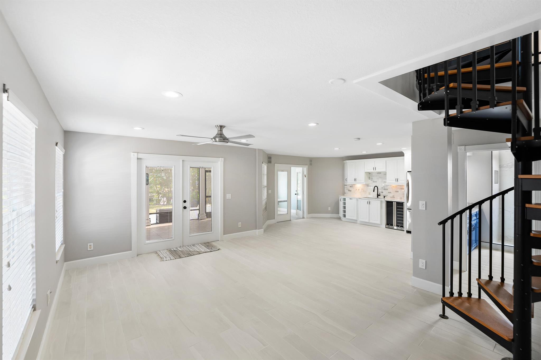 WATERFRONT, OCEAN ACCESS! Discover this gorgeous four-bedroom, three-bath Key West style home in Rustic Hills! Wide open floor plan w/over 2,600 SF of living area! Beautiful waterfront property with 74 feet of frontage on Bessey Creek, and updated 34' private dock with ocean access! Entertainer's dream home! Completely remodeled and updated with new quartz kitchen, custom cabinets, backsplash, stainless hood & wall oven, 6 burner gas stove, sub-zero fridge and more! Wide open upstairs living area with beautiful canal, dock view and French doors to deck! Master bedroom with ensuite bath, guest bed & bath upstairs with two additional bedrooms, bath and huge living area with wet bar downstairs! Great for in-laws/teens! NEWER METAL ROOF and AC SYSTEM!