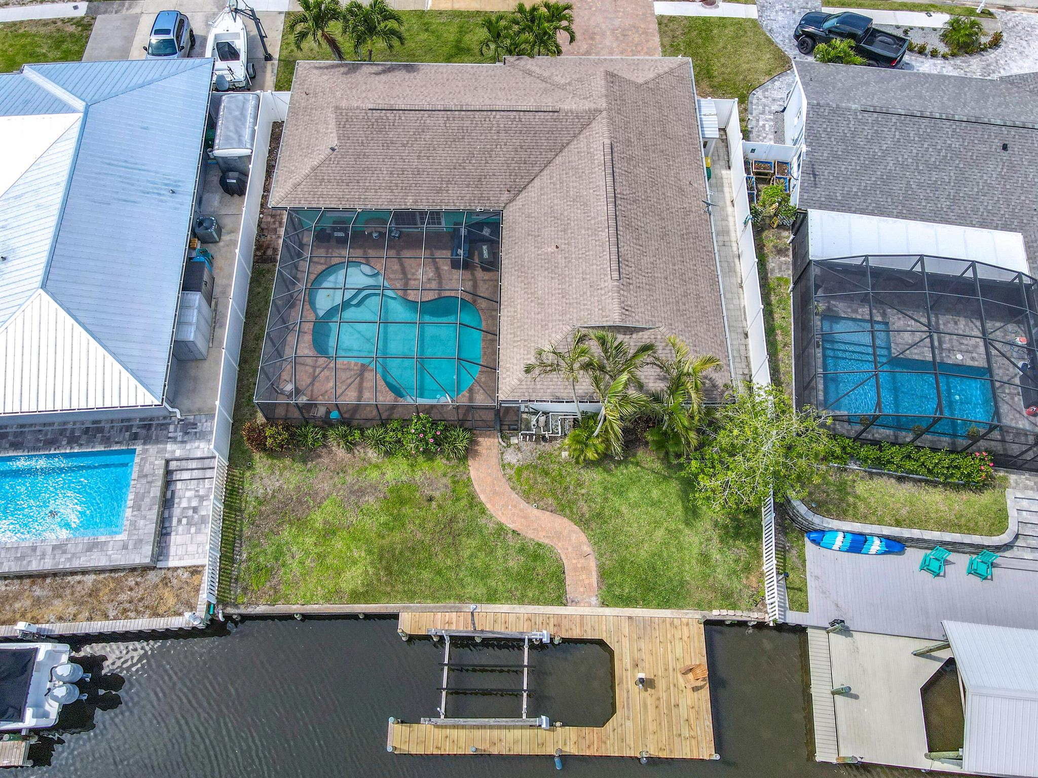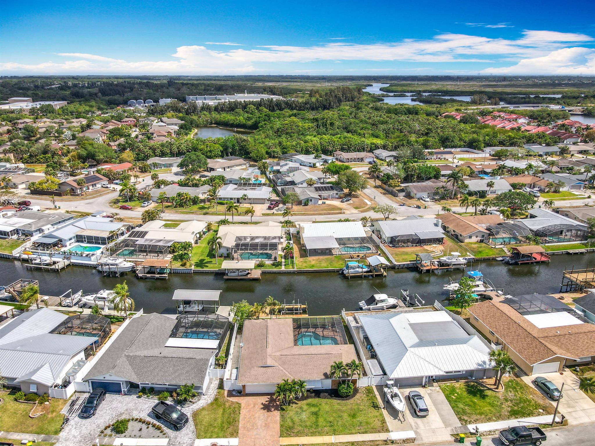 Welcome to Villa De Palmas in Merritt Island! This beautiful 4-bedroom, 2-bathroom waterfront home is located on a wide canal off Sykes Creek, complete with a boat lift for easy offshore fishing access. Enjoy breathtaking sunsets including space launches from your private backyard oasis featuring a sparkling pool. Conveniently located just a short drive from the Kennedy Space Center and so much more. This home offers the perfect blend of relaxation and adventure. Roof 2017 and recently updated dock! Va Welcome! All sizes and measurements are approximate and to be verified by buyer.