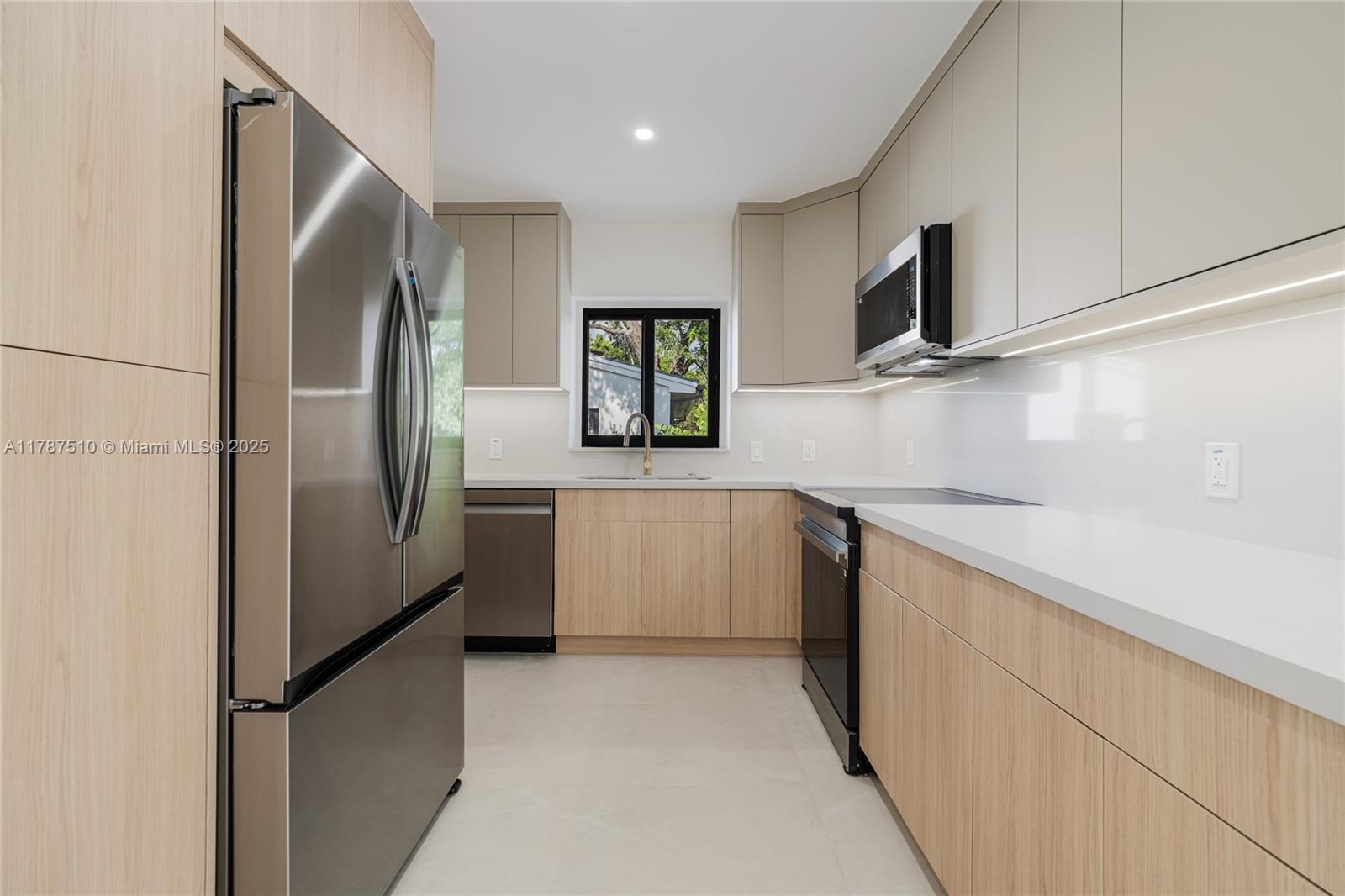 Discover comfort & modern style in this fully renovated 3-bed, 3-bath home in sought-after Miami Shores. Set on an 8,100 sqft lot, it offers a private backyard retreat with lush landscaping & a brand-new resort-style pool. Inside, enjoy a bright open-concept layout with sleek tile flooring, impact windows & doors, and a new tile roof. The chef’s kitchen features quartz countertops, custom wood cabinetry, & stainless steel appliances. The spacious primary suite includes a walk-in closet & spa-like bath. Additional highlights include a newly paved driveway and a full 2025 renovation: new electrical, plumbing, AC, bathrooms, septic system, and pool. This move-in ready gem blends luxury, style, and peace of mind in one of Miami’s most desirable neighborhoods. PRICE REDUCED TO APPRAISED VALUE