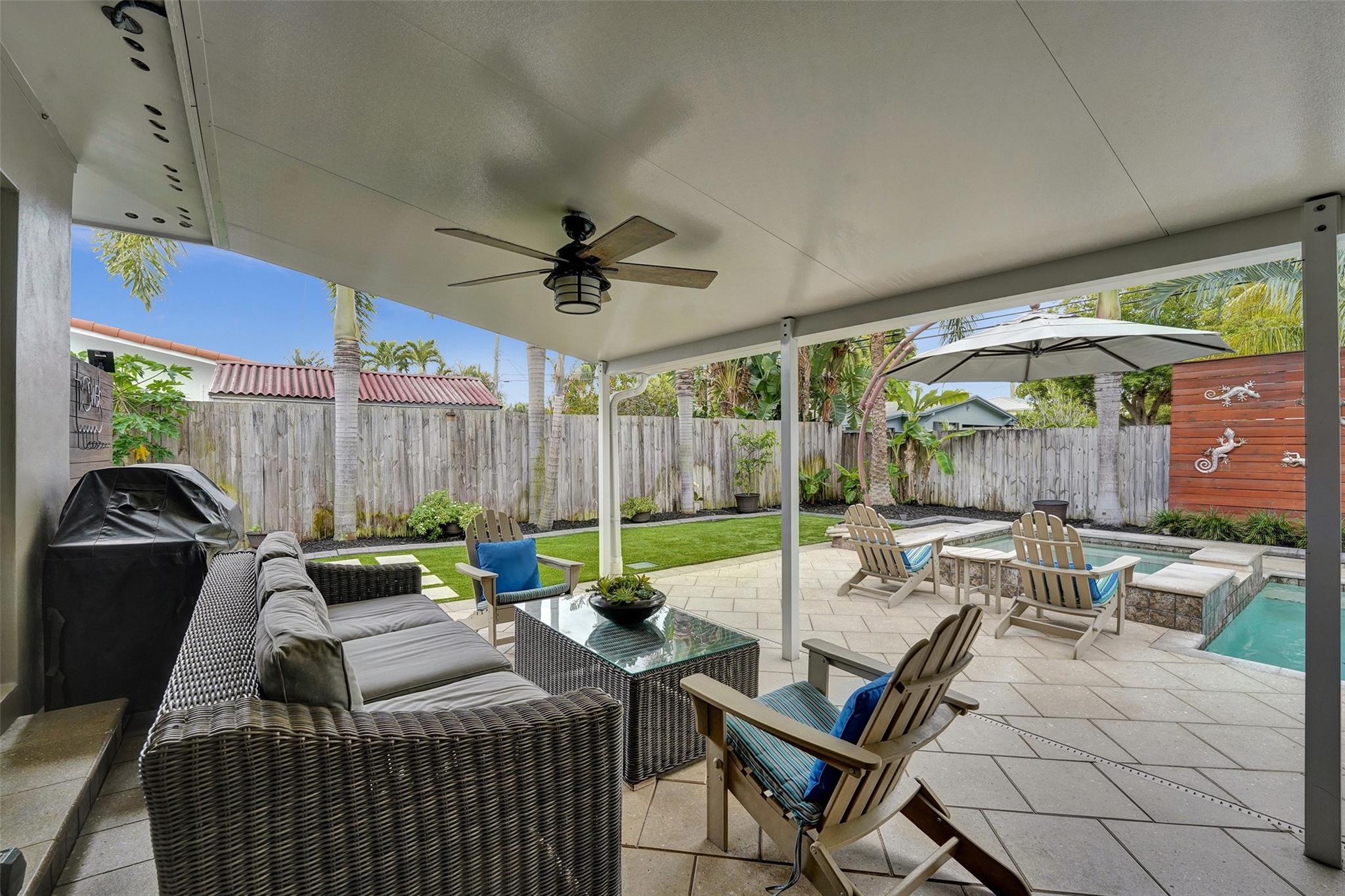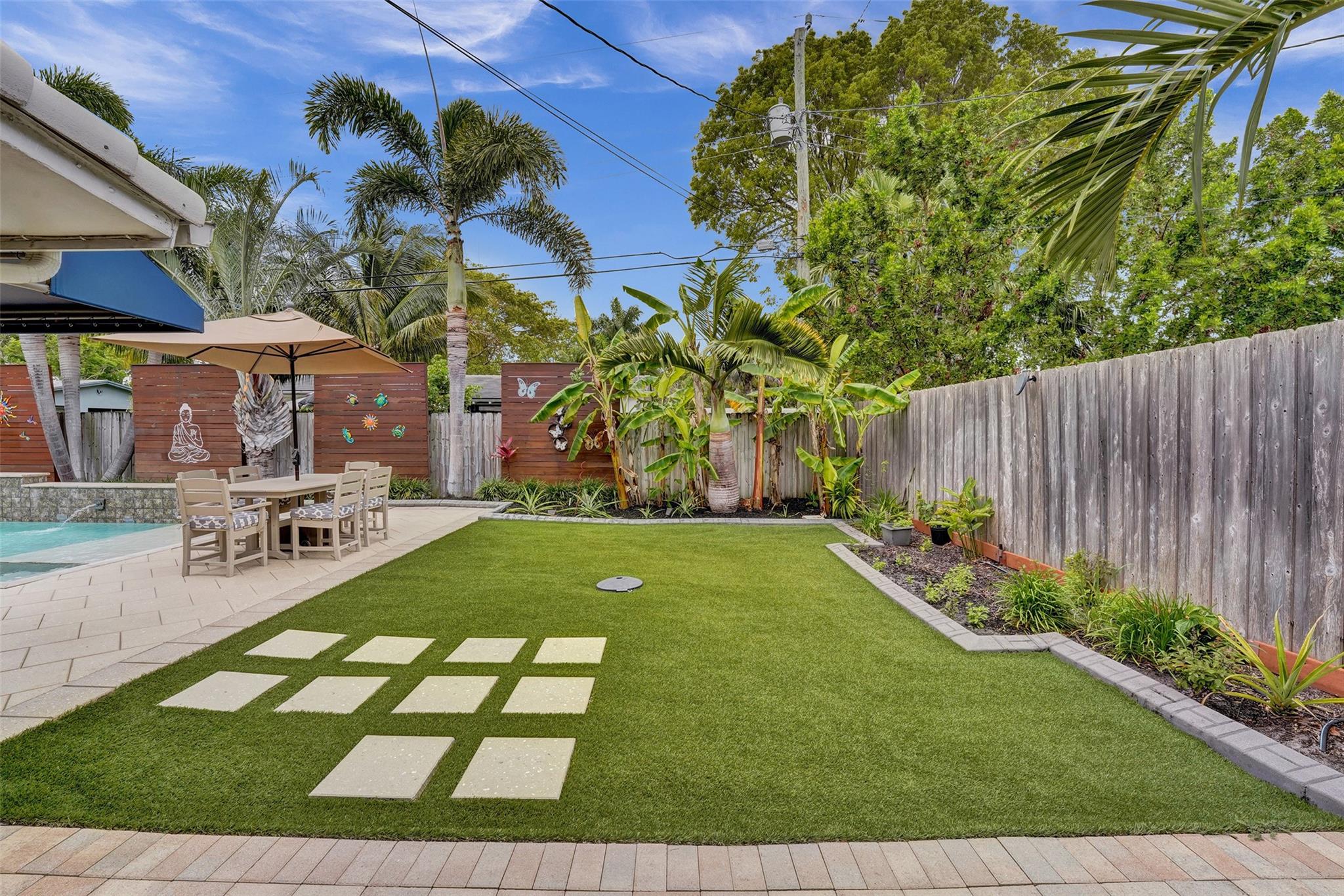 STUNNING TROPICAL LANDSCAPED WILTON MANORS ENTERTAINING BEAUTY AROUND THE CORNER FROM "THE DRIVE". TAKE A DIP IN OVERSIZED 36X12 SALTWATER HEATED POOL W/SPA, SUN SHELF ,WATERFALL FOUNTAINS & UNIQUE ART WOOD PRIVACY WALL. 14X12 COVERED PATIO W/ CANVAS AWNINGS & ASTRO TURF REAR YARD. 22K WHOLE HOUSE STAND BY GENERATOR W/ 500 GALLON UNDER GROUND PROPANE TANK. NEW KITCHEN W/ ITALIAN CABINETRY, 48" DOUBLE PANTRY W/ PULL OUTS & QUARTZ WATERFALL COUNTERTOP. 2 BEAUTIFUL NEW BATHROOMS. CUSTOM ORGANIZED WALK IN CLOSETS IN PRIMARY BEDROOM. 26X9 FLORIDA ROOM W/ BEAMED VAULTED CEILING. IMPACT WINDOWS & DOORS. 1 CAR GARAGE W/ 220 VT EV CHARGER & NEW PAVER PARKING FOR 9 CARS. CAST IRON PLUMBING REPLACED W/ PVC. AC 06-2025 NEW ELECTRICAL & PANEL. PER SELLER: TAX ROLLS NOT CORRECT ON SQ FT