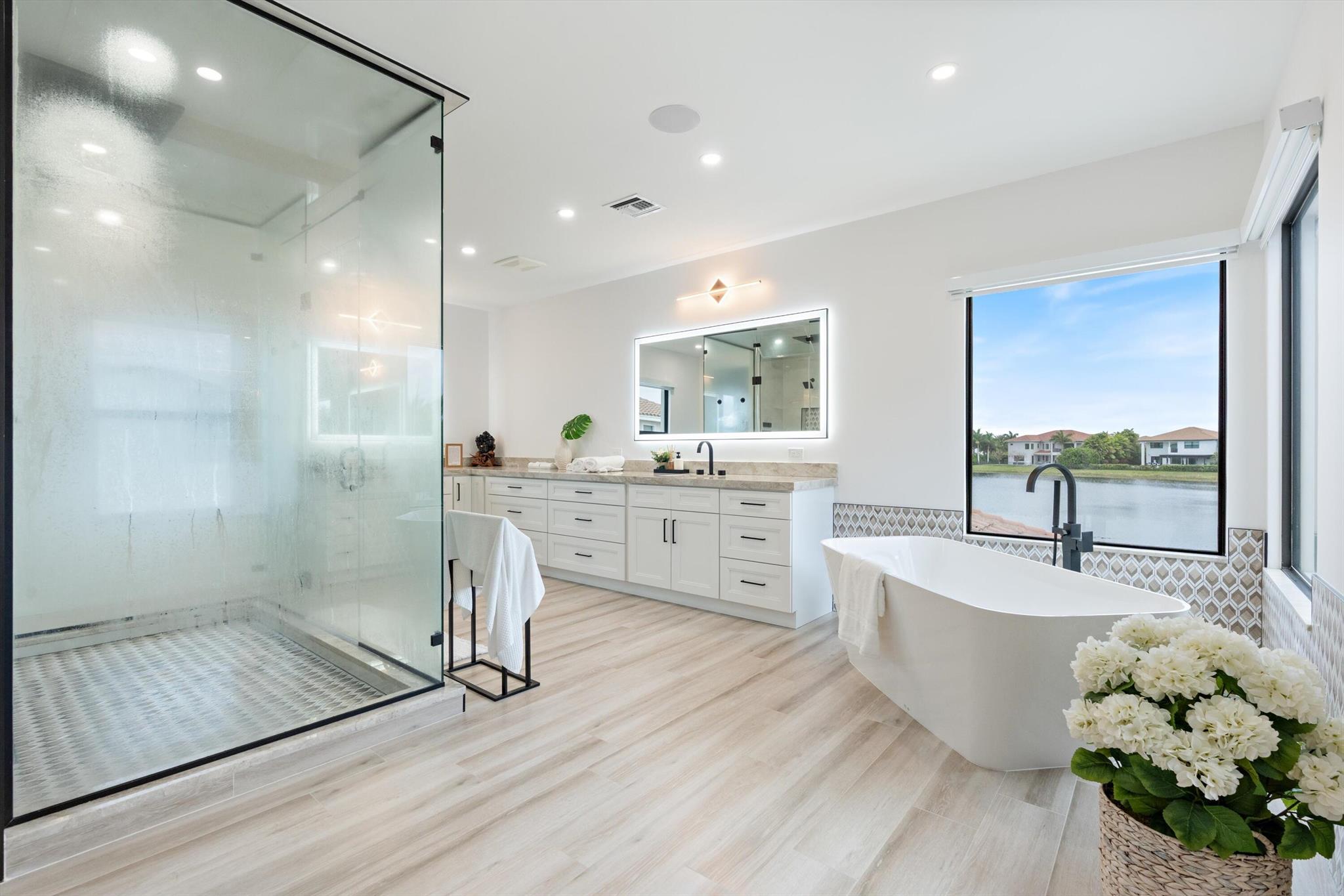 This stunning 5-bed, 6-bath lakefront estate blends modern elegance with resort-style living. Featuring over $875,000 in designer upgrades, including a grand custom dual staircase, fully redone pool with lakeside fireplace, outdoor chef's kitchen, and a private home theater. Floor-to-ceiling windows frame spectacular lake views, while every space is thoughtfully designed with high-end finishes. A rare turnkey masterpiece on the water.