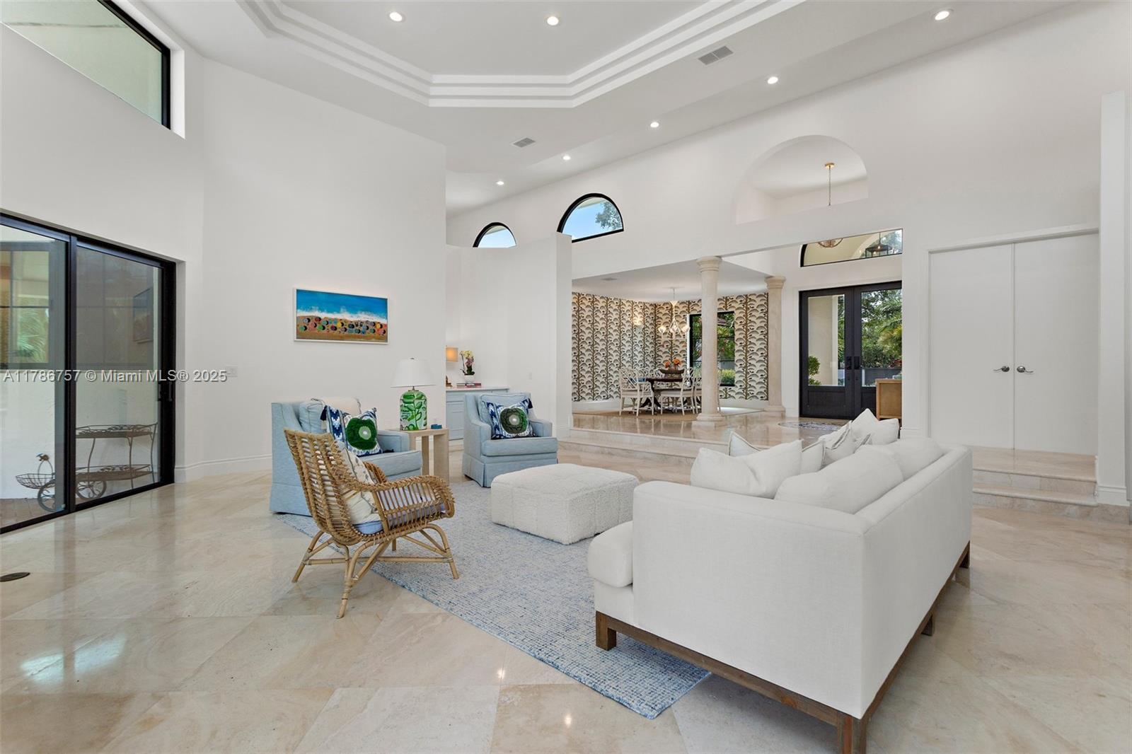 Palm Beach meets Miami in this remodeled one-story N. Pinecrest Gated Estate on a 36,851 SF Lot with high ceilings & custom finishes! This 5BD / 4.5BA home ftrs voluminous entertaining spaces w/ grand living room, formal dining & large family room adjacent to the chef's kitchen w/ diner-like breakfast nook, custom cabinetry, SubZero fridge, coffee station, & ILVE Gas Range w/ pot filler. Expansive primary suite ftrs a seating area, 2 walk-in closets & zen bathroom. Backyard ftrs covered terrace by the pool with plenty of yard space for a playground, in-ground trampoline, & more. XL laundry room w/ 2 washers, 2 dryers, & built-in drying racks. Privacy wall w/ 2 gated driveways, 3 car gar. w/ AC, impact windows/doors, 2021 Roof. Close to top schools & parks! It's not Miami, it's Pinecrest!
