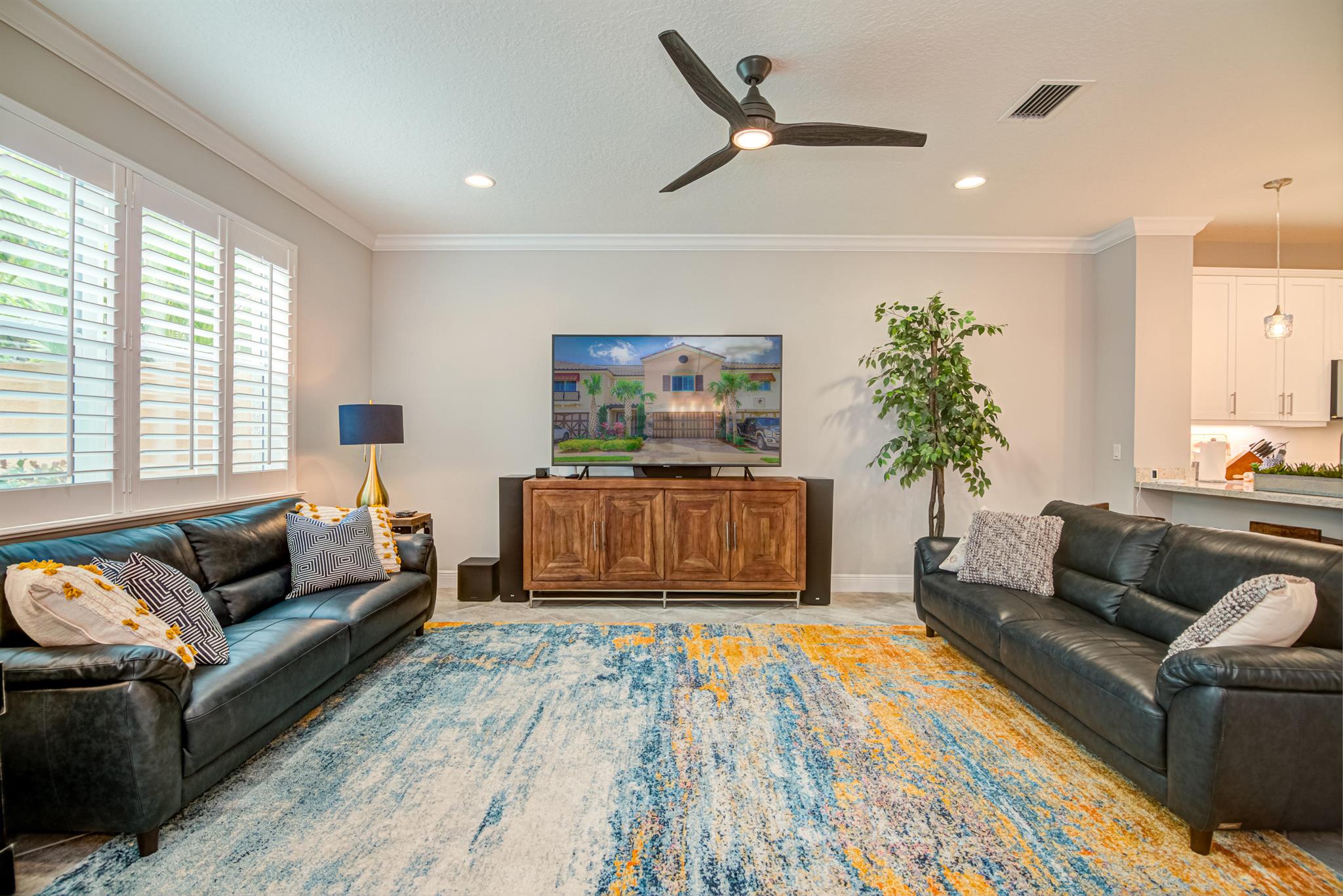Welcome to this beautifully appointed 3-bedroom, 2.5-bathroom townhome offering nearly 3,000 square feet of sophisticated living space, nestled within one of Wellington's premier gated communities. Whether you're seeking a full-time residence or a seasonal retreat, this home delivers the perfect blend of elegance, comfort, and convenience.Step inside to an open-concept layout thoughtfully designed for modern living, featuring high-end finishes and custom decor throughout. Enjoy plantation shutters, a double oven, high-efficiency front-loading washer and dryer, and a spacious 2-car garage with epoxy flooring.