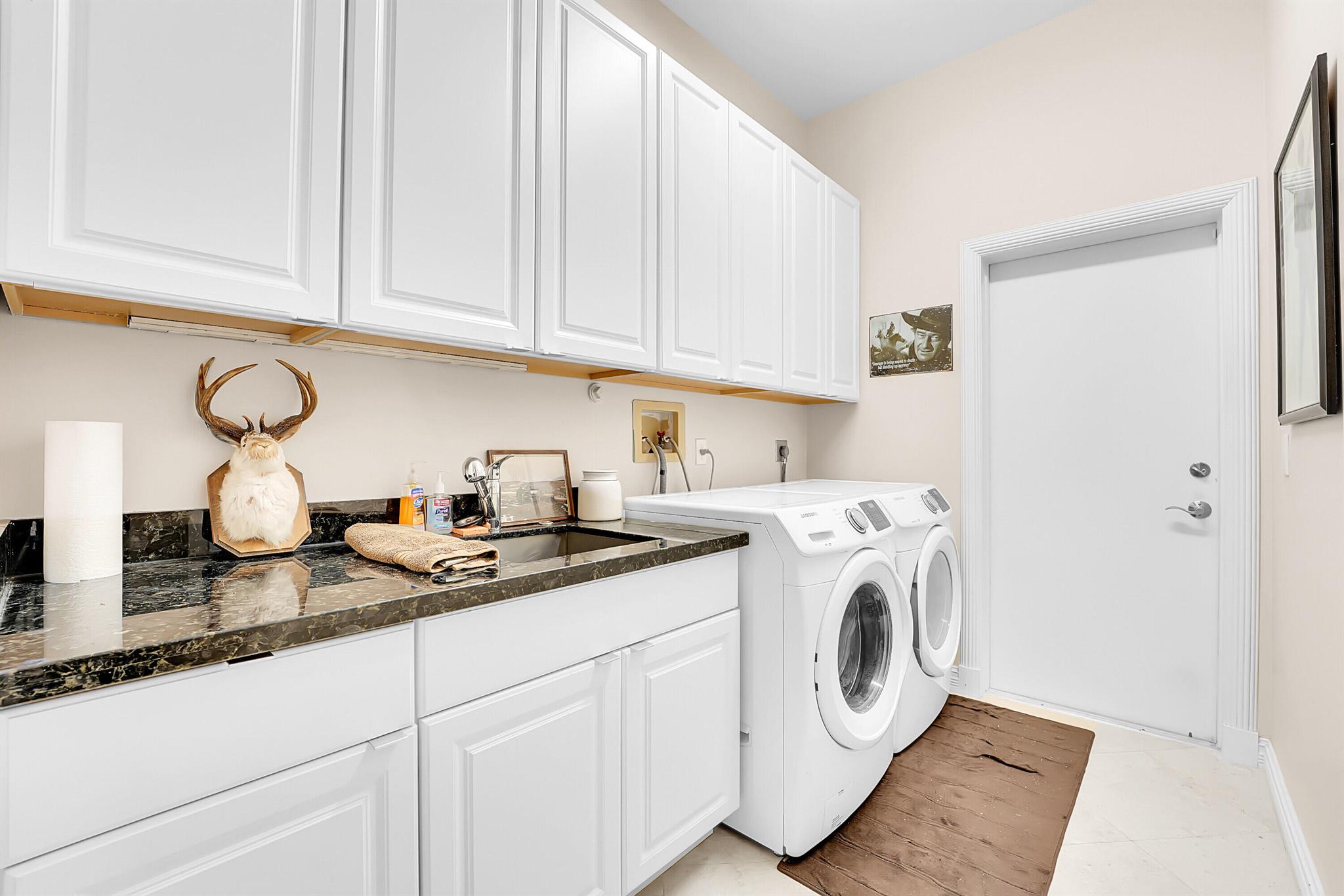 Dreamy, Lakefront Oasis in the Prosperity Corridor. Renovated One Story 4-bedroom 3.5 full bathroom with a Den. Split floor plan with lots of natural light, dual zoned AC's, expansive screened in patio w/heated saltwater pool and spa. Kashmir Marble tile floors throughout the living areas, High tray ceilings, Gourmet Kitchen w/Thermador Pro series SS appliances, Granite counters and White sleek modern Cabinets. Renovated Bathrooms with floor to ceiling tiles, Toto commodes w/washlets, Family room features built ins and Wood burning FP, House offers full hurricane protection w/Impact Doors & Windows along accordions. Electronic shades and plantation shutters for window coverings. Whole house Generac Generator for peace of mind along with LG solar panels for super low energy bills.