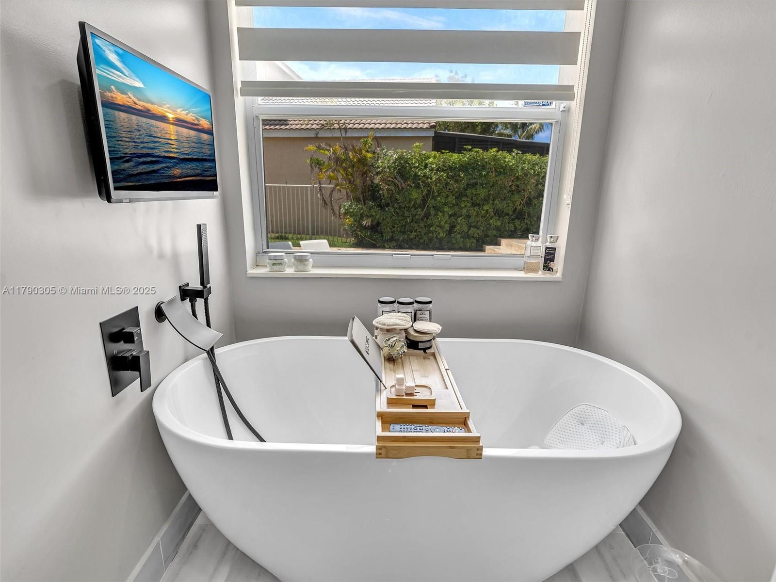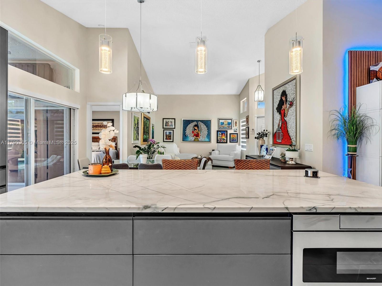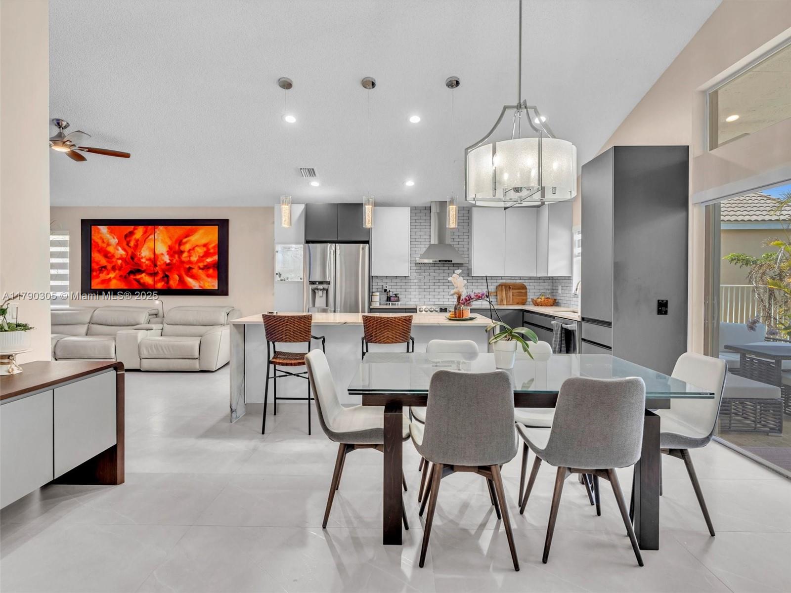 Stunning lakefront pool home in The Falls, Weston. Fully renovated & move-in ready! New 2025 roof, 2024 exterior paint, tile in living, luxury vinyl floor in bedrooms. Modern kitchen & baths with quartzite counters. Custom wall unit with electric fireplace. Saltwater pool with travertine deck, LED lights, and heater. Electric awnings, additional pergola, outdoor shower, aluminum fencing. 2023 Rheem A/C, zebra shades, electric rollers on sliders. Travertine paver driveway. Gated community with A+ schools. Easy to show!! Bring your buyers.