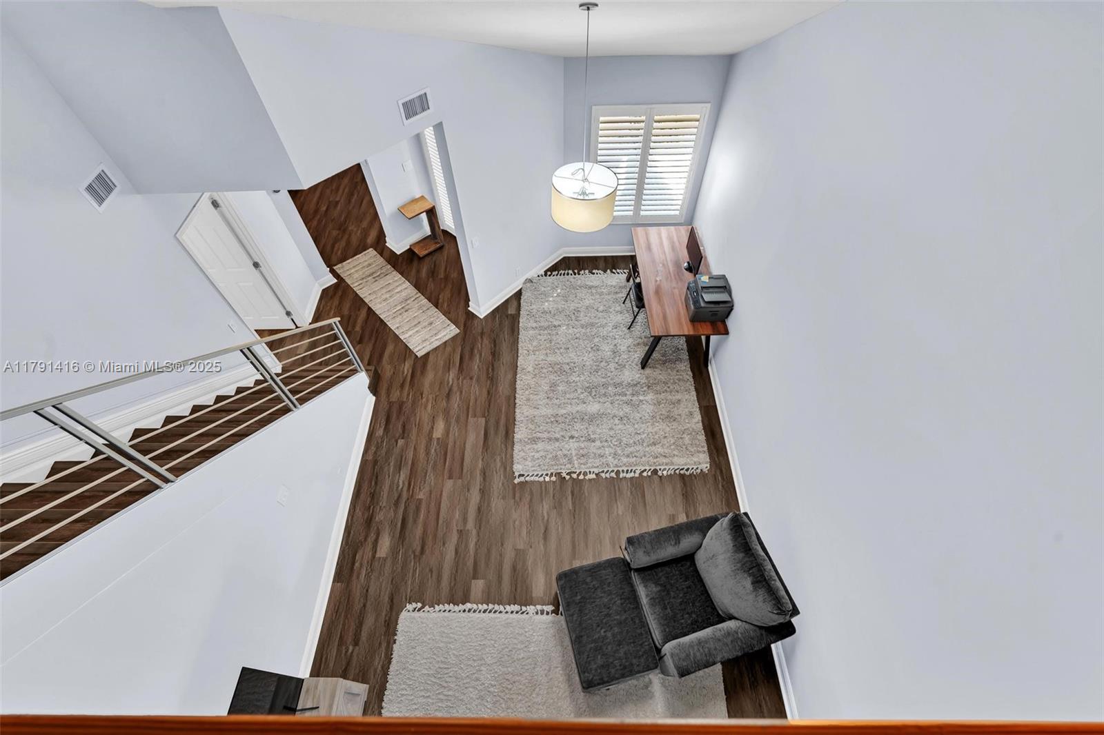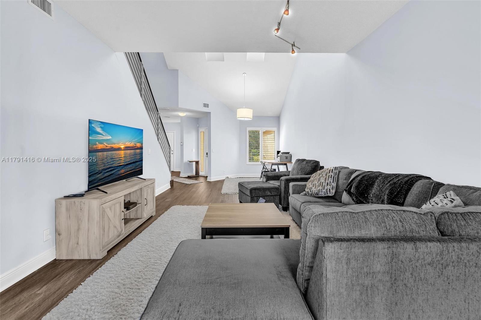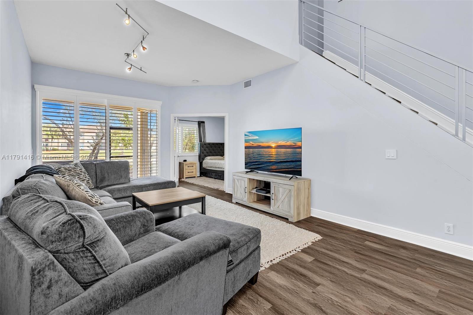 Welcome to this massive 2 story 3 bed +den (4th bedroom/office/den) 2.5 bath totally renovated incl NEW 2025 roof being done now and NEW 2025 exterior white paint. This home looks and feels like a single family home with the master bedroom down! Almost everything new new new in this house incl: new hardwood floors throughout, quartz countertops, new paint throughout, custom blinds, and more! Super sleek clean feel with the 2 master suites and both master baths up and down offering dual vanity sinks, tub and standup shower down; 2 outdoor spaces incl screened in porch down, patio up on the quiet water! Low hoa incl almost everything: exterior insurance, roof, lawn, alarm, water, cable and pool/spa, gym; Attached 2 car extra large new garage interior w/ new tile+paint!