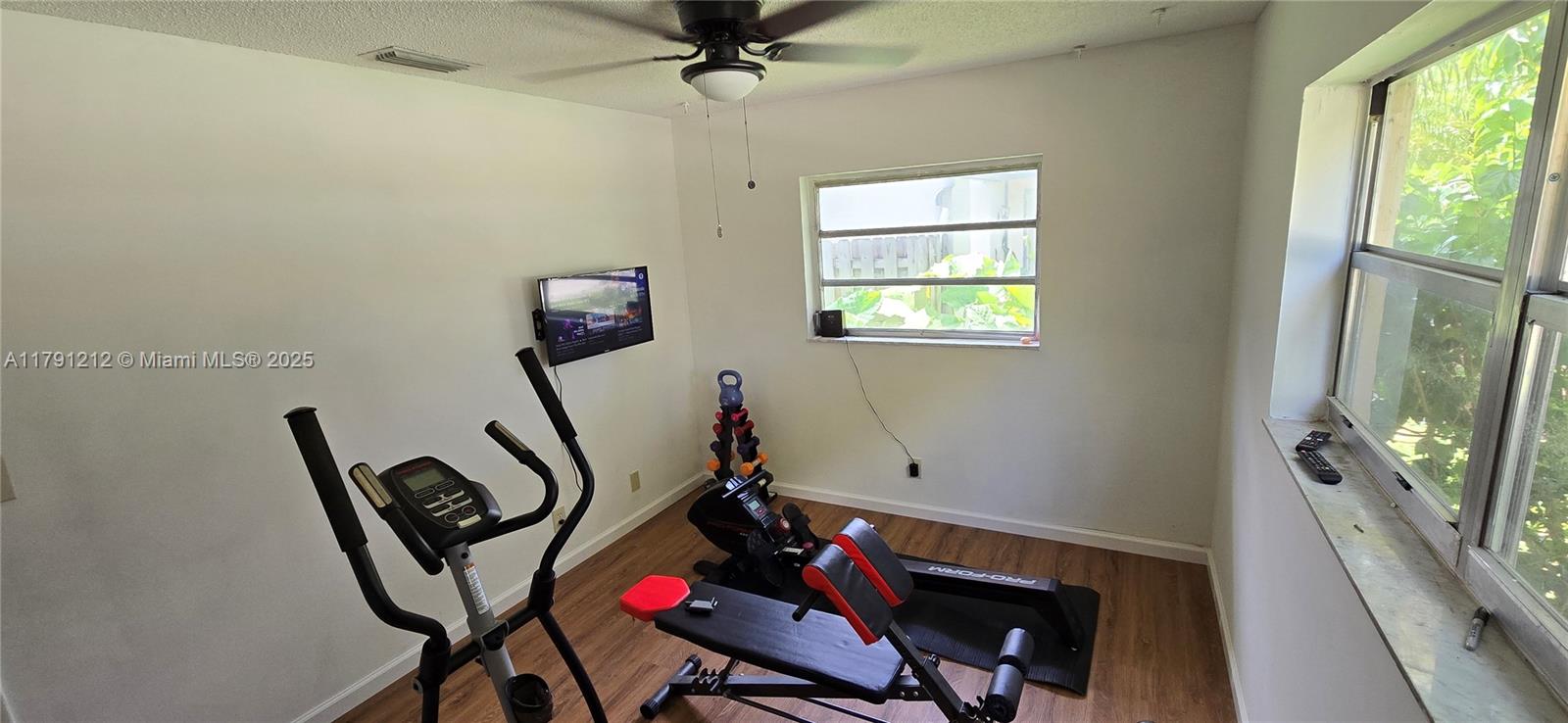 Just reduced.....Your Welleby home awaits! A true 4-bedroom,2 bath home. Over 1700 sq ft of air-conditioned space. This home is surrounded by peace & tranquility, features an atrium entrance, mature fruit trees that produce mangos & avocados, & butterfly gardens. These elements create a quiet and relaxing outdoor space in a fenced backyard with a large enclosed patio. Make this home your sanctuary with a little personalized TLC! A quiet cul-de-sac street with a nearby playground. Near Amarant Bank Arena, Sawgrass Mills, & Sawgrass Expressway. Low annual maintenance. Master bedrm: 13x13 Front bedrm: 11x10 Bedrms 3/4: 10x10Living rm: 23x13 Kitchen: 10x11 Dining rm: 11x11 Garage converted space: 19x12