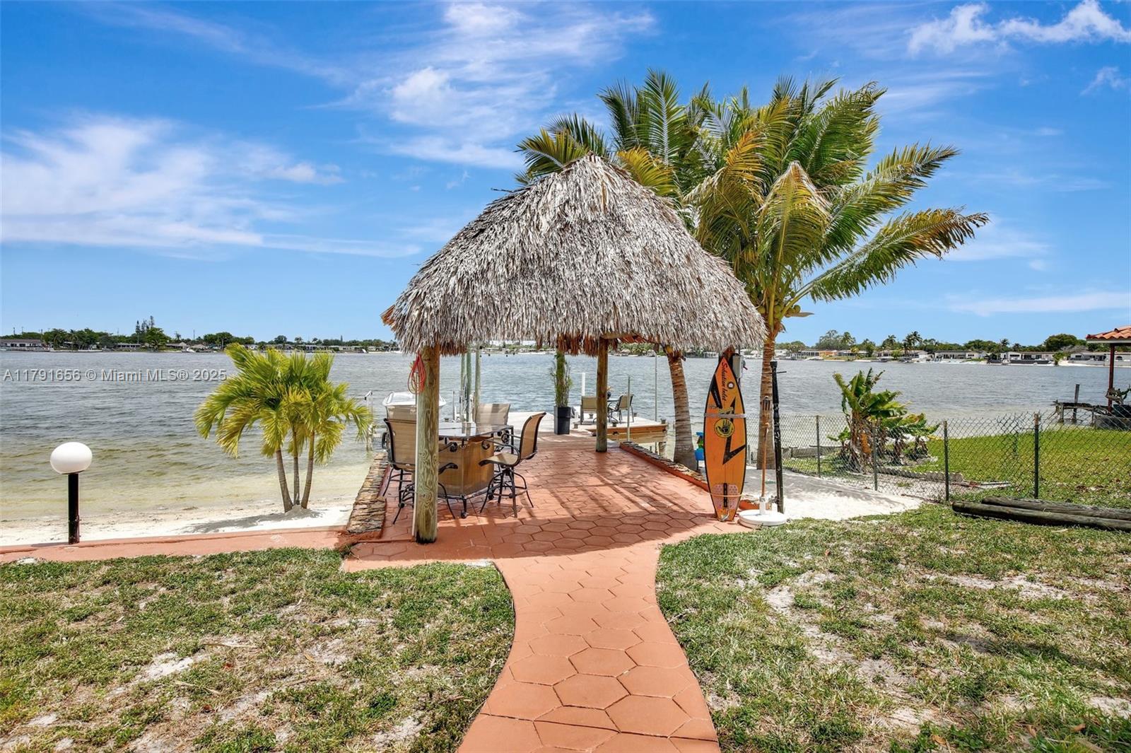 Breath taking lake front views! Beautiful 3 bedroom, 2 bathroom home with potential for additional rooms/space. 2,600 sqft of living space and one of the biggest lots at 10,125 sqft. This home is well maintained. Kitchen and vinyl floors remodeled 2020, Metal roof 2020, master bath tiles, light fixtures, and vanity 2025. AC 2014. Amazing dock with tiki hut, sandy beach area, and fire pit area. Has a private boat ramp, jetski floating dock, and boat lift. Enjoy jet skiing or boating on all three lakes. This neighborhood is a gem hosting motorized lakes which are rare in Miami-Dade County. Amazing schools and parks nearby. Close to I-75 and FL Turnpike. Make this home yours to have fun filled weekends on the water and build long-lasting memories.