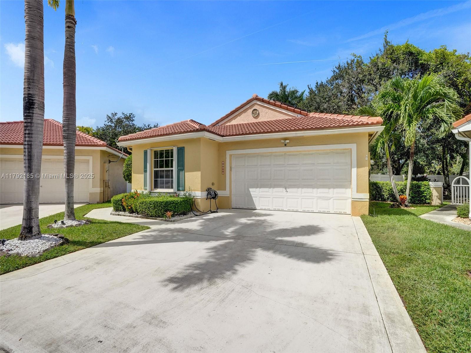 Modern home in the beautiful community of Kensington Green. Set on the 2nd largest lot in the community, boasting 10,541 sqft! Featuring 3 bed, 2 bath, and 1,627 sqft of living space. Highlights include a new roof with solar panels, porcelain floors, & a spacious open-concept layout. The updated kitchen features quartz countertops and a stunning cooking island. Enjoy a screened patio, fenced backyard with room for a pool, mango and plantain trees, and exterior lighting. The garage has been converted into an AC'd entertainment space and can easily be reverted. Ideally located minutes from major stores, gas stations, Sawgrass Expressway, and the Turnpike, and situated in one of Coral Springs' top-rated school zones. Priced to sell—this home is a must-see!