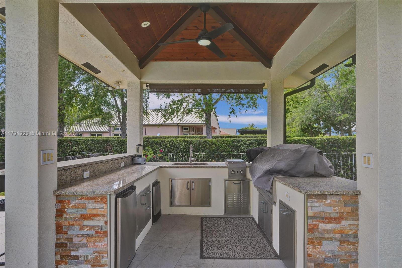 Impeccably updated and maintained by the original owners, this stunning 5 bedroom 3 bath home nestled in the Isles at Sunset Lakes has it all. 2022 metal roof complete with a 25-year transferable warranty. Newer split-zone AC system providing independent climate control for each floor. Beautifully landscaped outdoor space highlighted by a custom-built kitchen and bar, perfect for gatherings. Saltwater pool system, recently resurfaced and equipped with new components. Enormous master suite featuring dual walk-in closets with built-in storage. Solid wood flooring graces the upper level, while elegant tile flows throughout the first floor. 24/hr manned gates with roaming security. All "A" Schools.