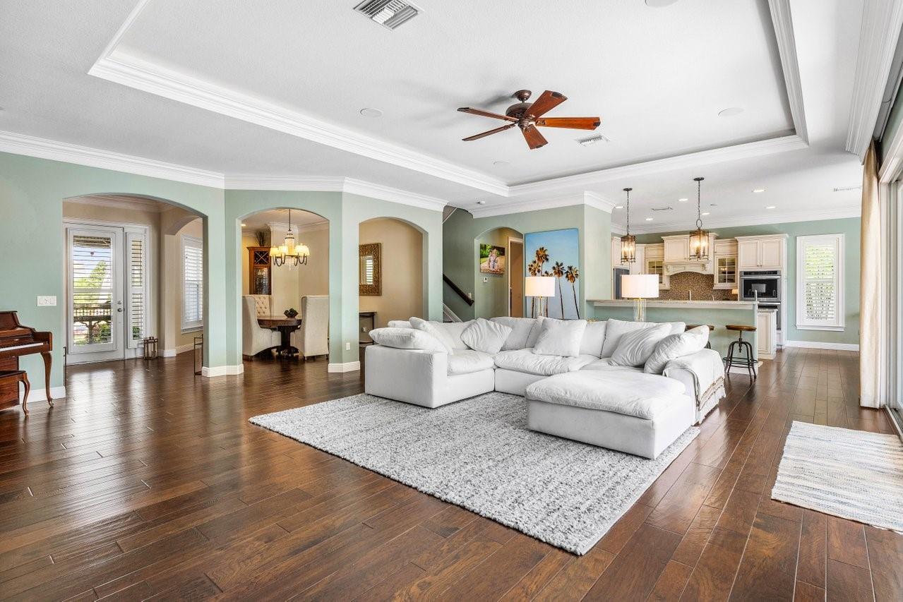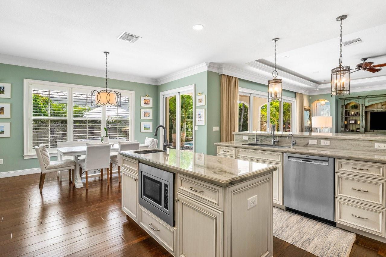 This stunning Key West-style residence captures the essence of coastal living with a perfect balance of formal and relaxed influences. From the moment you arrive with its inviting curb appeal—with its charming front door, shutters, & metal roof you know this home is special. Offerings: Den/Office, Playroom/Gym, Soaring ceilings, Walls of impact windows & Glass doors, 1st Floor primary suite, Sunlit open living spaces, Crisp white island kitchen with premium appliances including a gas range, Whole house water-filtration system (removes fluoride), Wood flooring, Balcony & A seamless indoor-outdoor flow. The tropical backyard features a heated & chilled pool & lush landscaping. The magic begins when the sun sets with landscape lighting. Short stroll to dining, shopping & entertainment.