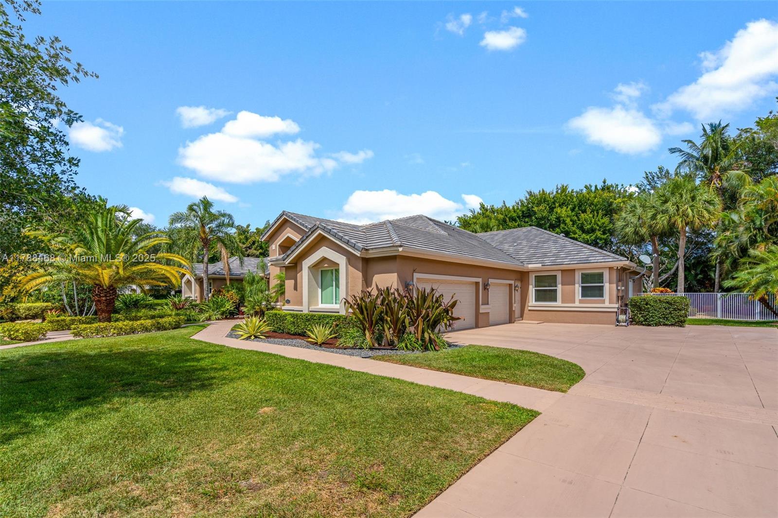 Elegant Family Living in a Gated Tropical Oasis. This 4 Bed + Den, 3.5 Bath home offers refined family living with space, comfort, and style. The 3 car garage has a converted extra room adding an additional 285 Sqft making the total under A/C approx 4,200 sqft. Enjoy high ceilings, expansive living areas, a dedicated home office, and sunlit bedrooms with tranquil garden and pool views. A gourmet remodeled kitchen & new bathrooms add modern convenience, while serene bedrooms provide restful private spaces. Step into your private backyard paradise with a sparkling pool and outdoor living room —perfect for entertaining. Hurricane Impact Windows & Doors 2019. Close to Top Cooper City schools, parks, and upscale shopping, this is luxury living made for family life. Easy to Show!