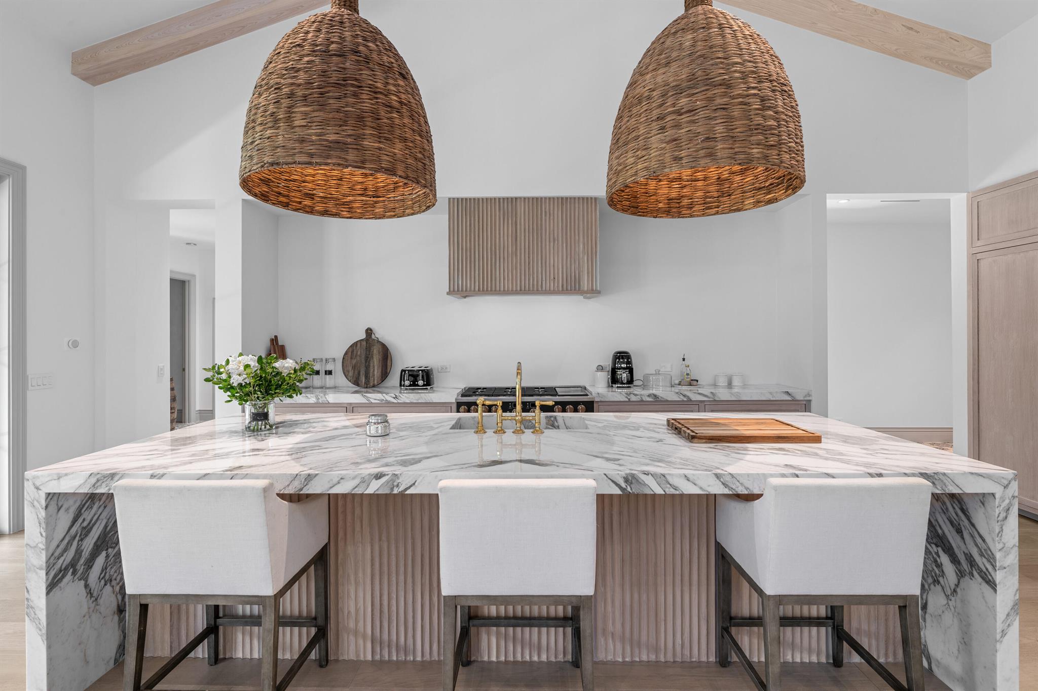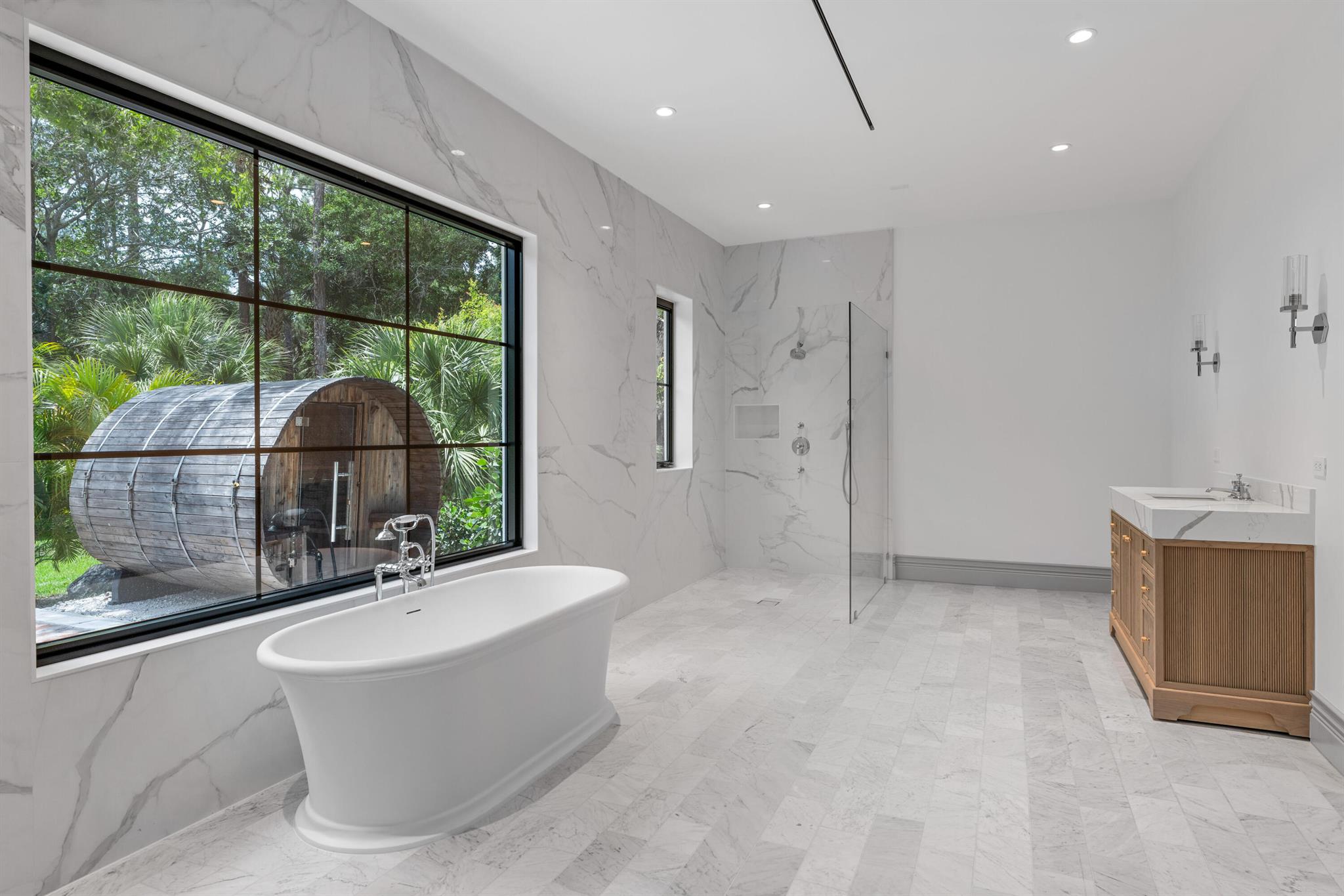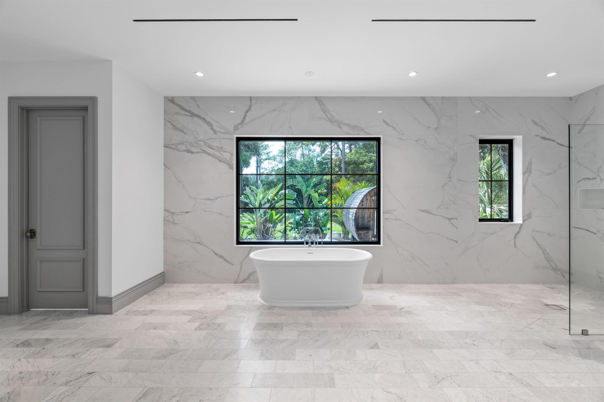 Stunning new 5 bed, 6.1 bath home, new construction redesigned with high-end finishes and top-of-the-line appliances. Features include all-new plumbing, electrical, and mechanical systems, impact windows and doors, barrel tile roof, and a 4-car garage. Interior highlights include wide plank European oak floors, custom cabinetry, level 5 drywall, and marble and limestone accents. Designer details throughout. Pre-wired for smart home tech. Large covered loggia perfect for relaxing or entertaining. With some minor decorative finishing items to be selected by a new Owner, this home is truly move-in ready and made for comfortable, stylish living.