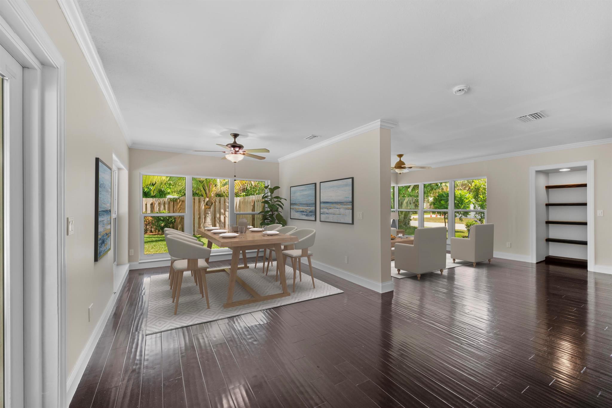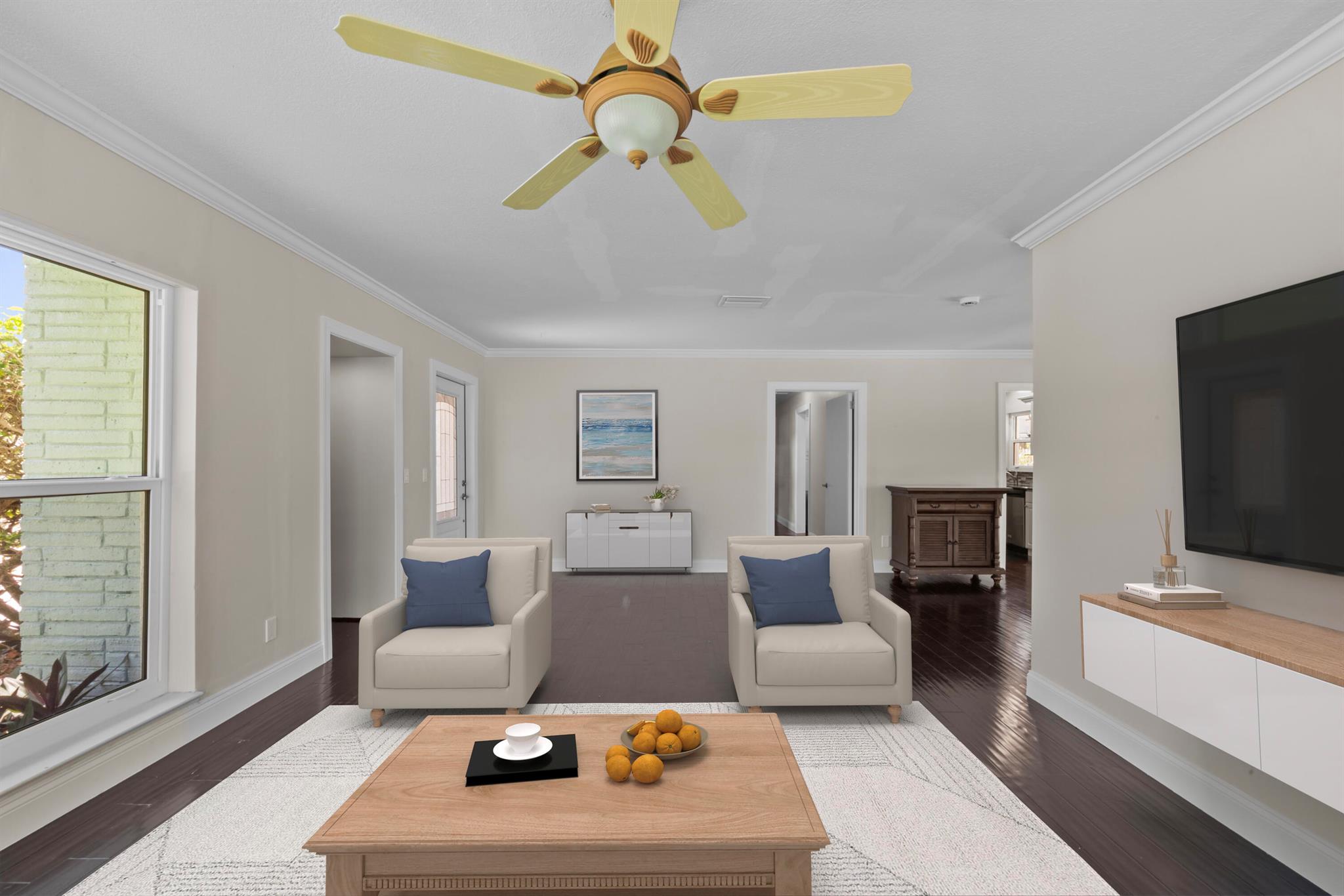 Discover Florida charm in this solid concrete block pool home, with detached garage, ideally situated on an oversized corner lot in the desirable neighborhood near Riverside Drive. This 3/2 residence offers numerous updates, including impact windows, metal roof, & a newly resurfaced pool with beautiful paver decking--perfect for relaxing & entertaining. The spacious master suite, an addition, features walk-in closets, & a large bath with sep. shower & tub. Enjoy the freedom of no HOA, with room to park a boat & two separate driveways--one circular in front & another leading to the detached garage, which doubles as a great workshop or convert to guest home. Surrounded by lush tropical landscaping, you'll love the quiet neighborhood feel