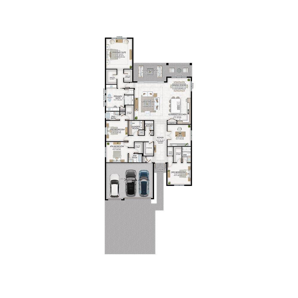 Discover the exceptional Adonis model, perfectly situated on Lot 66, offering breathtaking lake views within the prestigious Avenir community of Palm Beach Gardens. With an estimated delivery date of November 2025, this brand-new Coastal Scheme 7 residence boasts 4 bedrooms, 4.5 bathrooms, a den, and a 3-car garage, encompassing a spacious 3,240 square feet of air-conditioned living space (4,265 total sq ft). Imagine a lifestyle of elegance and tranquility, complete with your own private pool and a gas stub-out ready for your future summer kitchen.