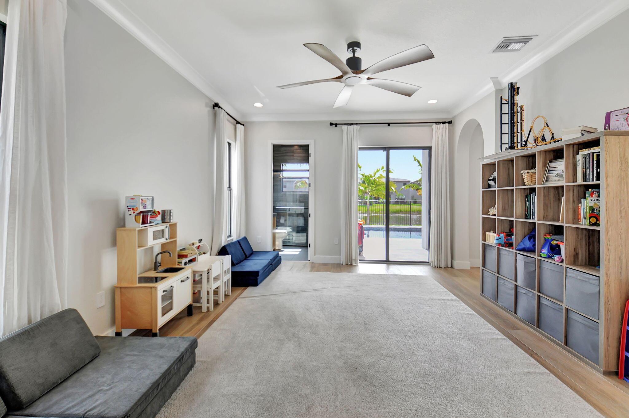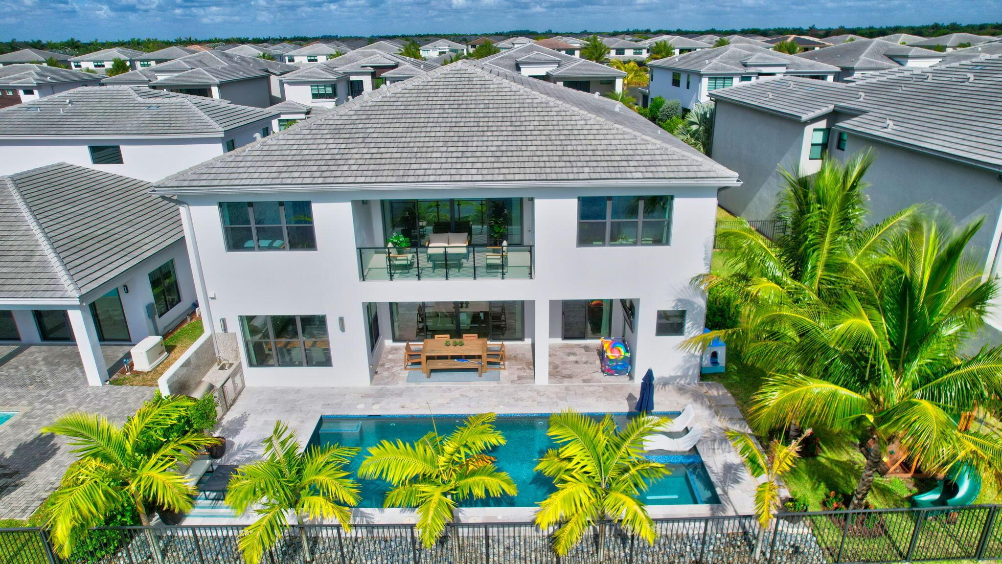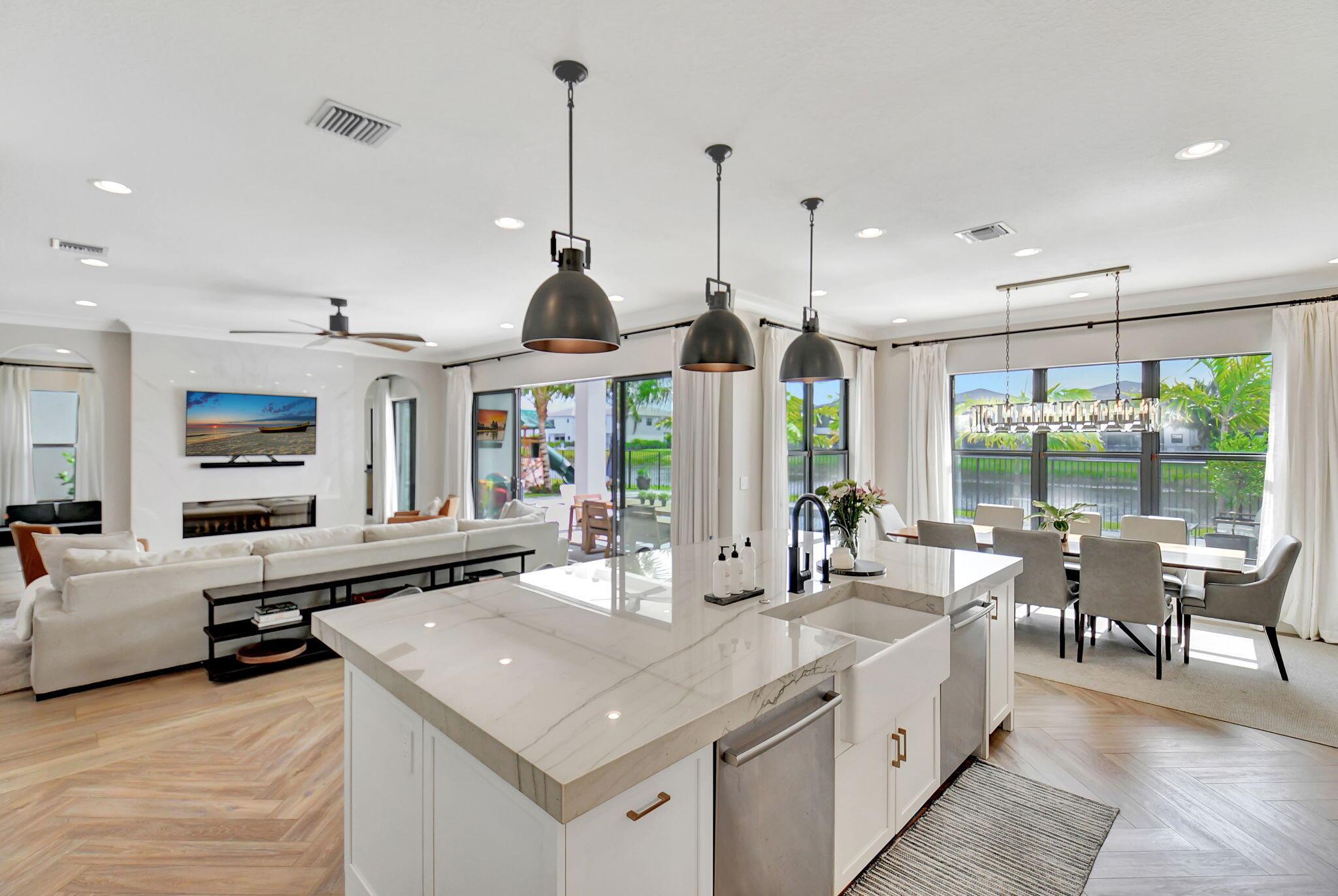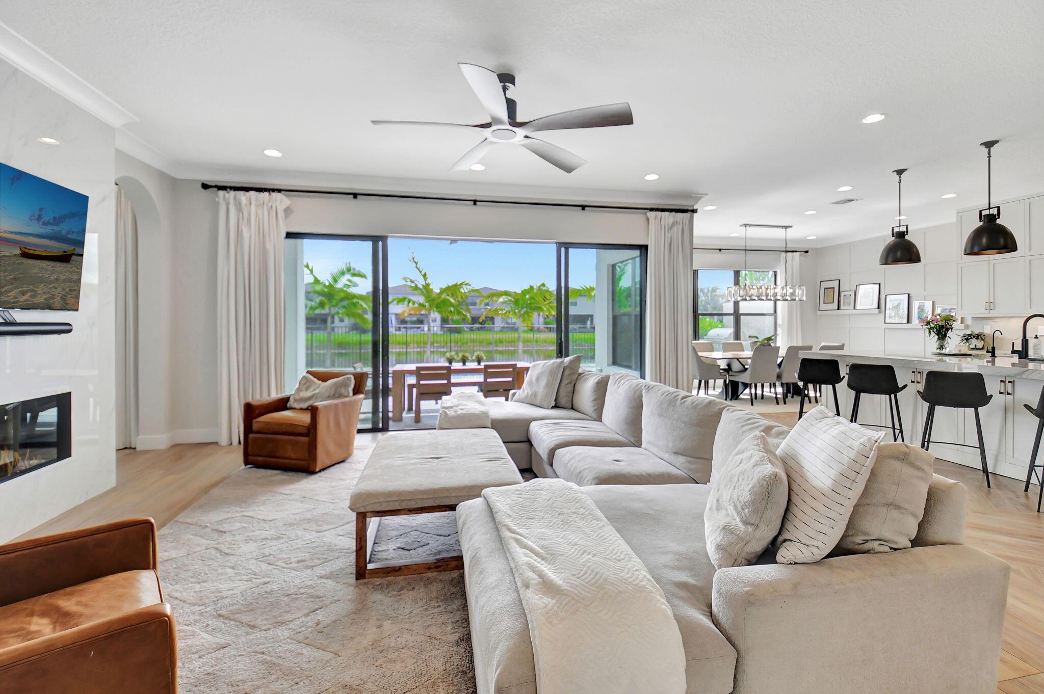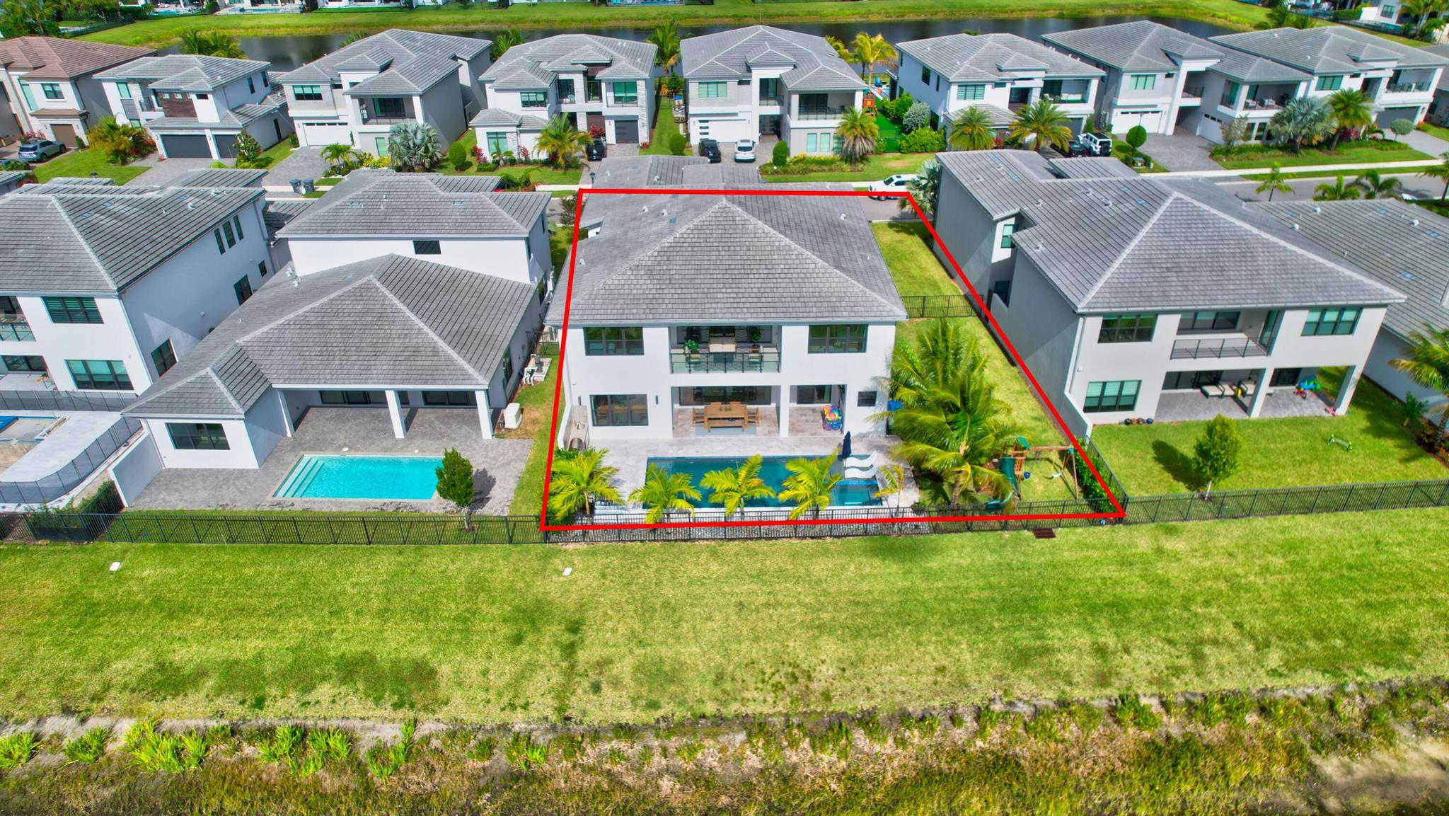 Experience unmatched luxury and design in the largest model home in Lotus, beautifully positioned on a private easement lot with an extra wide yard and stunning lake views. This 6 bedroom, 7 full and 1 half-bath estate features all ensuite bedrooms, offering the ultimate in comfort and privacy. Step outside to your resort-style pool with child gate and oversized hot tub, perfect for relaxation and entertainment. Inside, discover designer finishes throughout, including Restoration Hardware chandeliers, Modern Forms lighting, 7'' crown molding throughout and gorgeous Porcelanosa tile with herringbone detail in the kitchen. The chef's kitchen is a masterpiece, boasting quartzite countertops, a SubZero fridge, Wolf gas cooktop and oven, two BOSCH dishwashers, and a nugget ice maker capable of