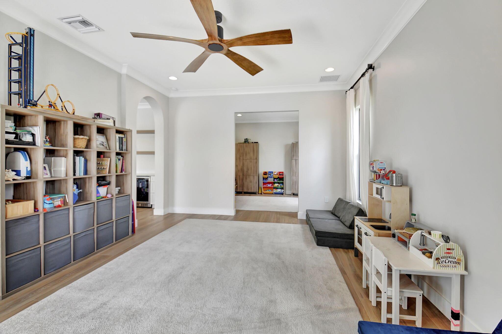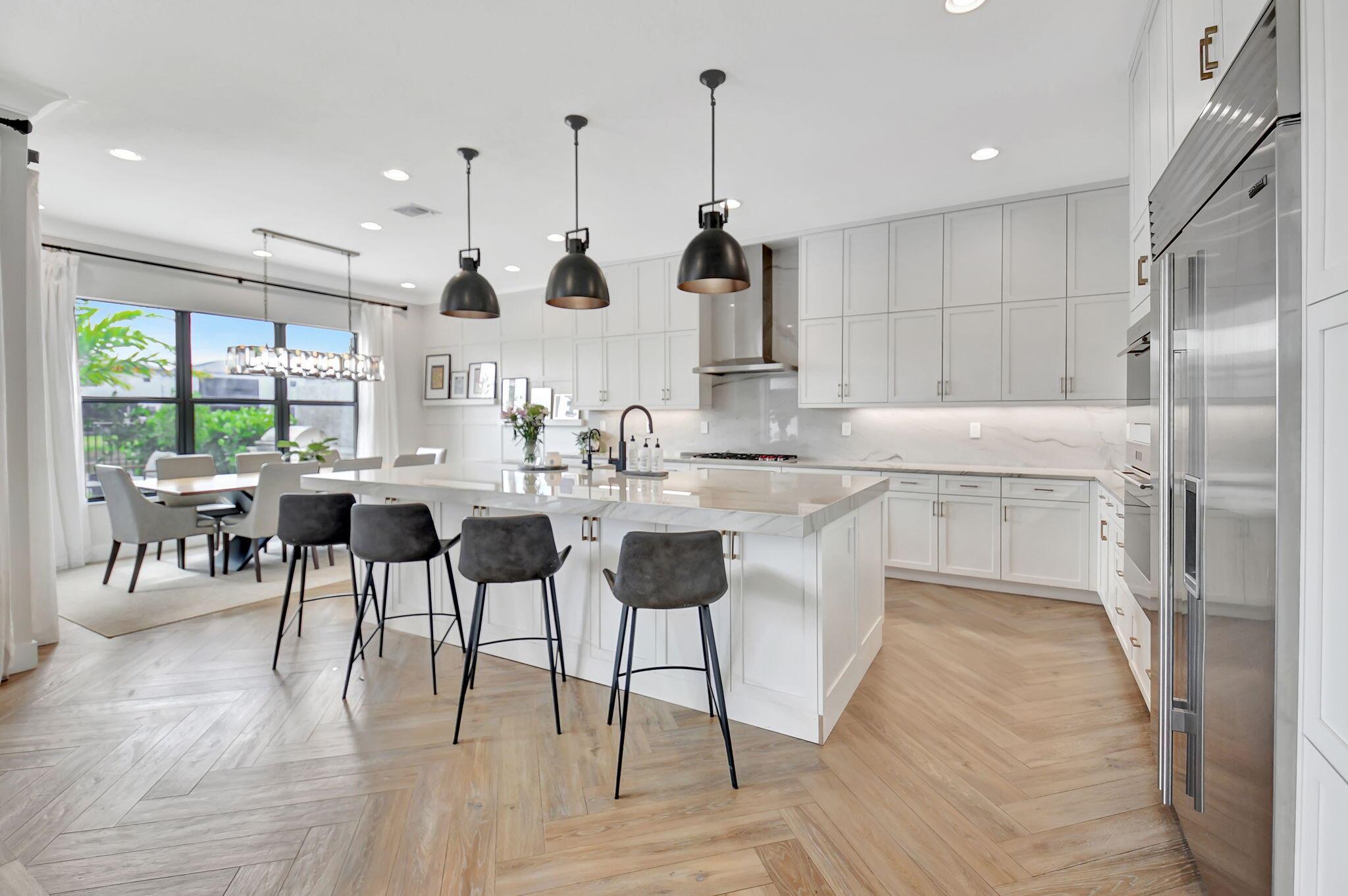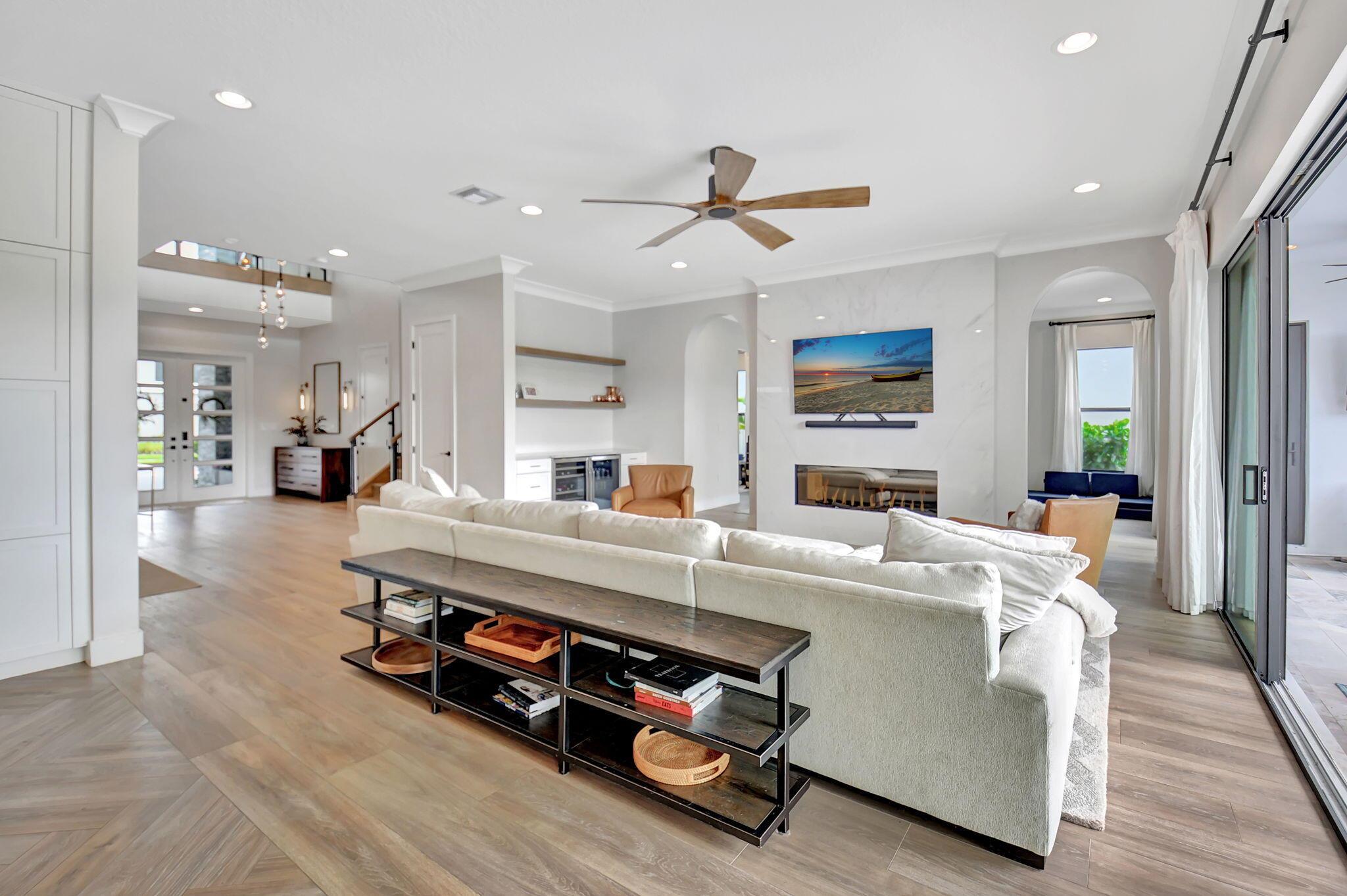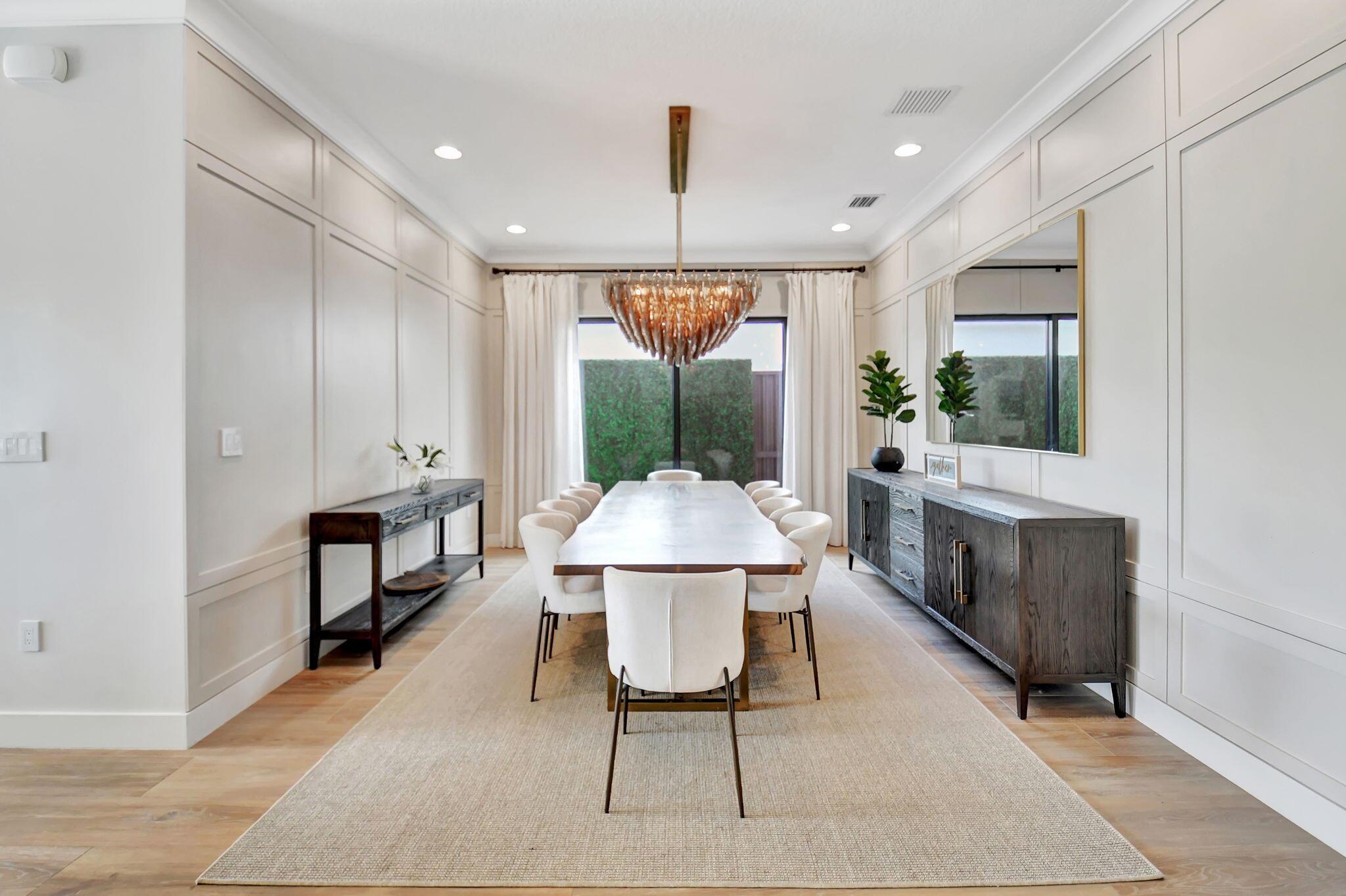 Experience unmatched luxury and design in the largest model home in Lotus, beautifully positioned on a private easement lot with an extra wide yard and stunning lake views. This 6 bedroom, 7 full and 1 half-bath estate features all ensuite bedrooms, offering the ultimate in comfort and privacy. Step outside to your resort-style pool with child gate and oversized hot tub, perfect for relaxation and entertainment. Inside, discover designer finishes throughout, including Restoration Hardware chandeliers, Modern Forms lighting, 7'' crown molding throughout and gorgeous Porcelanosa tile with herringbone detail in the kitchen. The chef's kitchen is a masterpiece, boasting quartzite countertops, a SubZero fridge, Wolf gas cooktop and oven, two BOSCH dishwashers, and a nugget ice maker capable of