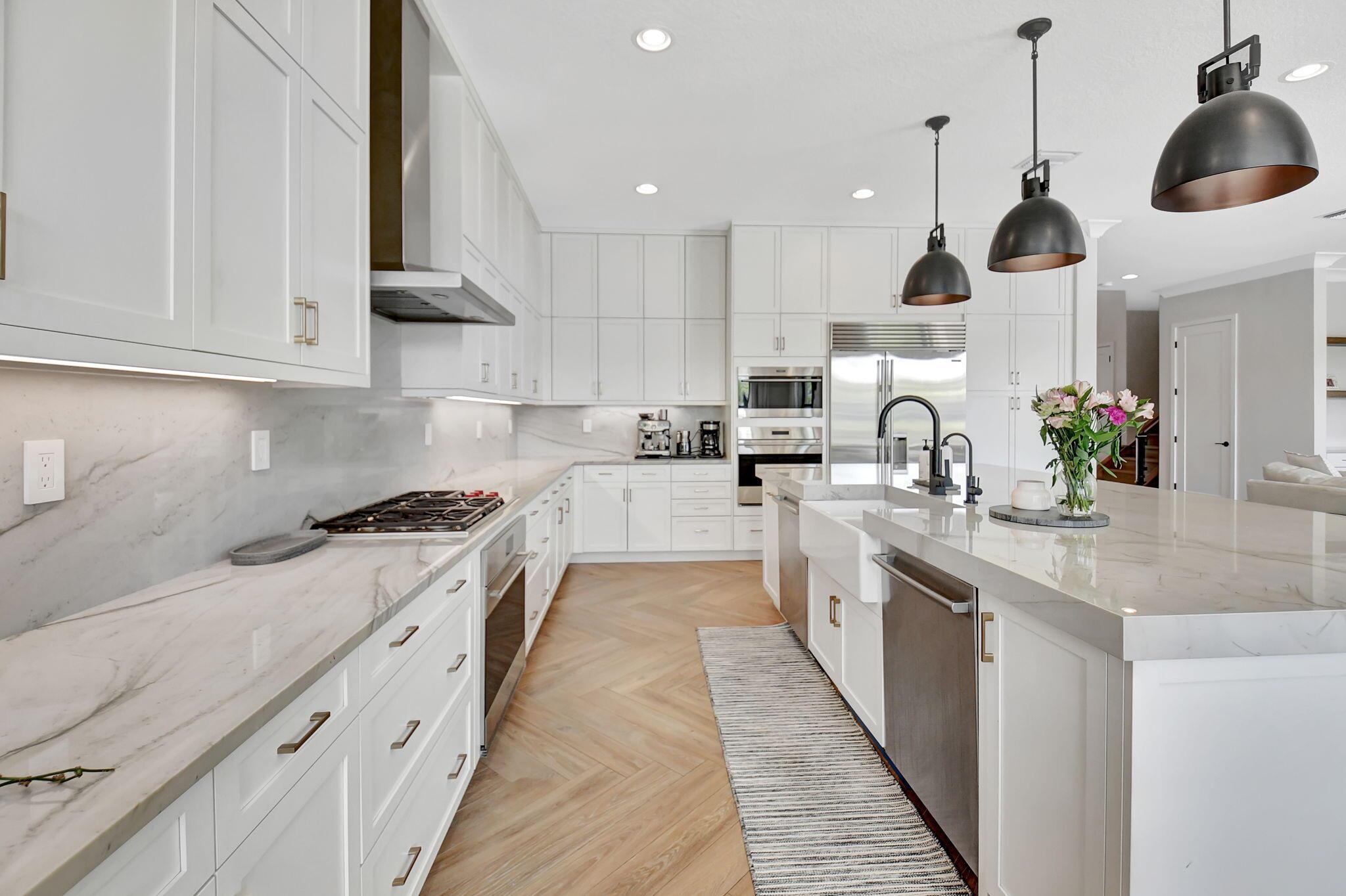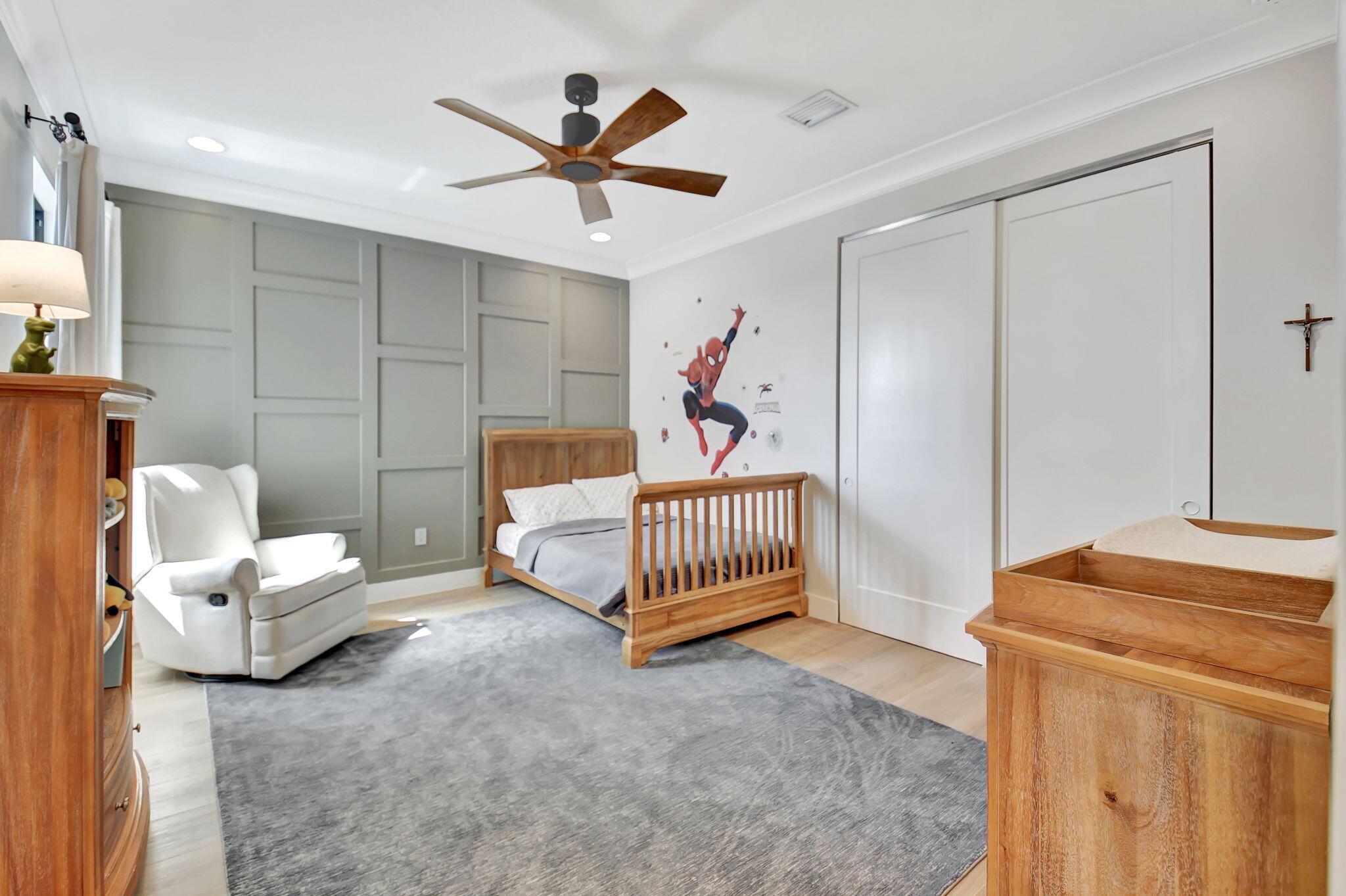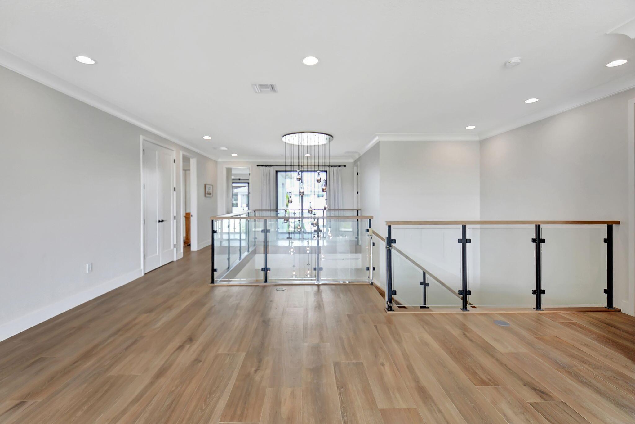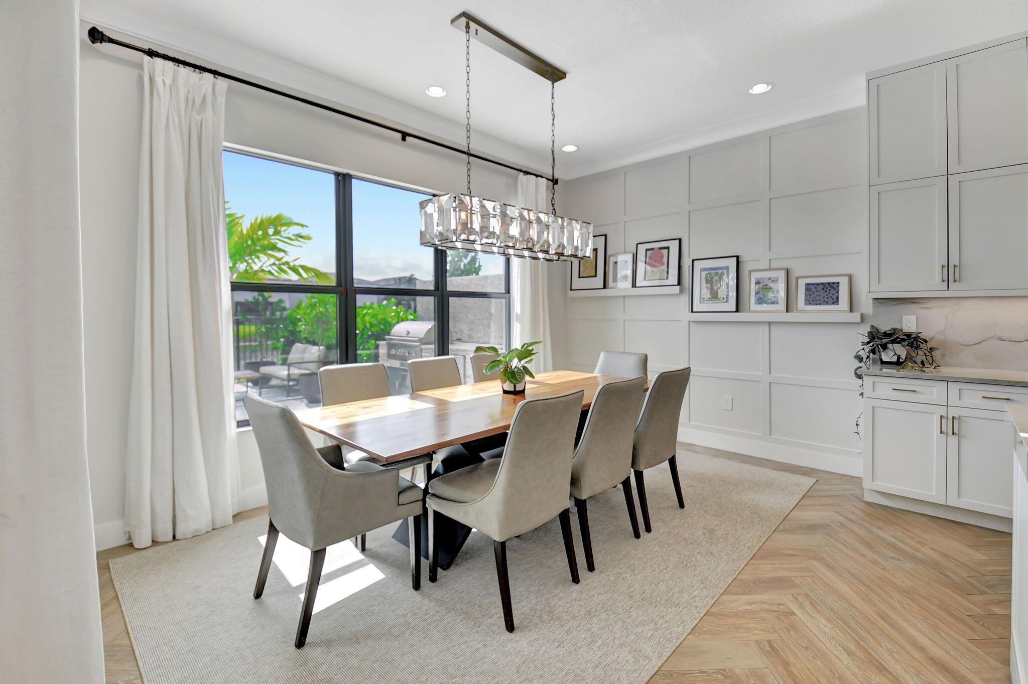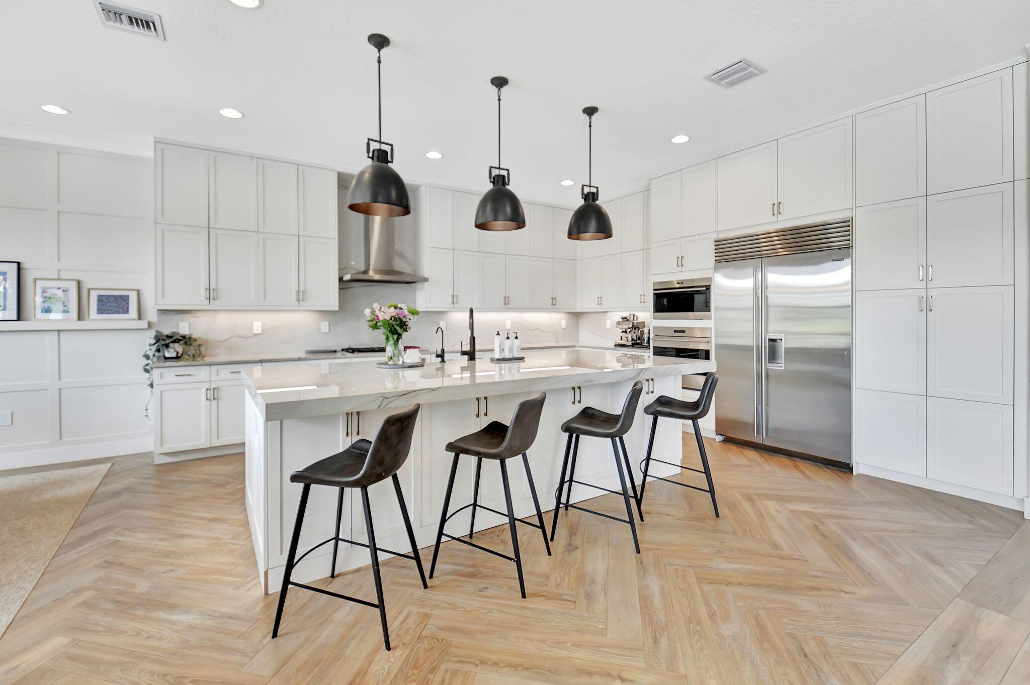 Experience unmatched luxury and design in the largest model home in Lotus, beautifully positioned on a private easement lot with an extra wide yard and stunning lake views. This 6 bedroom, 7 full and 1 half-bath estate features all ensuite bedrooms, offering the ultimate in comfort and privacy. Step outside to your resort-style pool with child gate and oversized hot tub, perfect for relaxation and entertainment. Inside, discover designer finishes throughout, including Restoration Hardware chandeliers, Modern Forms lighting, 7'' crown molding throughout and gorgeous Porcelanosa tile with herringbone detail in the kitchen. The chef's kitchen is a masterpiece, boasting quartzite countertops, a SubZero fridge, Wolf gas cooktop and oven, two BOSCH dishwashers, and a nugget ice maker capable of
