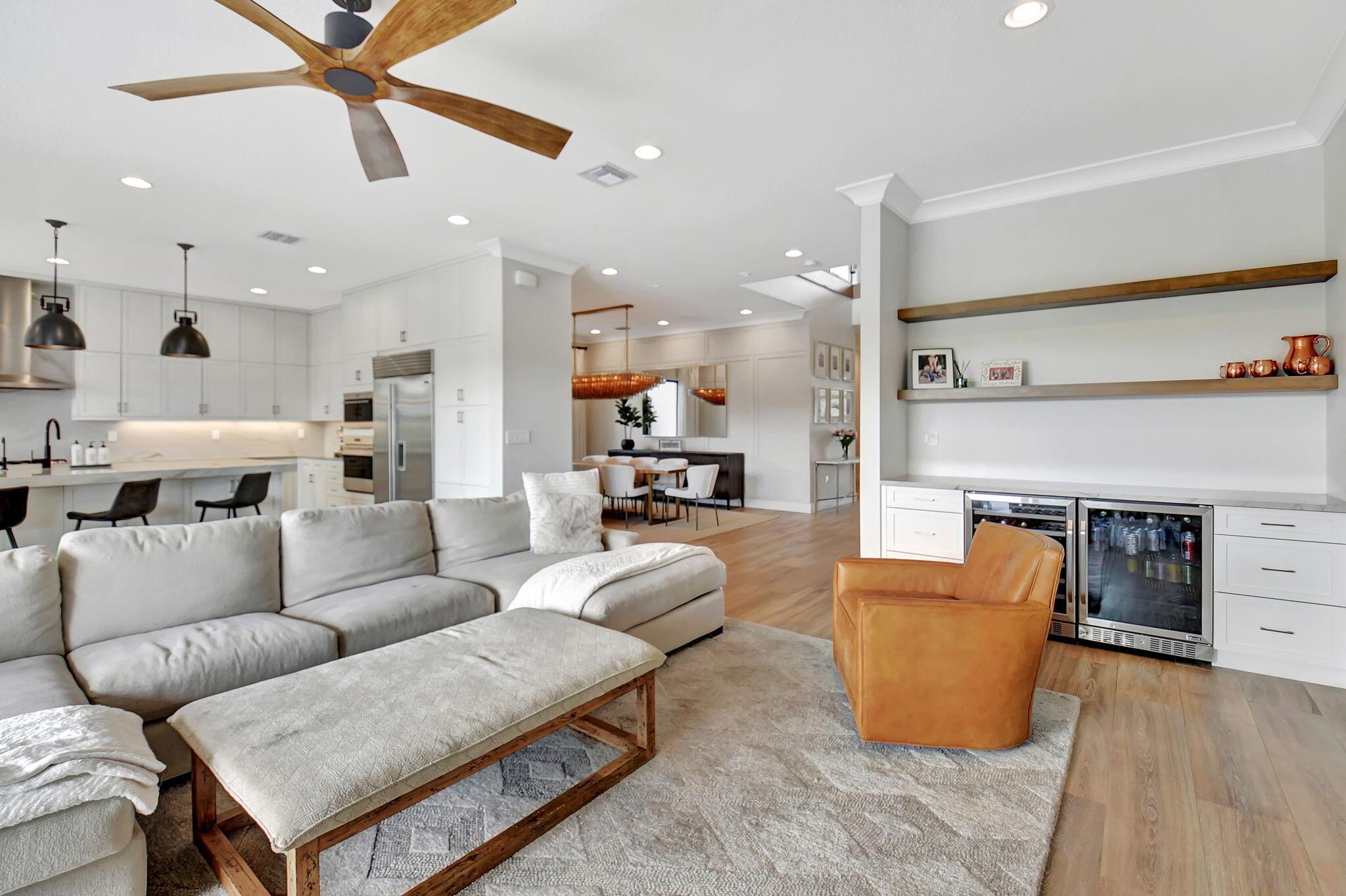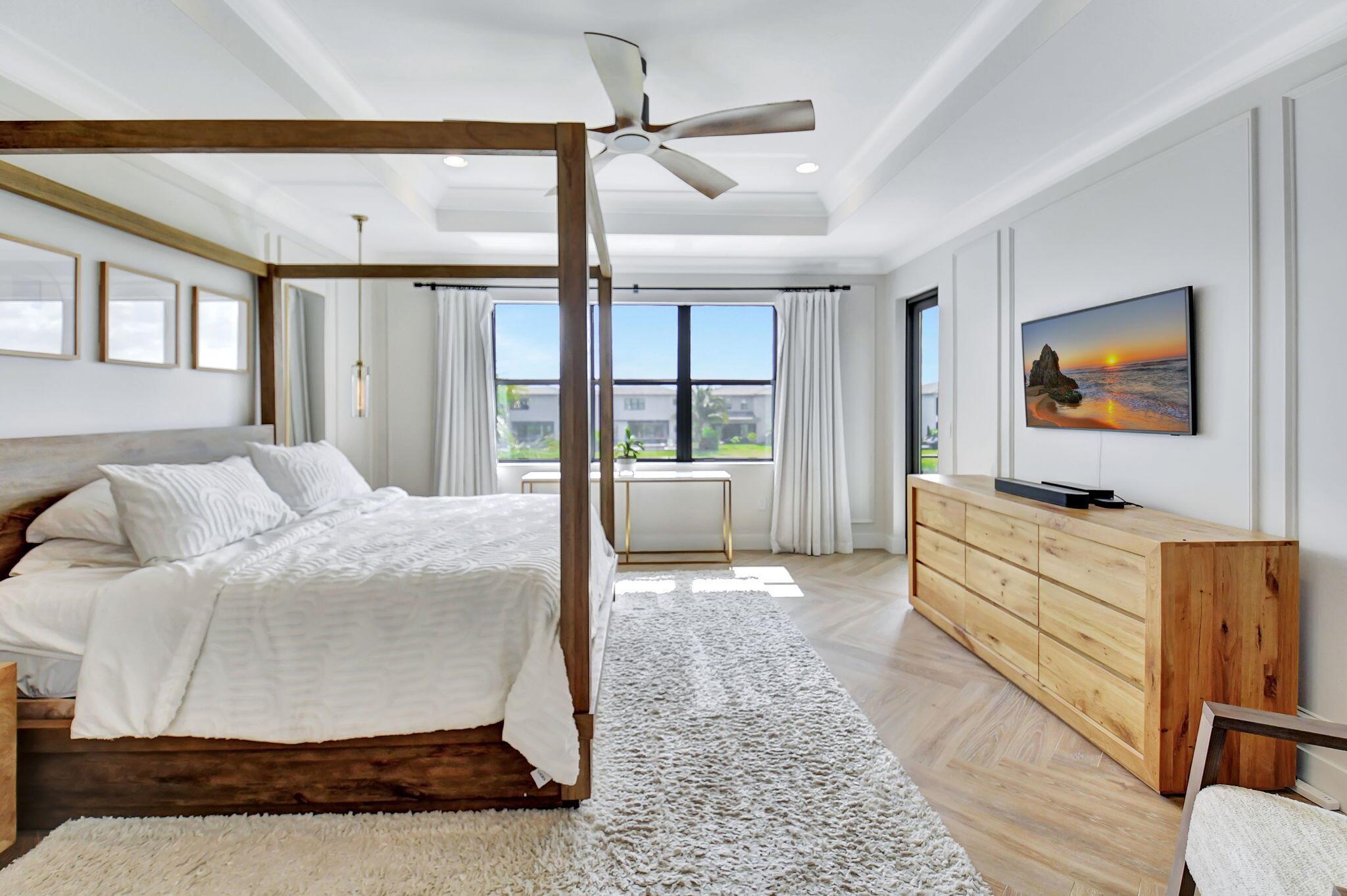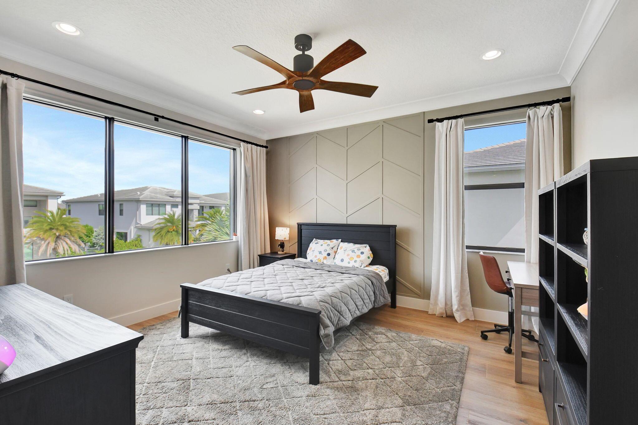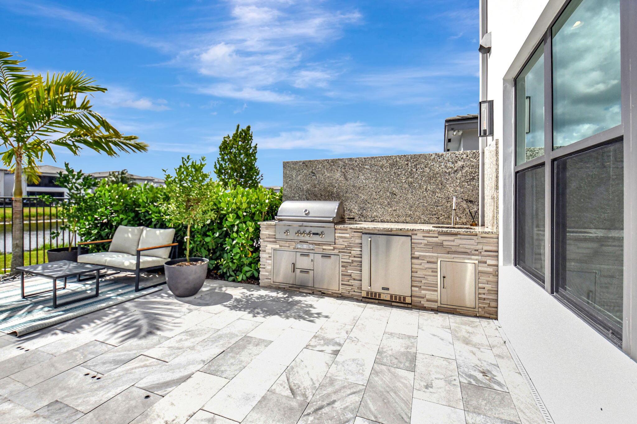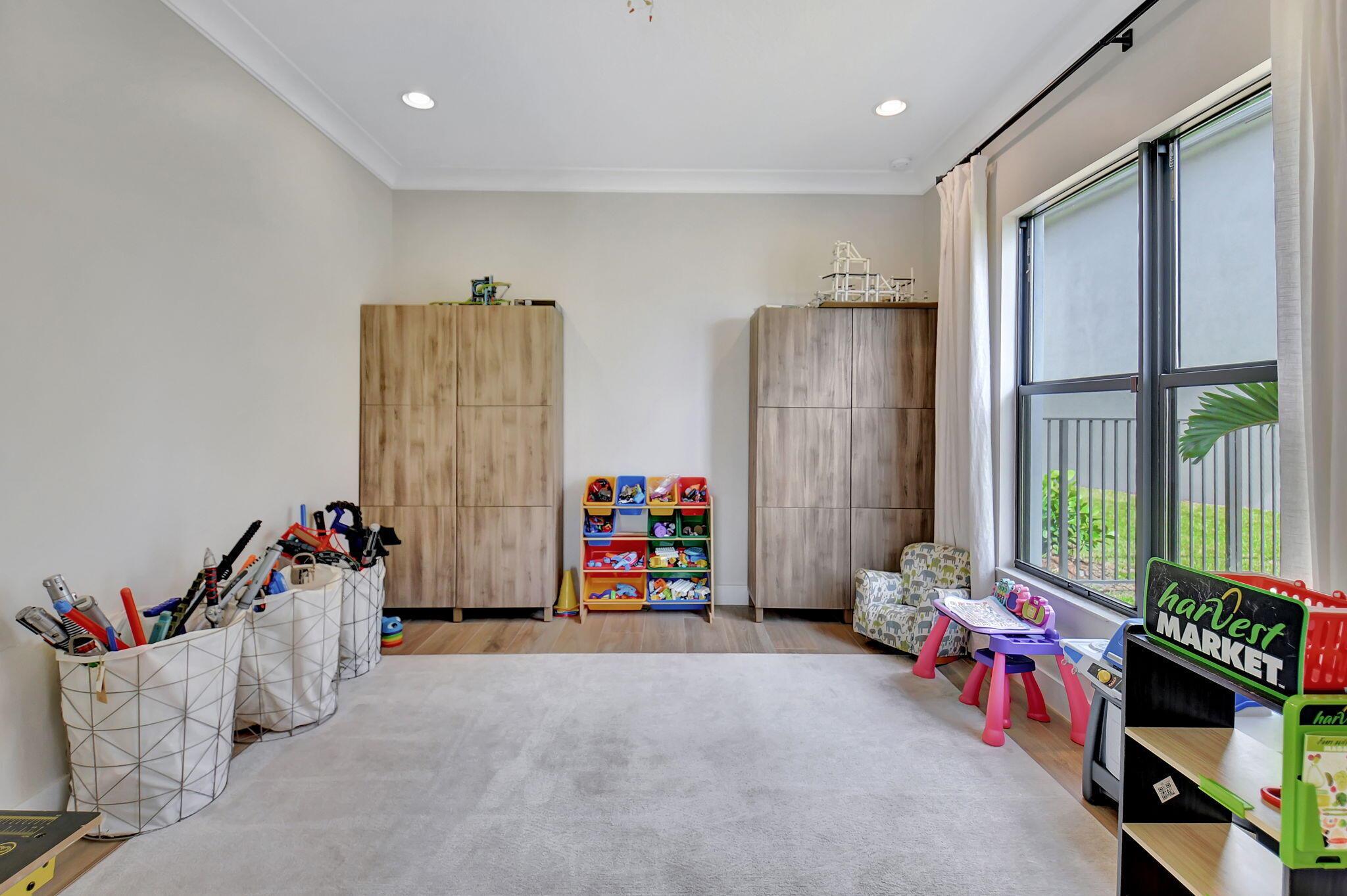 Experience unmatched luxury and design in the largest model home in Lotus, beautifully positioned on a private easement lot with an extra wide yard and stunning lake views. This 6 bedroom, 7 full and 1 half-bath estate features all ensuite bedrooms, offering the ultimate in comfort and privacy. Step outside to your resort-style pool with child gate and oversized hot tub, perfect for relaxation and entertainment. Inside, discover designer finishes throughout, including Restoration Hardware chandeliers, Modern Forms lighting, 7'' crown molding throughout and gorgeous Porcelanosa tile with herringbone detail in the kitchen. The chef's kitchen is a masterpiece, boasting quartzite countertops, a SubZero fridge, Wolf gas cooktop and oven, two BOSCH dishwashers, and a nugget ice maker capable of