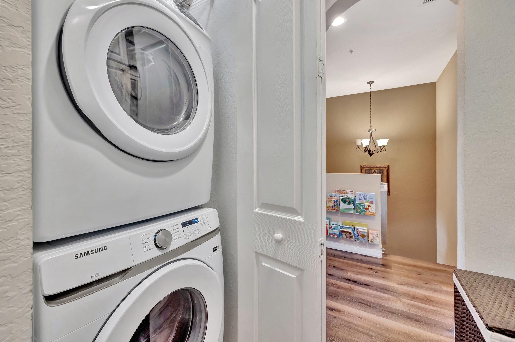 Beautiful 2-bedroom, 2.5-bath home located in a cozy, gated community—truly worth seeing! This well-maintained property is move-in ready and ideal for a new family. It features tiled floors, downstairs and laminate on second floor, an open kitchen with granite countertops, and plenty of storage space. Each bedroom has its own private bathroom, and the master suite includes a walk-in closet. The laundry room and a large additional storage area are conveniently located upstairs. Enjoy serene water views in a community that is beautifully maintained and pet-friendly. Amenities include a sparkling pool and a secure electric gate. Easy to show—schedule your tour today!