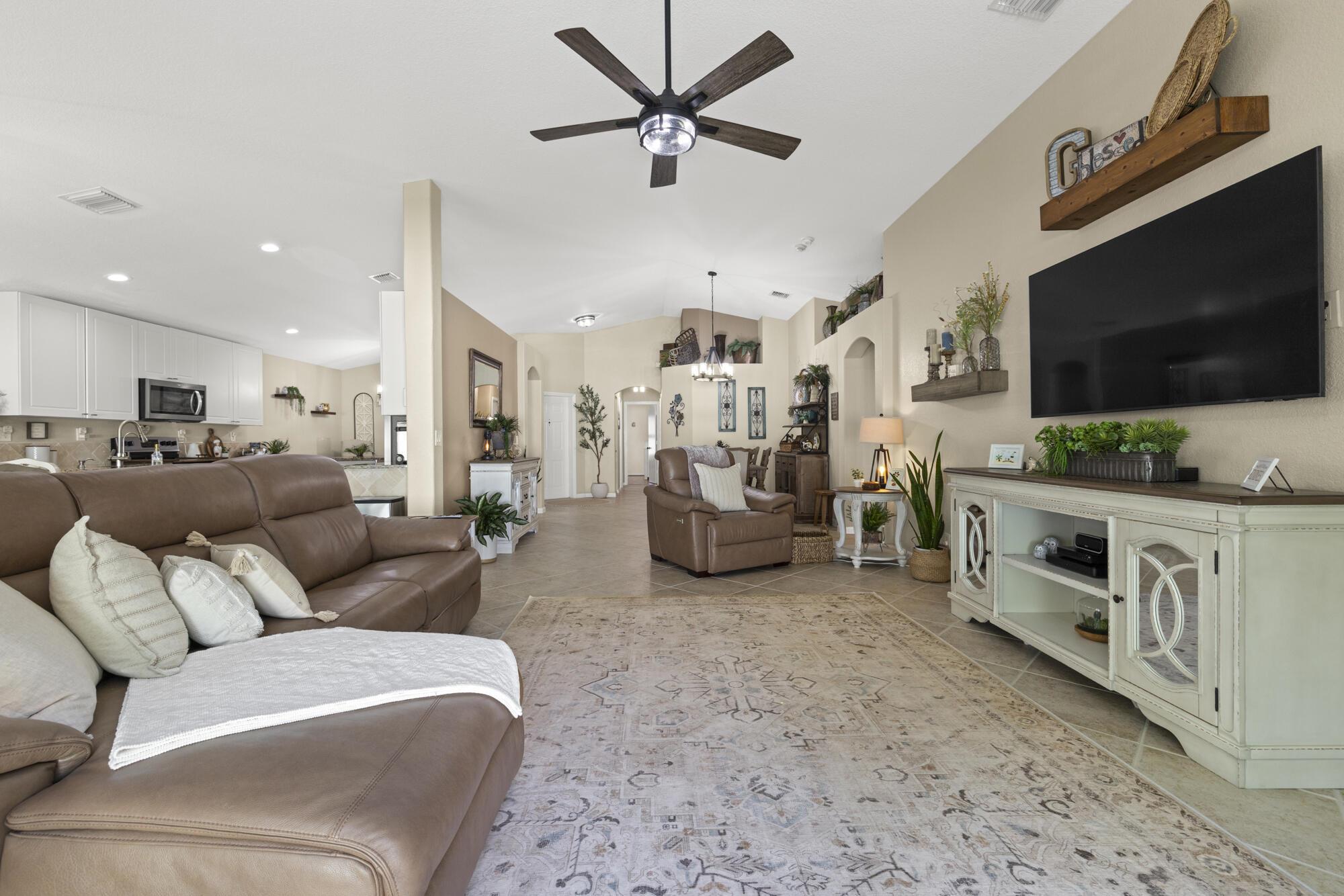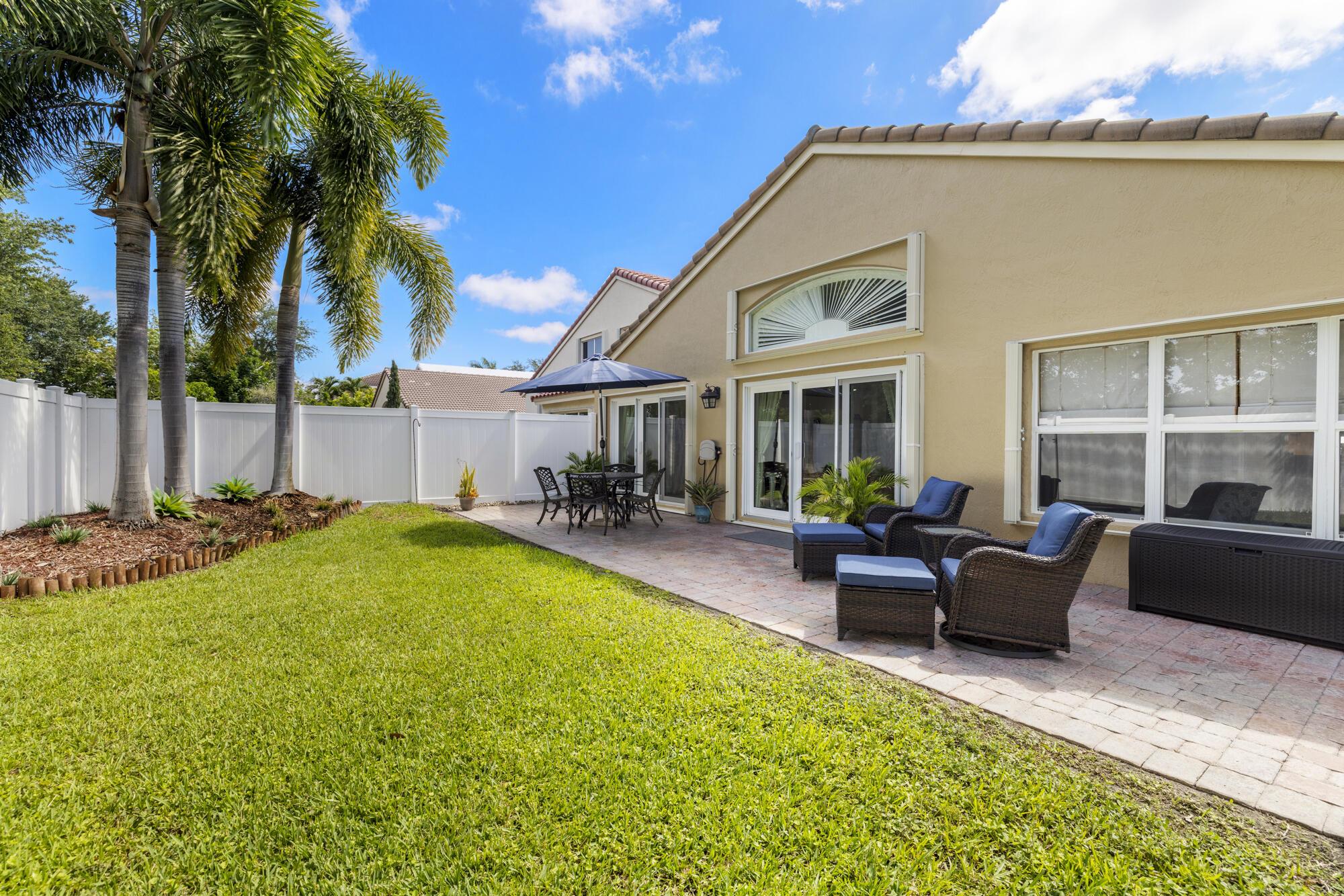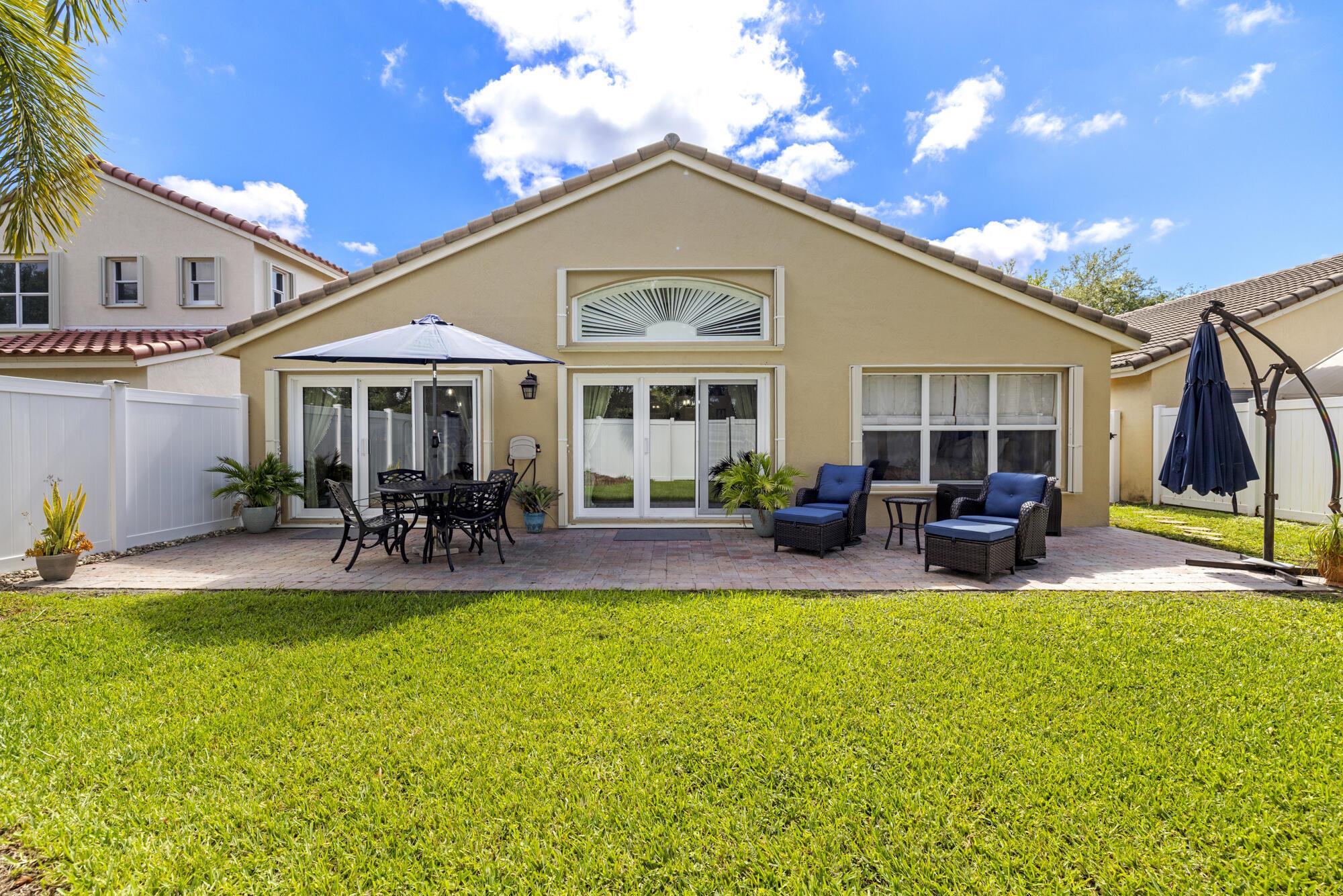 Modern comfort meets secure community living in the beautifully maintained 3-bedroom, 2-bathroom single-family home in West Palm Beach ... Located in a desirable manned gated community, this residence offers spacious living areas, a sleek modern design, and peace of mind with newly installed windows equipped with hurricane accordion shutters. The open-concept layout flows effortlessly into a stylish kitchen equipped with stainless steel appliances and a living area, perfect for relaxing and entertaining with upgraded lighting throughout the home ... Enjoy outdoor living in the fully fenced in back yard or take advantage of two community pools, basketball and tennis courts ... A 2-car garage ... --- AC w/ UV Light (2025), windows (2023), fence (2024), well for sprinklers (2019)