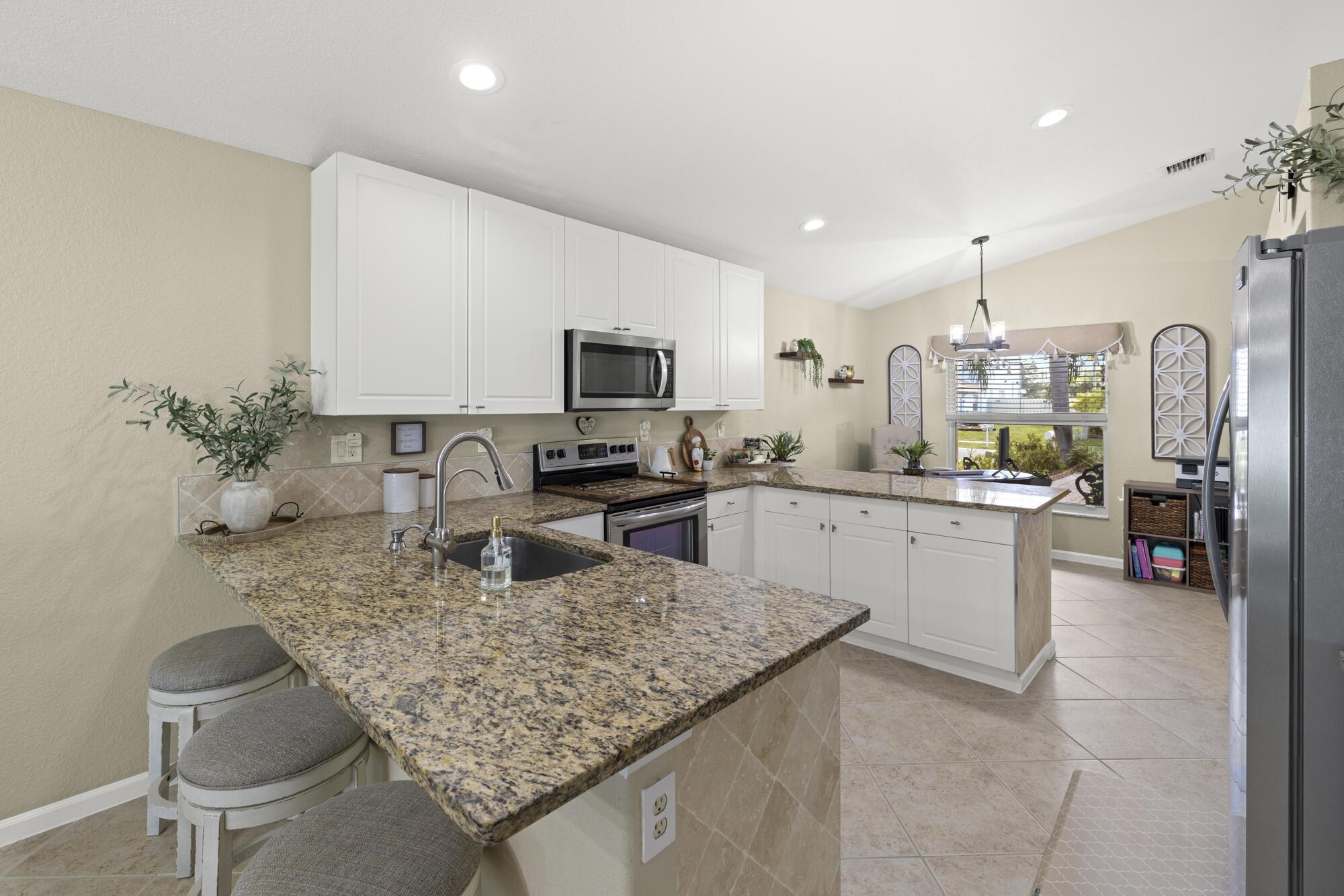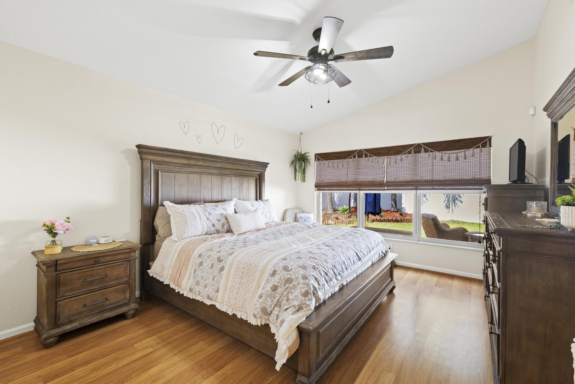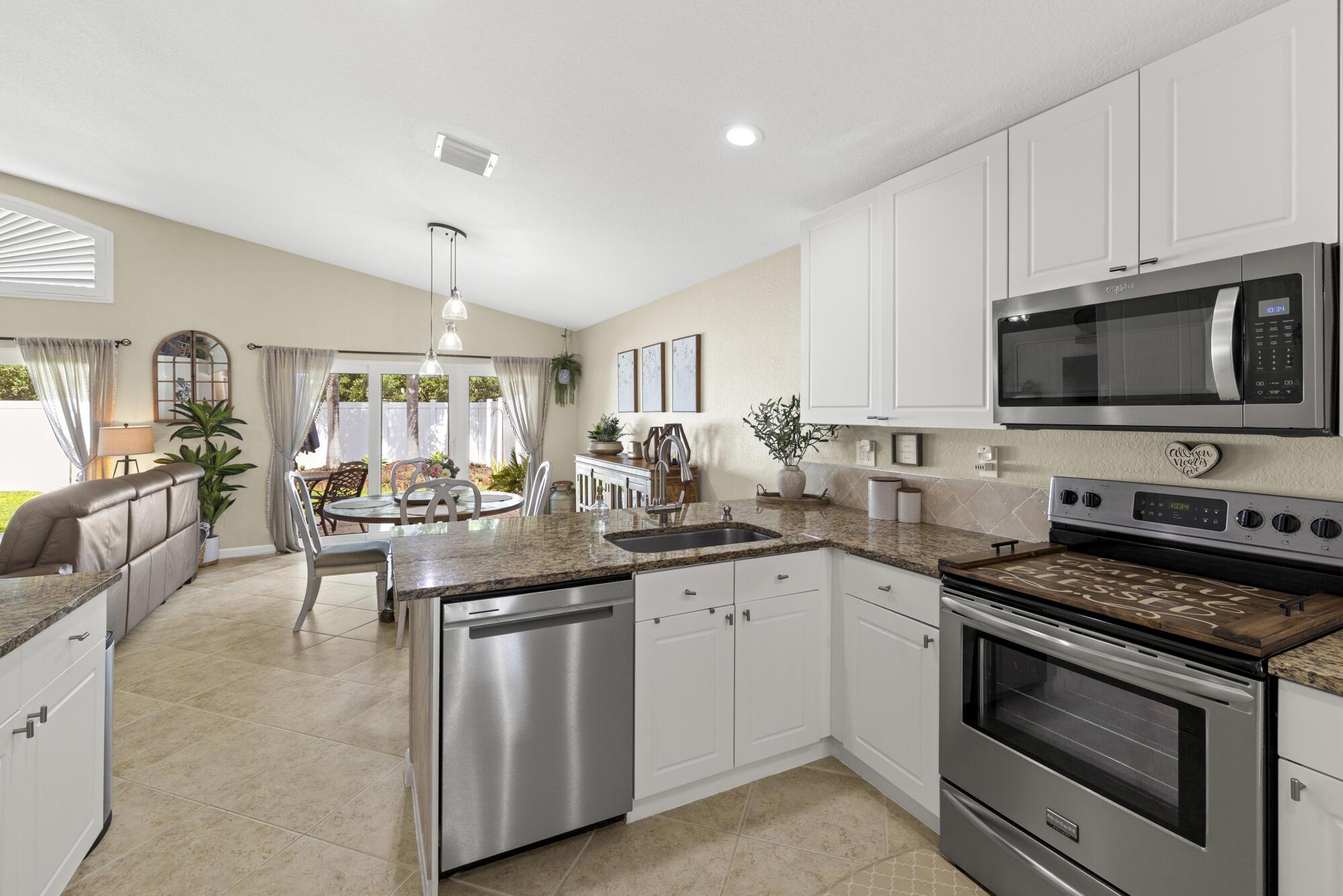 Modern comfort meets secure community living in the beautifully maintained 3-bedroom, 2-bathroom single-family home in West Palm Beach ... Located in a desirable manned gated community, this residence offers spacious living areas, a sleek modern design, and peace of mind with newly installed windows equipped with hurricane accordion shutters. The open-concept layout flows effortlessly into a stylish kitchen equipped with stainless steel appliances and a living area, perfect for relaxing and entertaining with upgraded lighting throughout the home ... Enjoy outdoor living in the fully fenced in back yard or take advantage of two community pools, basketball and tennis courts ... A 2-car garage ... --- AC w/ UV Light (2025), windows (2023), fence (2024), well for sprinklers (2019)