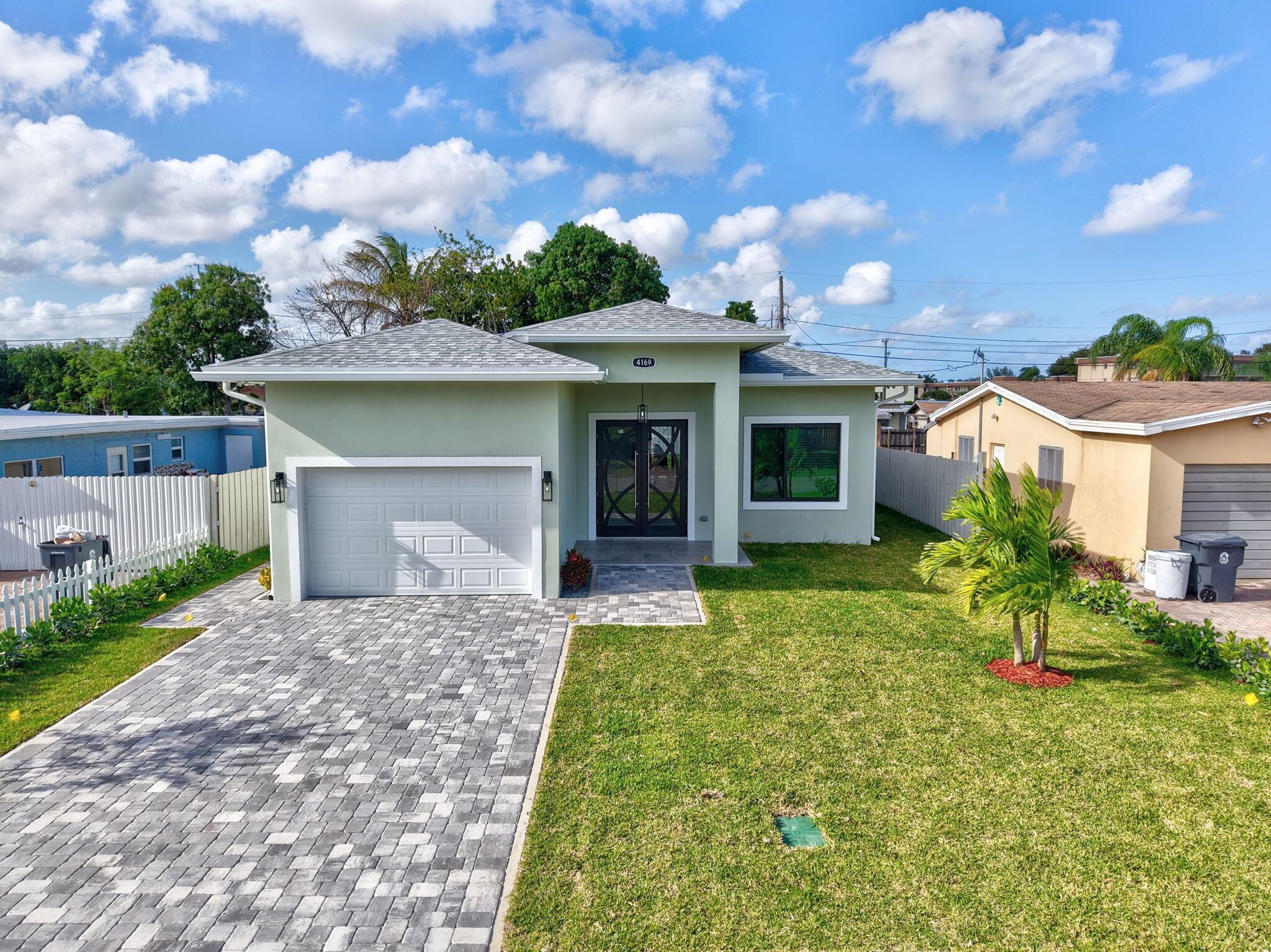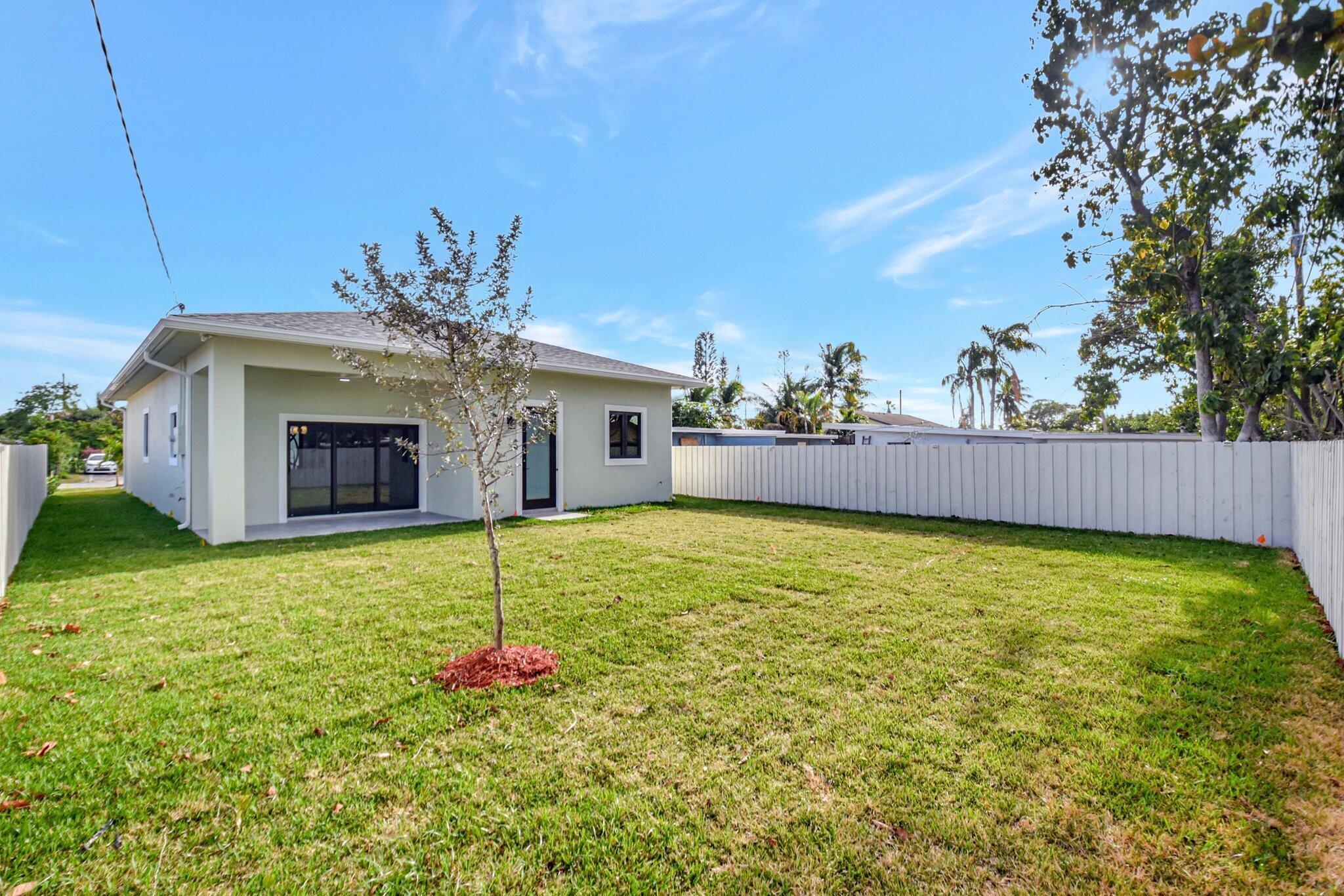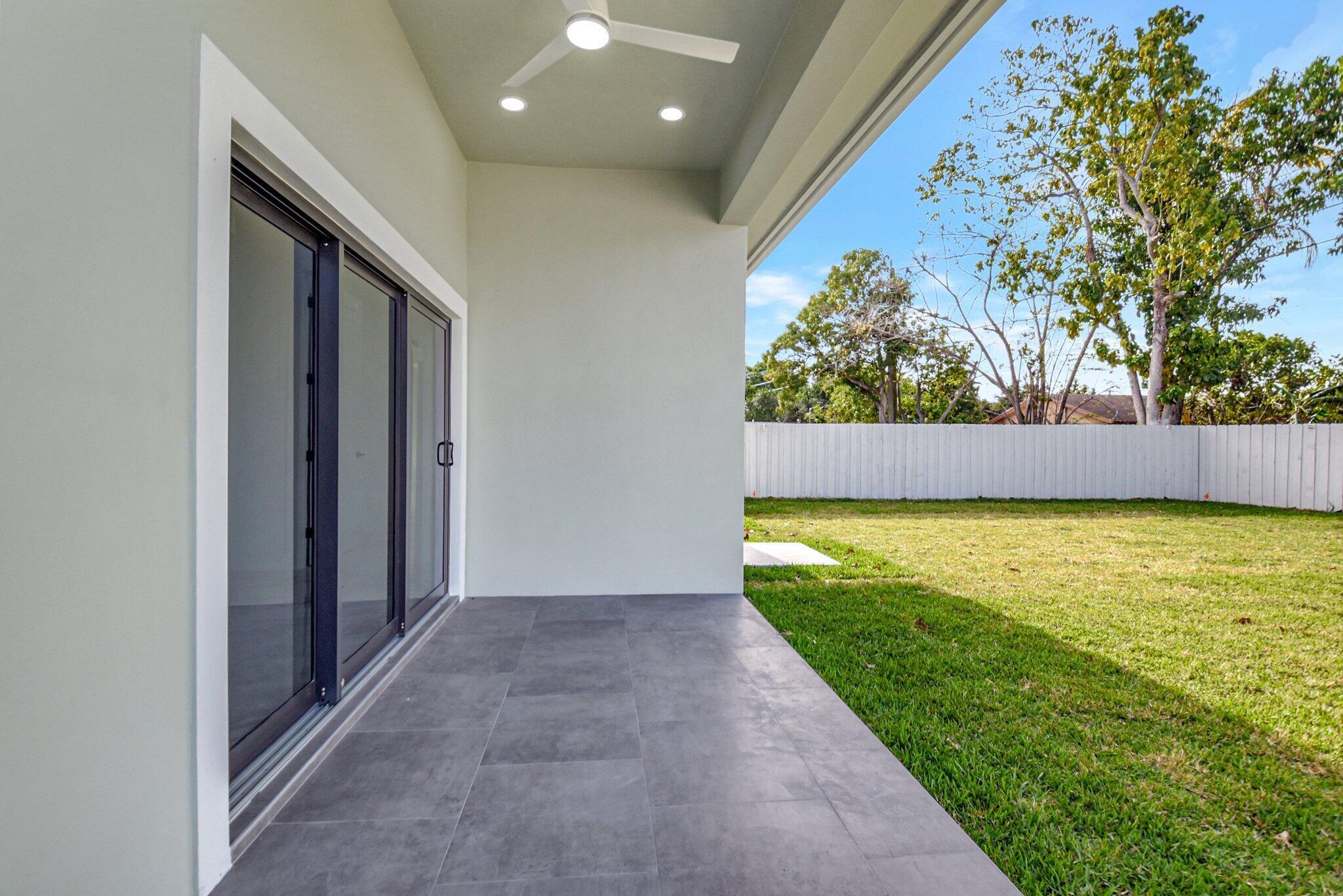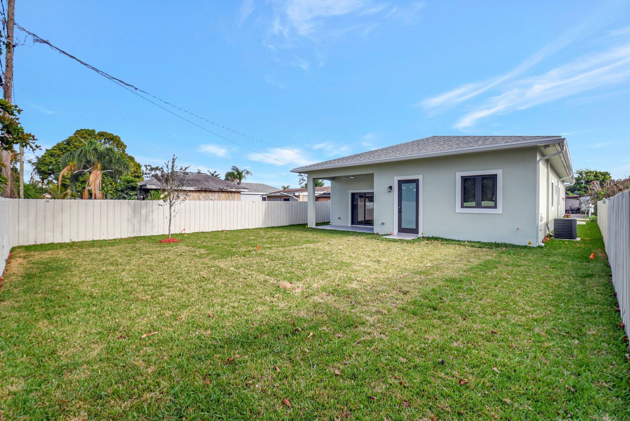 New construction! 2025 build in West Palm Beach -- and NO HOA! This modern 3-bedroom, 2-bath home w/ 1 car garage offers a bright open layout with 11-ft ceilings, large-format porcelain tile flooring, and impact-rated windows and doors throughout! The designer kitchen features a striking waterfall quartz island, stainless steel appliances, and seating for four -- perfect for everyday living and entertaining. The split floor plan includes a spacious primary suite with a walk-in closet and a double vanity bathroom. Step outside to a covered patio and fully fenced backyard with plenty of room to add a pool! Tucked away on a quiet street just minutes from I-95, downtown West Palm Beach, and PBI Airport. Seller is offering a rate buy-down or closing cost credit -- ask for details!