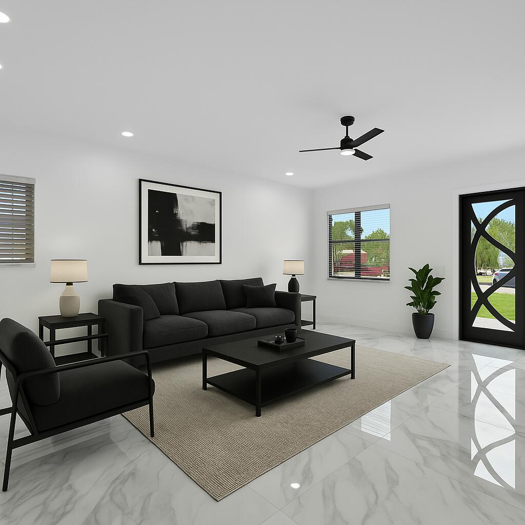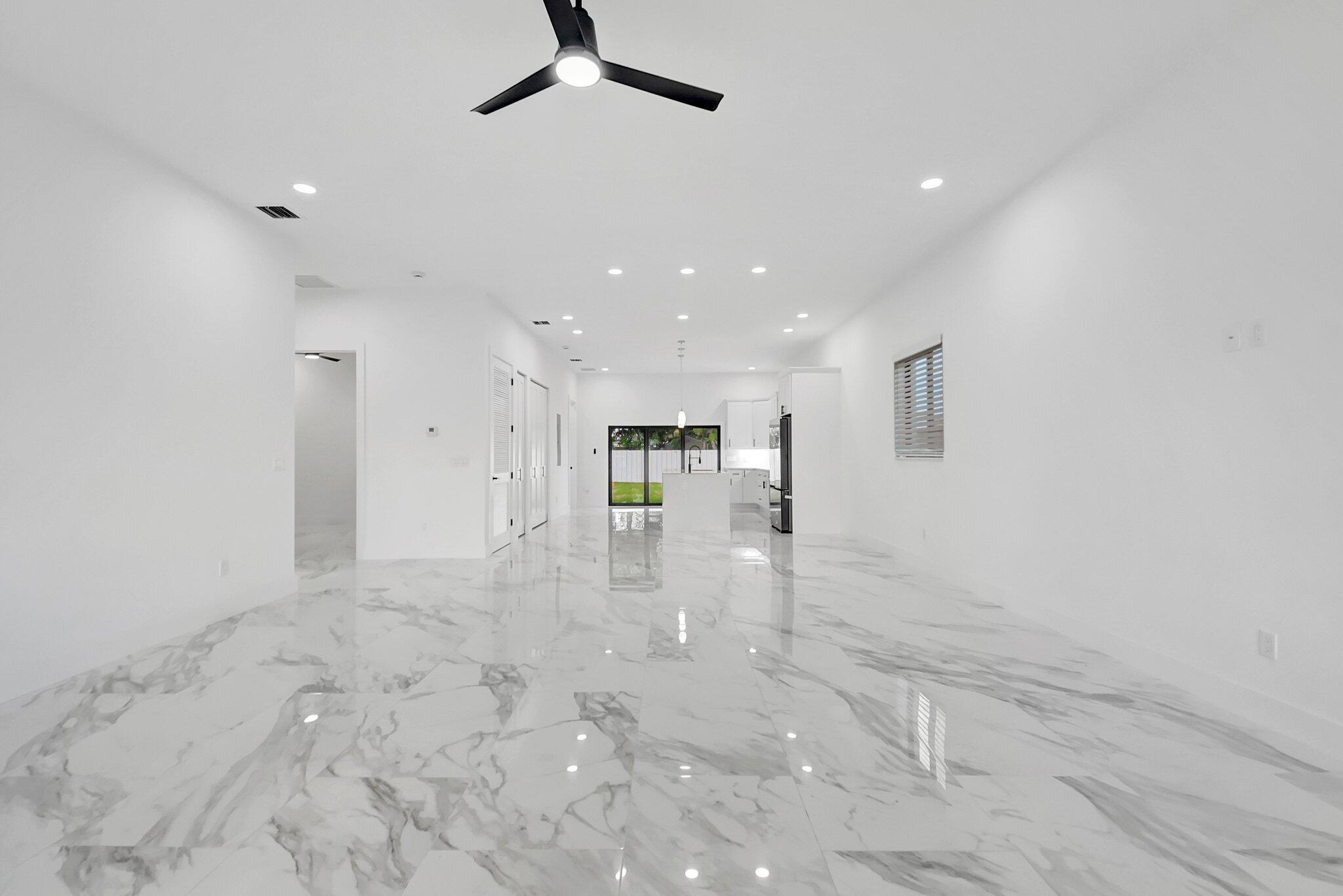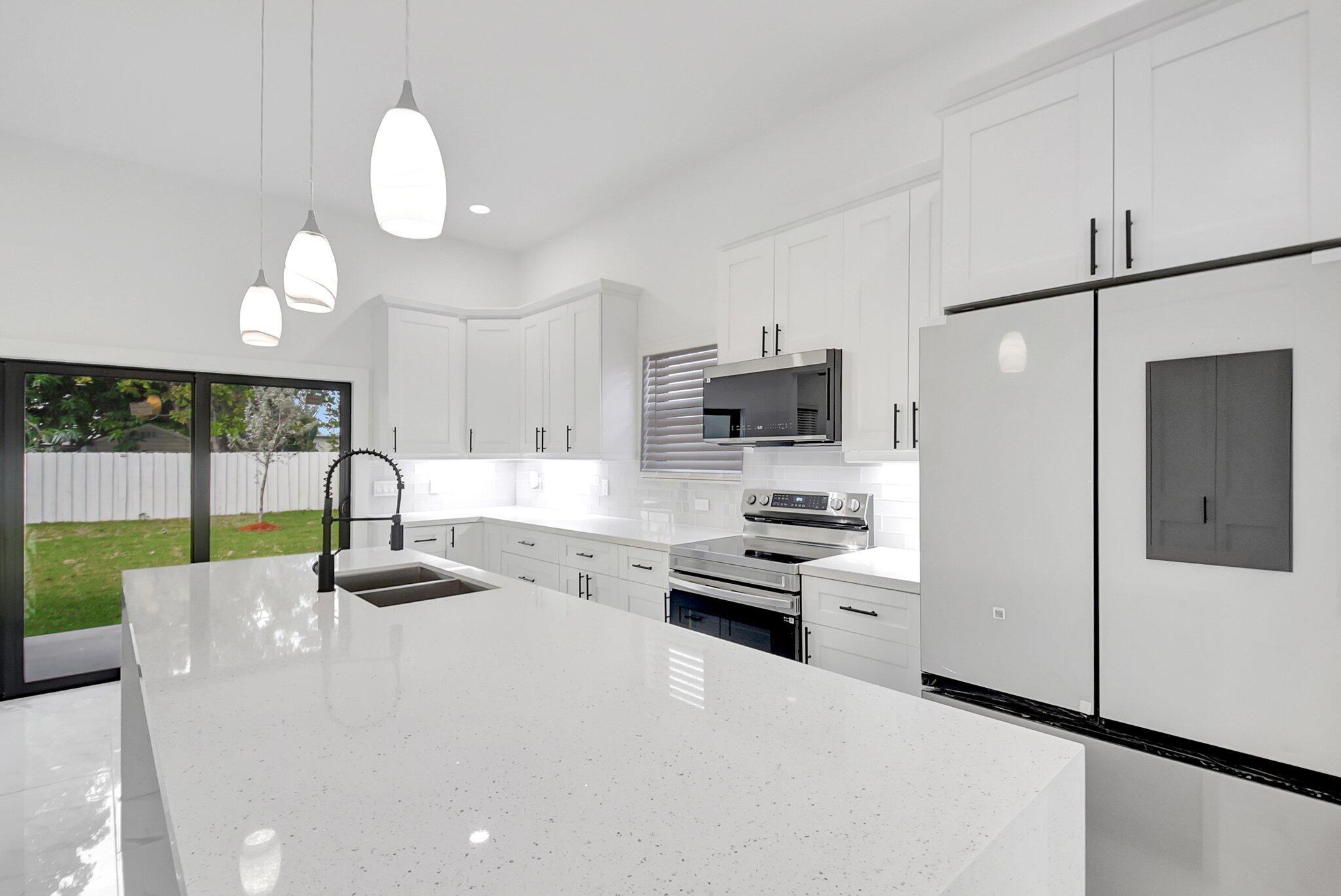 New construction! 2025 build in West Palm Beach -- and NO HOA! This modern 3-bedroom, 2-bath home w/ 1 car garage offers a bright open layout with 11-ft ceilings, large-format porcelain tile flooring, and impact-rated windows and doors throughout! The designer kitchen features a striking waterfall quartz island, stainless steel appliances, and seating for four -- perfect for everyday living and entertaining. The split floor plan includes a spacious primary suite with a walk-in closet and a double vanity bathroom. Step outside to a covered patio and fully fenced backyard with plenty of room to add a pool! Tucked away on a quiet street just minutes from I-95, downtown West Palm Beach, and PBI Airport. Seller is offering a rate buy-down or closing cost credit -- ask for details!