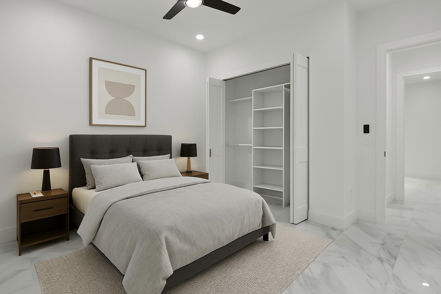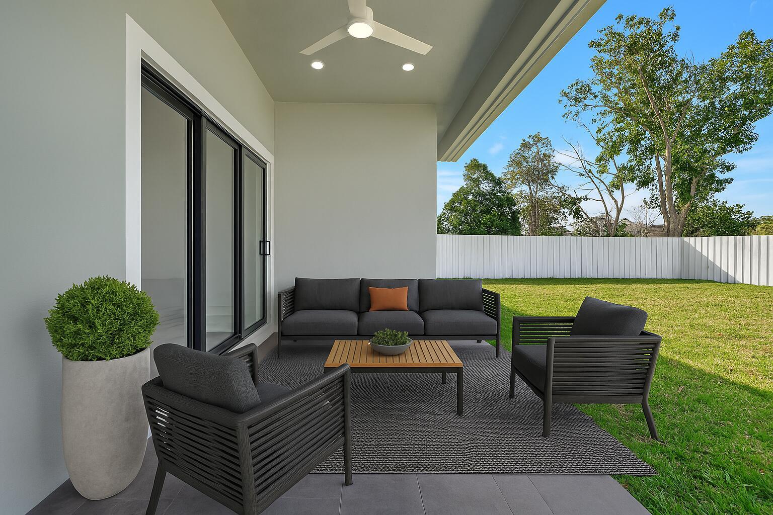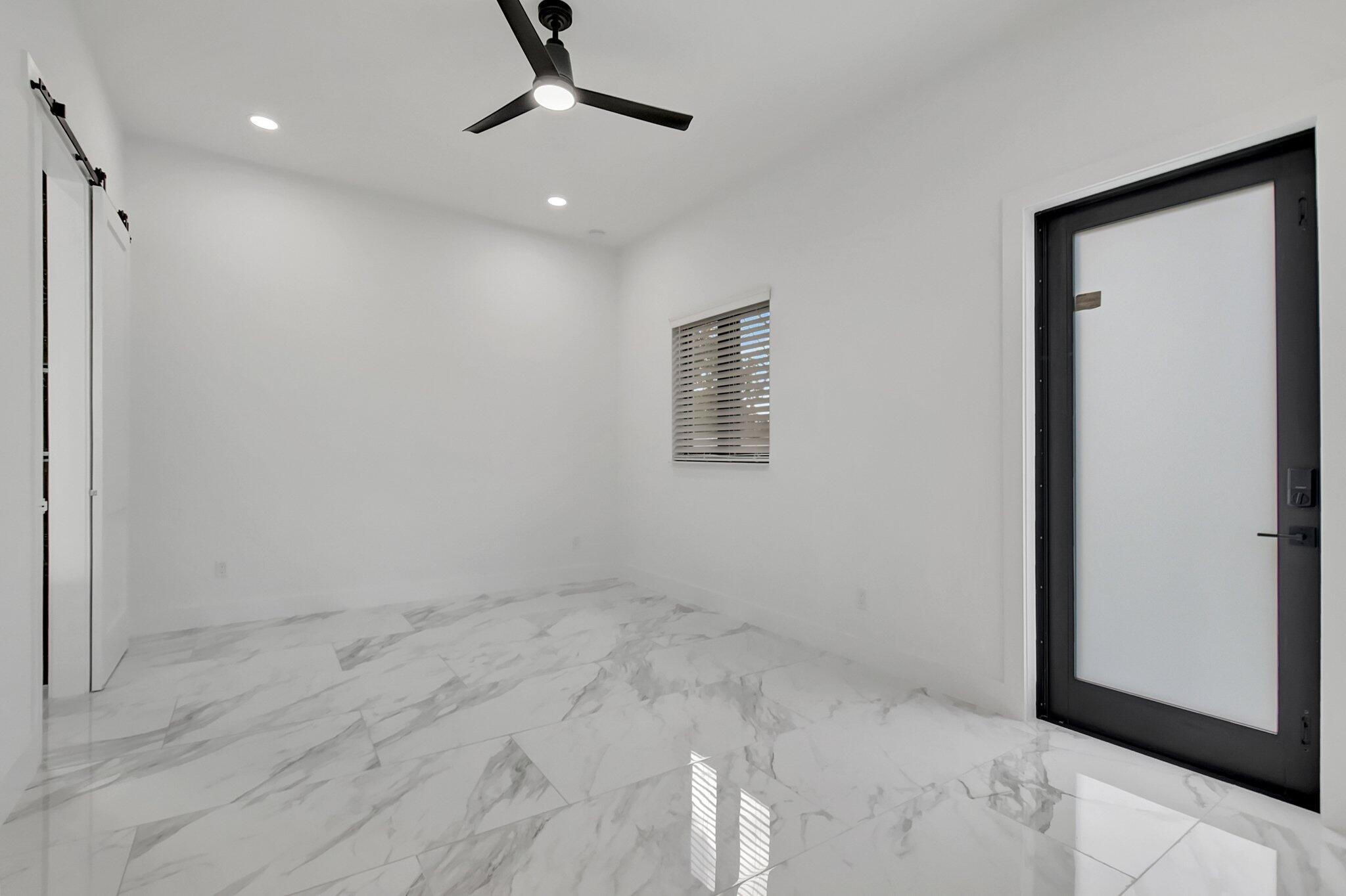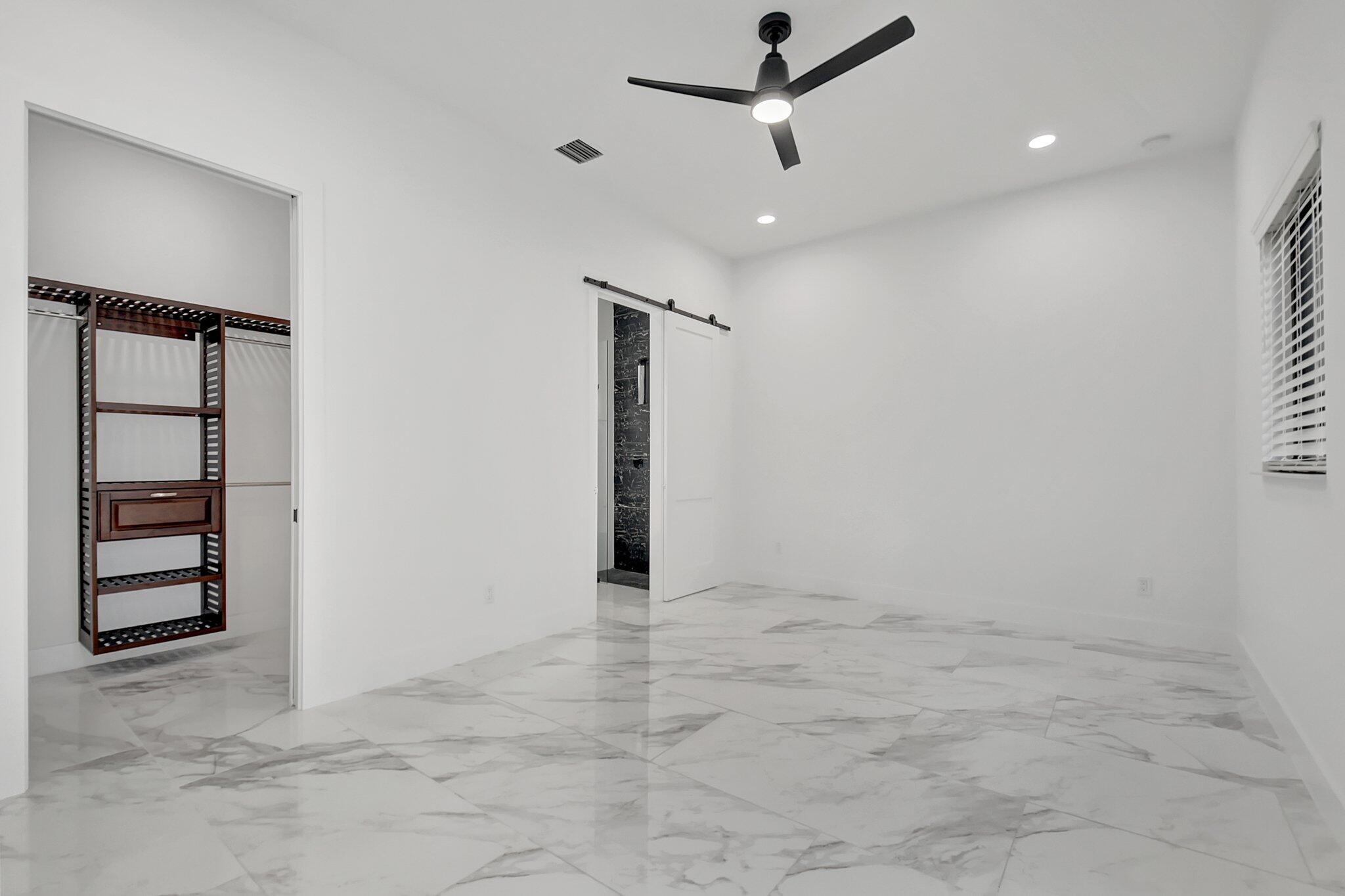 New construction! 2025 build in West Palm Beach -- and NO HOA! This modern 3-bedroom, 2-bath home w/ 1 car garage offers a bright open layout with 11-ft ceilings, large-format porcelain tile flooring, and impact-rated windows and doors throughout! The designer kitchen features a striking waterfall quartz island, stainless steel appliances, and seating for four -- perfect for everyday living and entertaining. The split floor plan includes a spacious primary suite with a walk-in closet and a double vanity bathroom. Step outside to a covered patio and fully fenced backyard with plenty of room to add a pool! Tucked away on a quiet street just minutes from I-95, downtown West Palm Beach, and PBI Airport. Seller is offering a rate buy-down or closing cost credit -- ask for details!