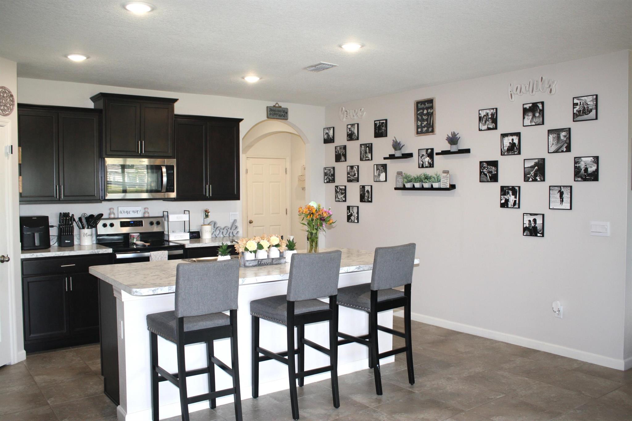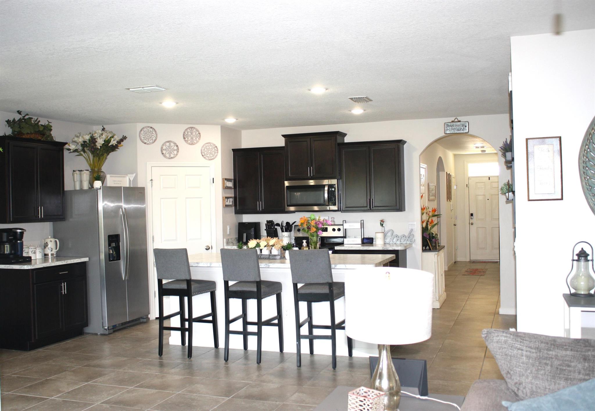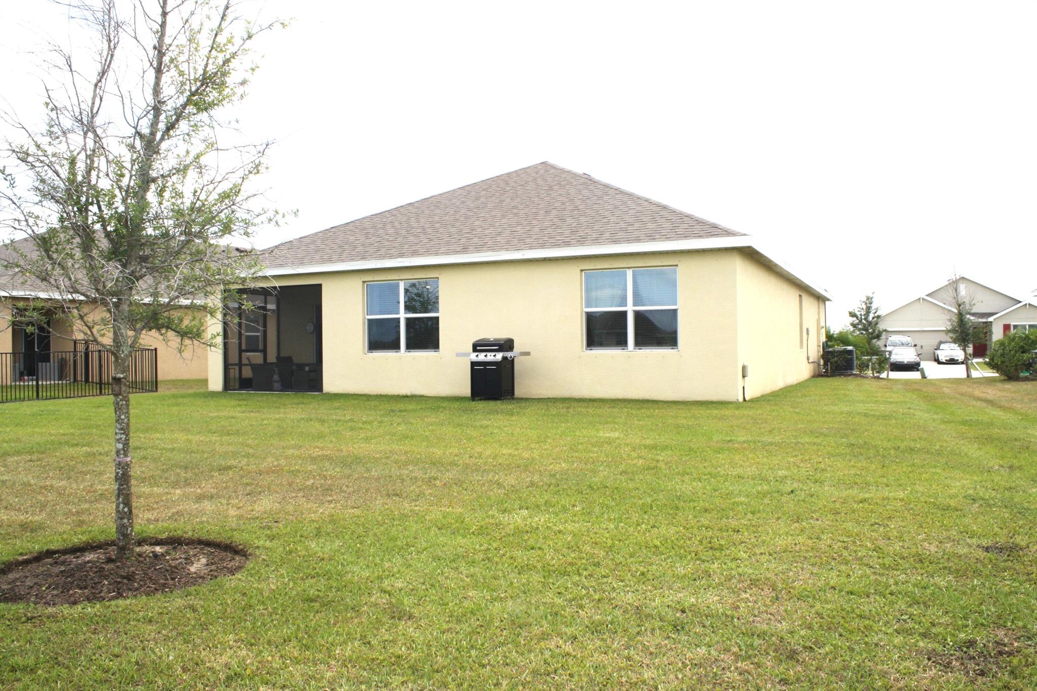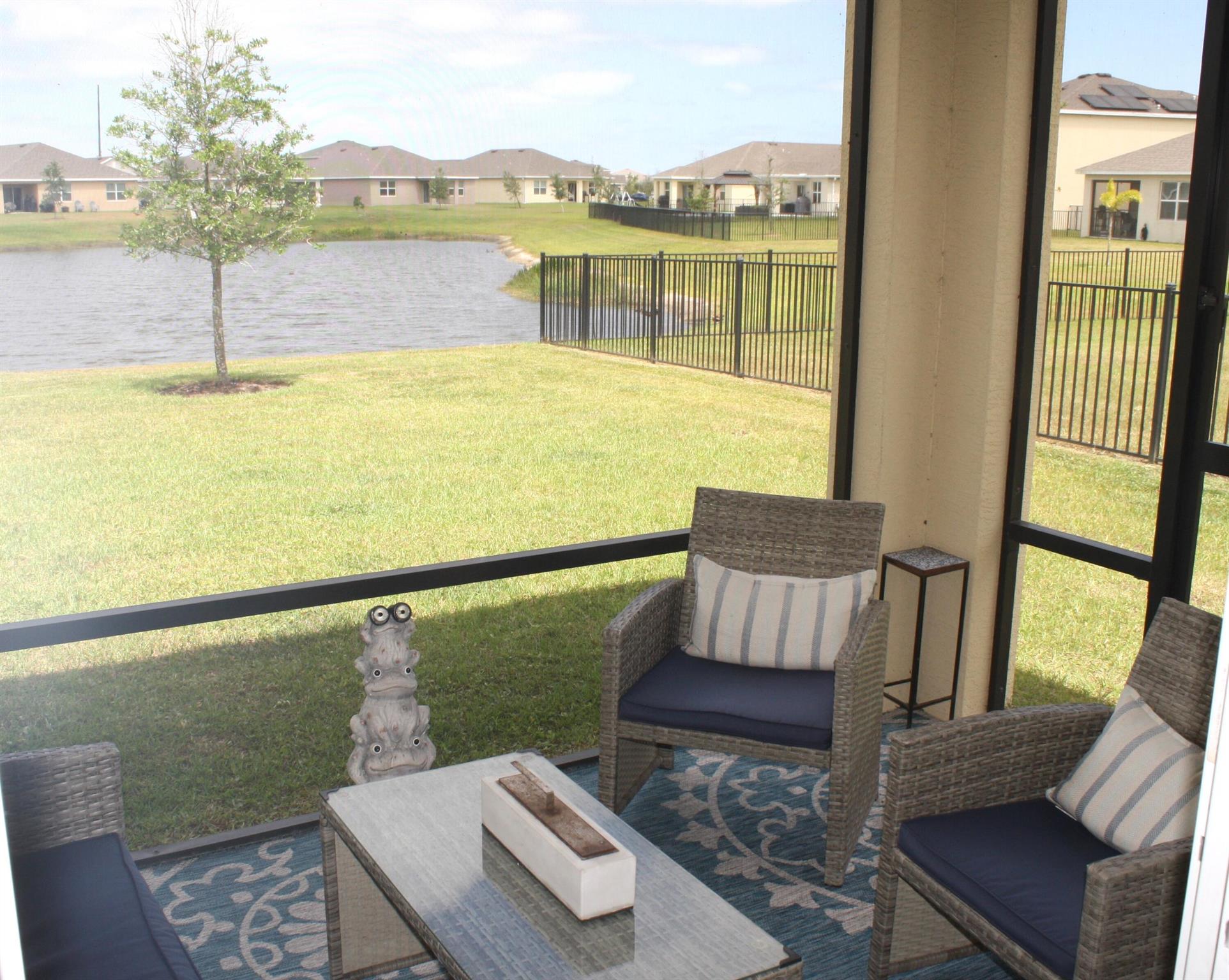 Welcome to this Beautiful Cozy home, built in 2022. This CBS, 4 bedroom, 2 bath home on the lake is located in the Community of CREEKSIDE with a fantastic open floor plan, spacious kitchen with island, stainless steel appliances in kitchen, large pantry and lots of cabinets. House is equiped with alarm system that is monitored through ADT, and has smart home capabilities, sliders leading to screened patio, tile in living areas, ceiling fans, shutters, auto-zoned sprinkler system on well. Laundry Room with cabinets & shelf. Don't miss this opportunity to live in Creekside, a charming sidewalk community located near the turnpike and I-95, stores, restaurants and churches.