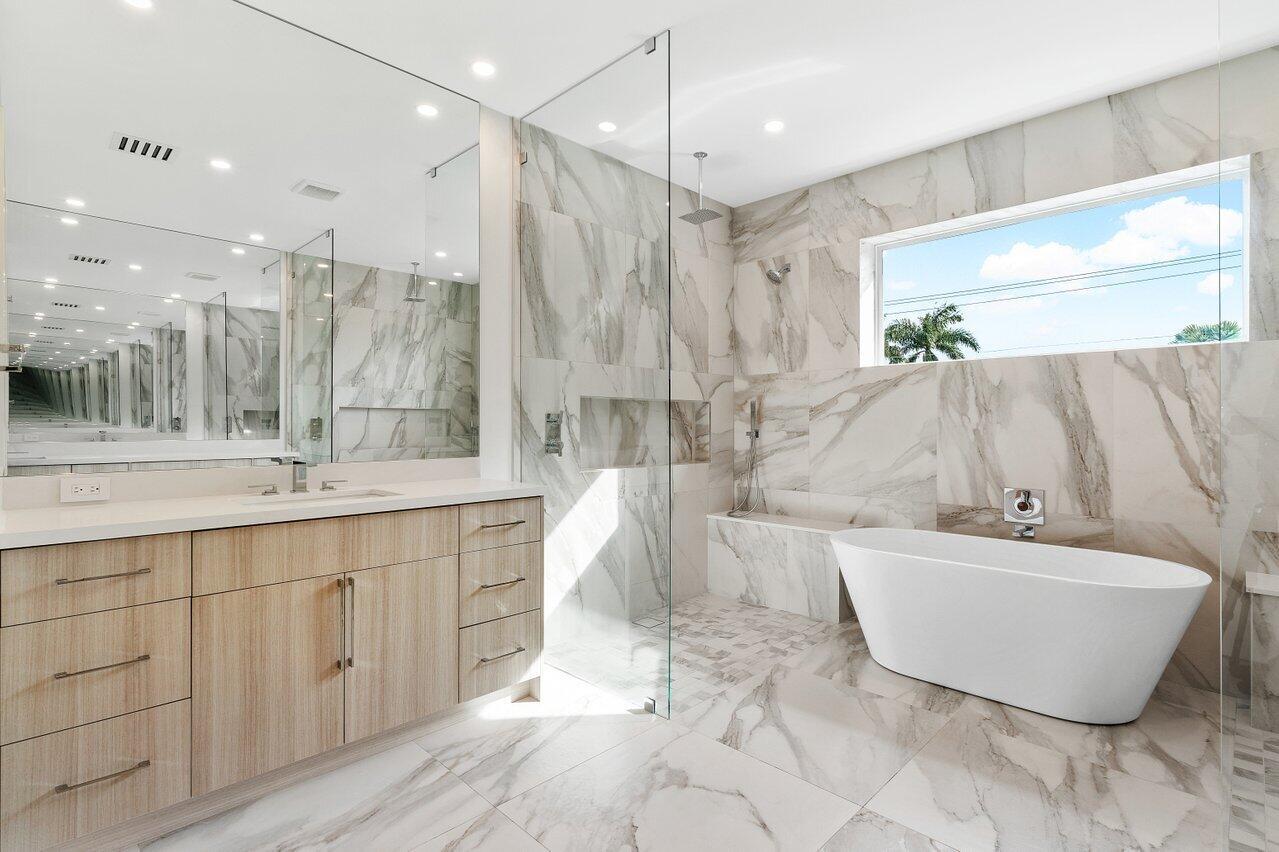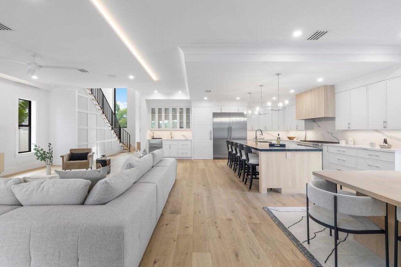 Under construction modern perfection near Downtown Delray Beach being built by reputable local developer Edgewater GC. This stunning home has 4 bedrooms, 5 bathrooms, a 2 car garage and a salt water pool. There are extensive high-end finishes, a tile roof, impact windows and doors, real hardwood floors throughout, custom lighting, 8 inch baseboards, linear diffusers and gorgeous cabinetry. The gourmet chef's kitchen boasts Thermador appliances including a 48'' six burner gas range, two dishwashers, double wall ovens, a microwave, refrigerated drawers and an 48'' French door refrigerator. The covered stone patio features an inlaid wood ceiling. Prime location near the beach and Downtown Delray. You can live your best Floridian dream lifestyle in the heart of paradise. Completion mid 2026.