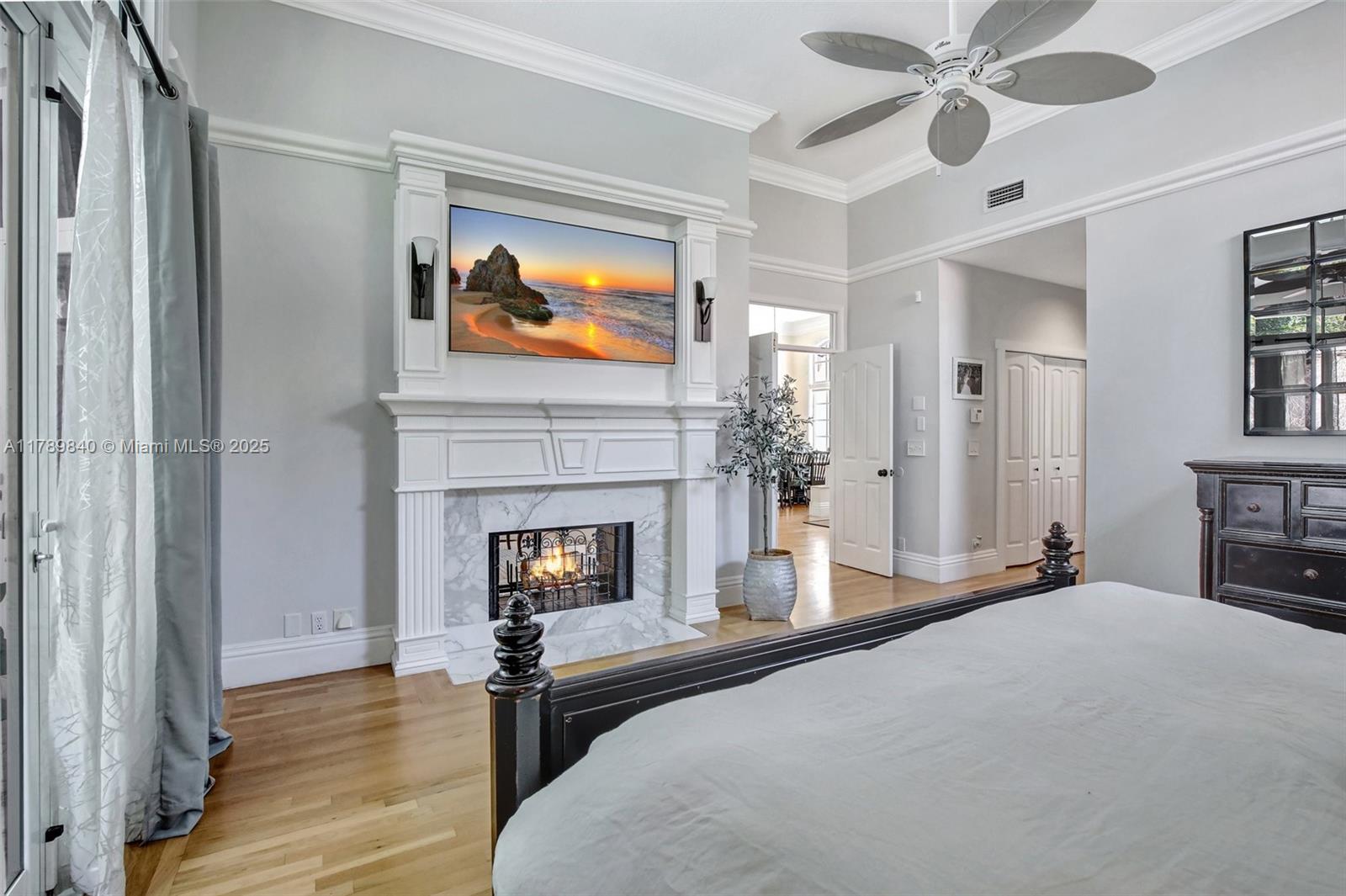 Just under 3,200 SF of open living space with soaring 13-ft ceilings and rich oak hardwood floors. This 5BR/3BA home features a 2018 roof, impact windows/shutters, and a high-end kitchen with Quartz counters, Grabill cabinets, and Sub-Zero, Wolf, and Dacor appliances. Expansive family room with built-in wine bar and cooler. Luxurious primary suite with custom his-and-her closets, renovated spa bath, and dual-sided fireplace to the living room. Big secondary bedrooms; 5th bedroom currently an office. Enjoy the oversized covered patio, sparkling pool, and Tiki Hut with built-in grill. Live the luxury lifestyle at WHCC!