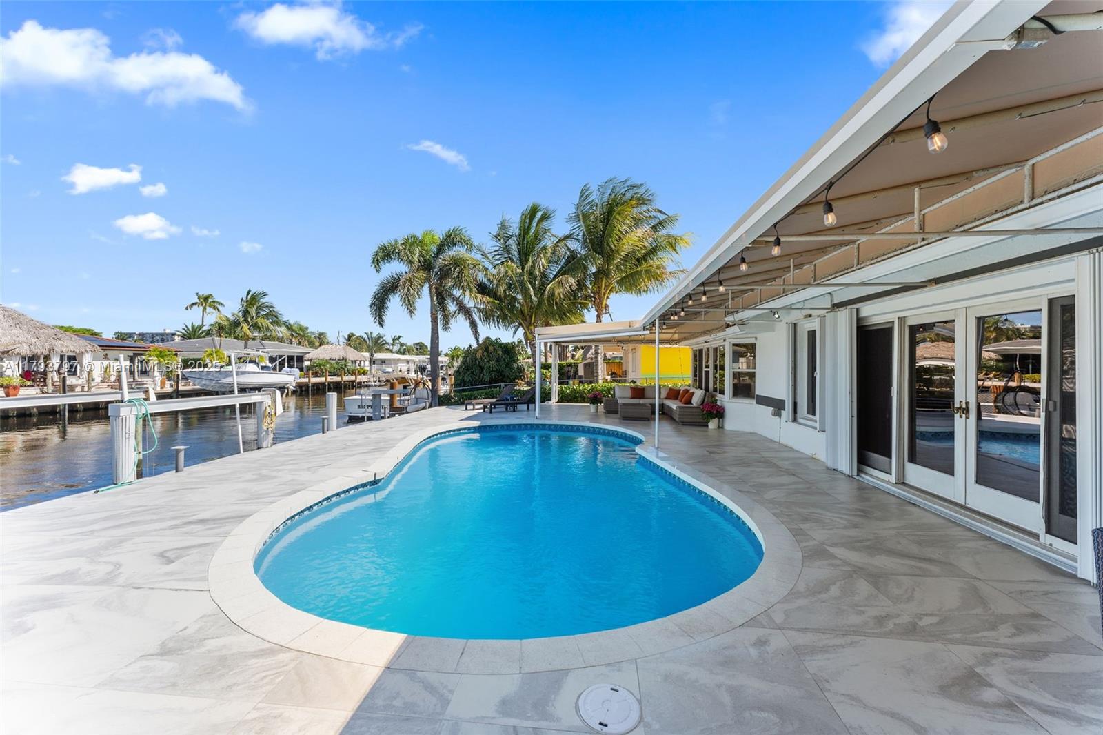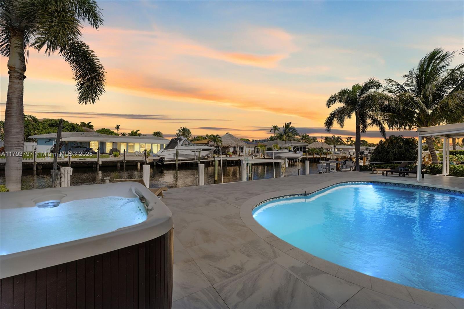 Perfect for a primary residence, second home, or investment property. This beautifully upgraded 4-bedroom (two primary bedroom), 3-bath waterfront home offers 70' water frontage and was extensively renovated in 2021 with permits. Updates include new electrical and plumbing systems, modern flooring, fully remodeled bathrooms, a sleek kitchen with stainless steel appliances, and a pool deck updated with new tiles, and hot tub. Enjoy quick ocean access (one fixed bridge) by boat—just minutes away—right from your private dock equipped with a boat lift. Located just minutes from the beach! Ask about seller financing option. No HOA. Currently tenant occupied (month to month lease). Call listing agent for showings, 24-48hrs notice required. Motivated seller. All offers will be considered.
