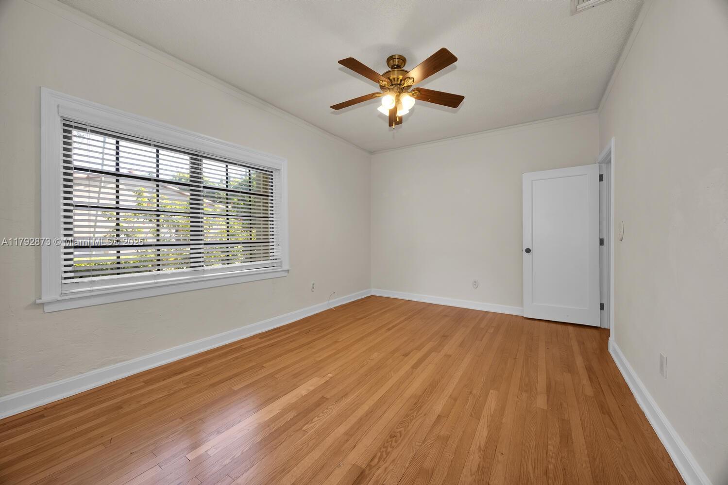 Discover the allure of this lovely Spanish home in prime Coral Gables. The main house features 3 bedrooms and 2 bathrooms, including a primary suite. You'll appreciate the blend of classic charm with tile and wood floors, tall ceilings, and inviting living spaces like the sunny enclosed front porch and spacious dining/living rooms. The recently renovated eat-in kitchen boasts a generous pantry. The separate 1-bedroom, 1-bathroom guest house offers flexibility and includes a washer/dryer. Outside, a large side patio & landscaped yard await your enjoyment. Practical features include a carport with loft storage, accordion hurricane shutters, a newer A/C, and a newer flat roof (5 yrs). Location is key – Close to the Shops at Merrick Park & easy access to Miracle Mile & Coconut Grove.