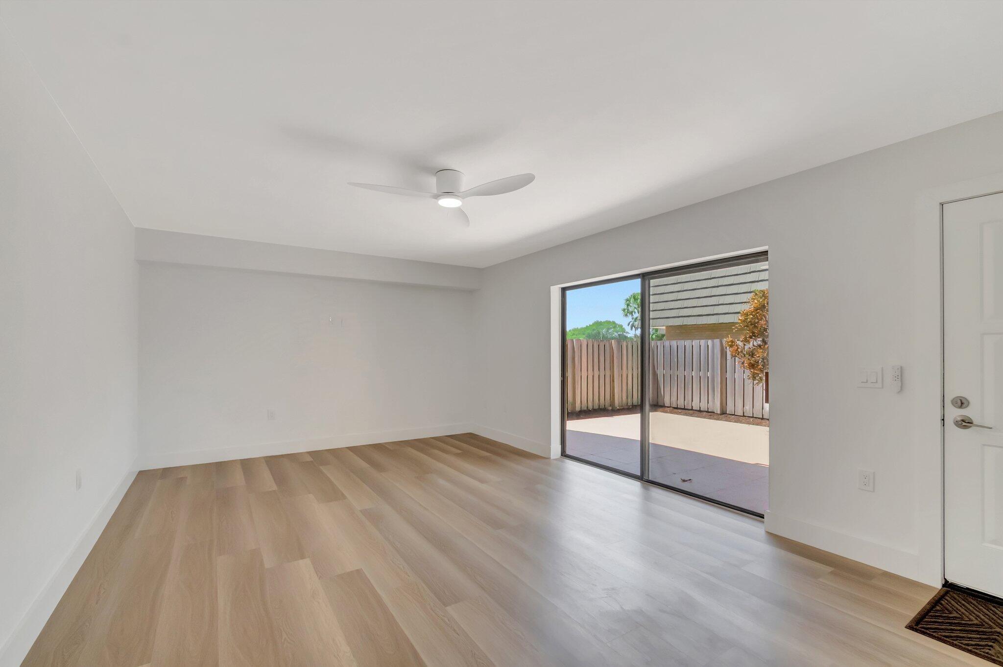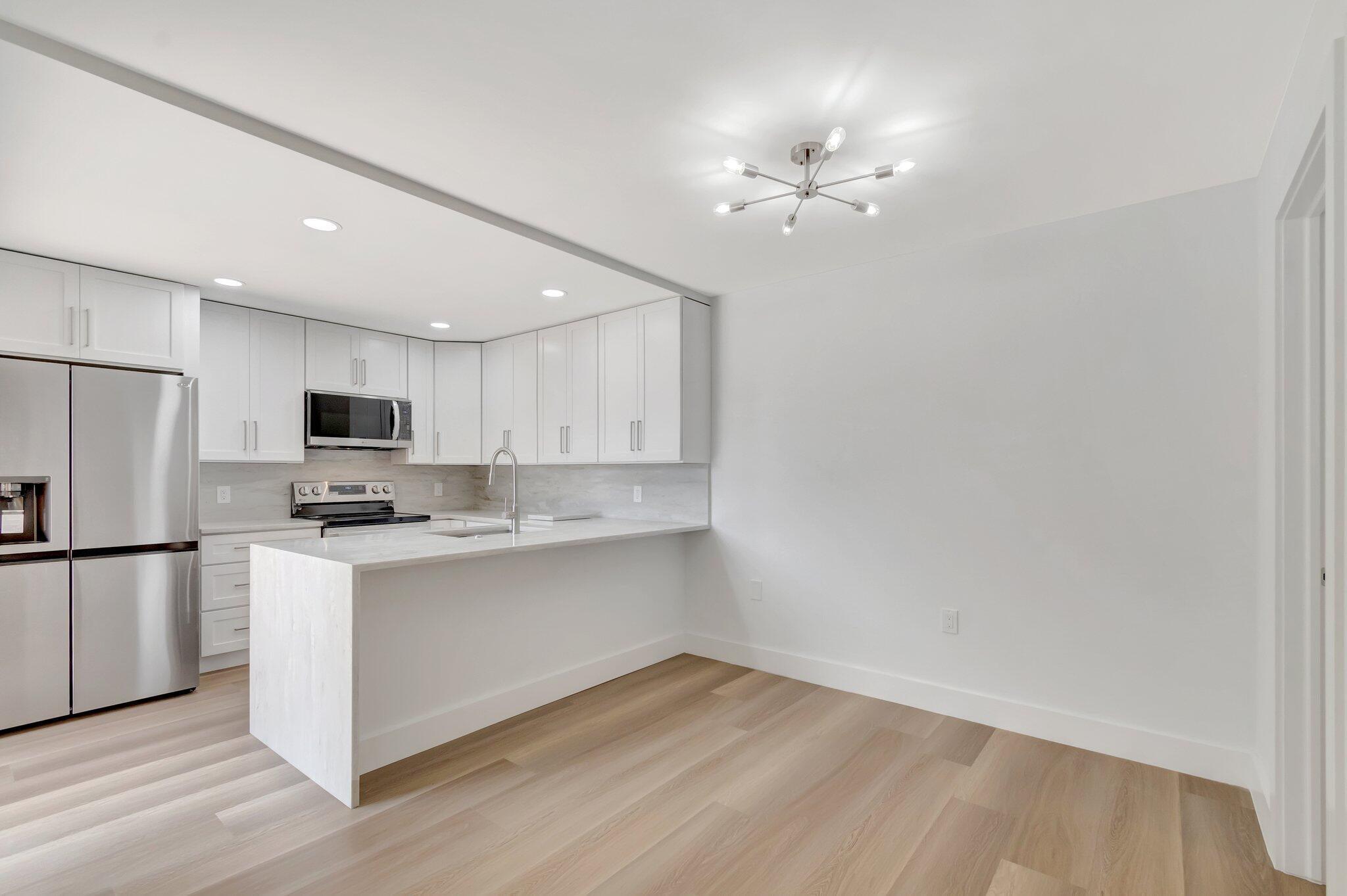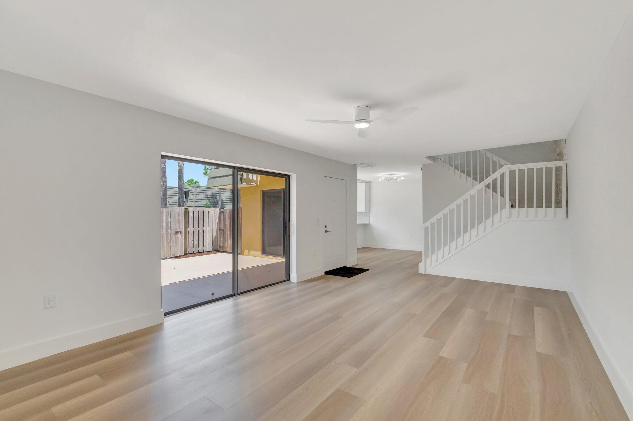 Welcome to this beautifully renovated 2 bedroom 2 1/2 bath townhouse in the well managed and maintained community, Village of Sandalwood. Freshly updated from top to bottom, this move in ready home offers high end finishes and stylish design throughout.Step inside to discover luxury vinyl plank flooring and a stunning new kitchen featuring sleek modern cabinetry, LG ThinQ stainless steel appliances, quartz countertops and backsplash and a striking quartz waterfall island. A custom stone accent wall leads you upstairs where you'll find two spacious bedrooms - each with its own bathroom and private balcony overlooking peaceful water views.