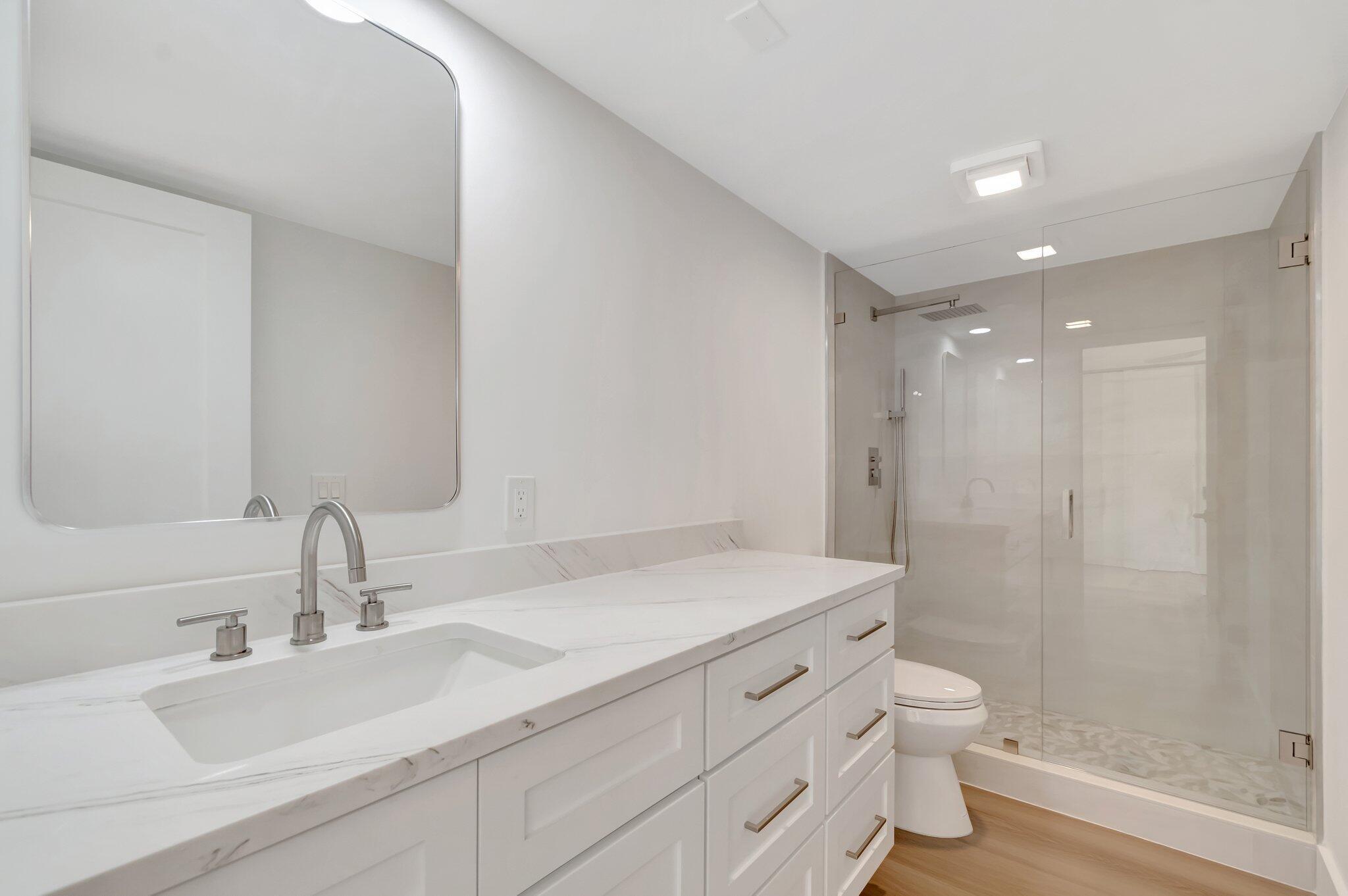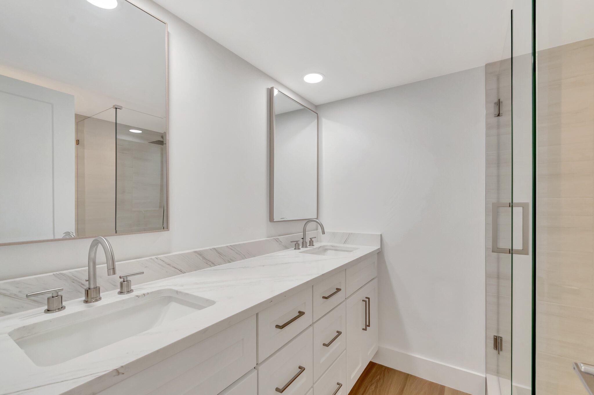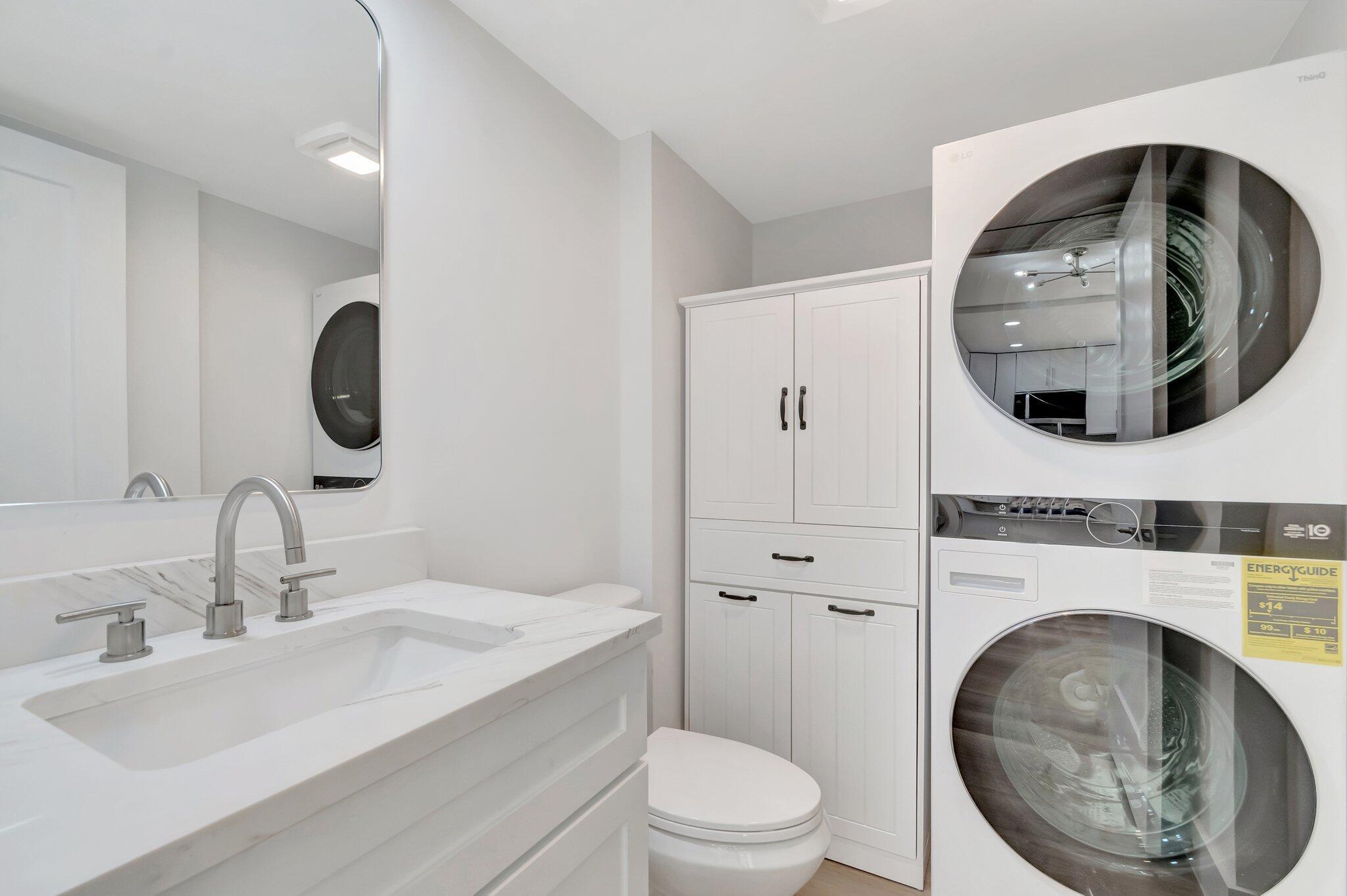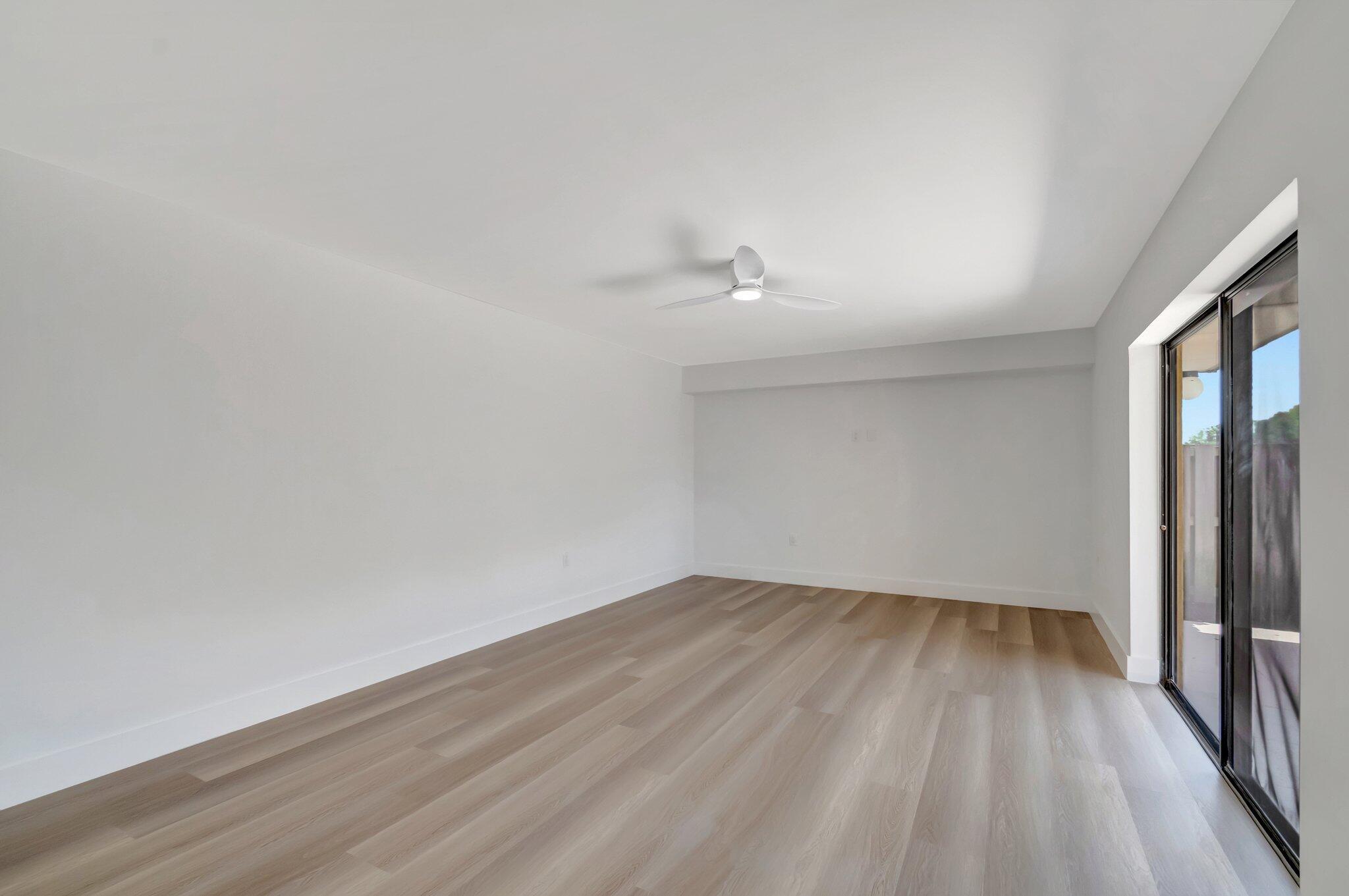 Welcome to this beautifully renovated 2 bedroom 2 1/2 bath townhouse in the well managed and maintained community, Village of Sandalwood. Freshly updated from top to bottom, this move in ready home offers high end finishes and stylish design throughout.Step inside to discover luxury vinyl plank flooring and a stunning new kitchen featuring sleek modern cabinetry, LG ThinQ stainless steel appliances, quartz countertops and backsplash and a striking quartz waterfall island. A custom stone accent wall leads you upstairs where you'll find two spacious bedrooms - each with its own bathroom and private balcony overlooking peaceful water views.