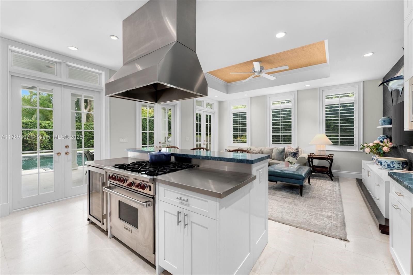 Nestled on a tranquil, tree-lined street in Coral Gables’ prestigious Platinum Triangle, this custom Key West style home blends timeless elegance with modern luxury. Featuring 4 bedrooms, 4.5 baths, and 4,564 total sq ft, it boasts exquisite craftsmanship with a rare copper roof, tray ceilings, millwork, and limestone and wood floors. The kitchen includes Sub Zero, Miele, and Wolf appliances with stainless steel and granite countertops. Outside, enjoy a tropical oasis by Debra Demarco with an infinity saltwater pool and summer kitchen. Additional amenities include CGI impact windows, a generator, and dual laundry rooms. Located in the sought-after Sunset School district with easy access to Coconut Grove and South Miami.