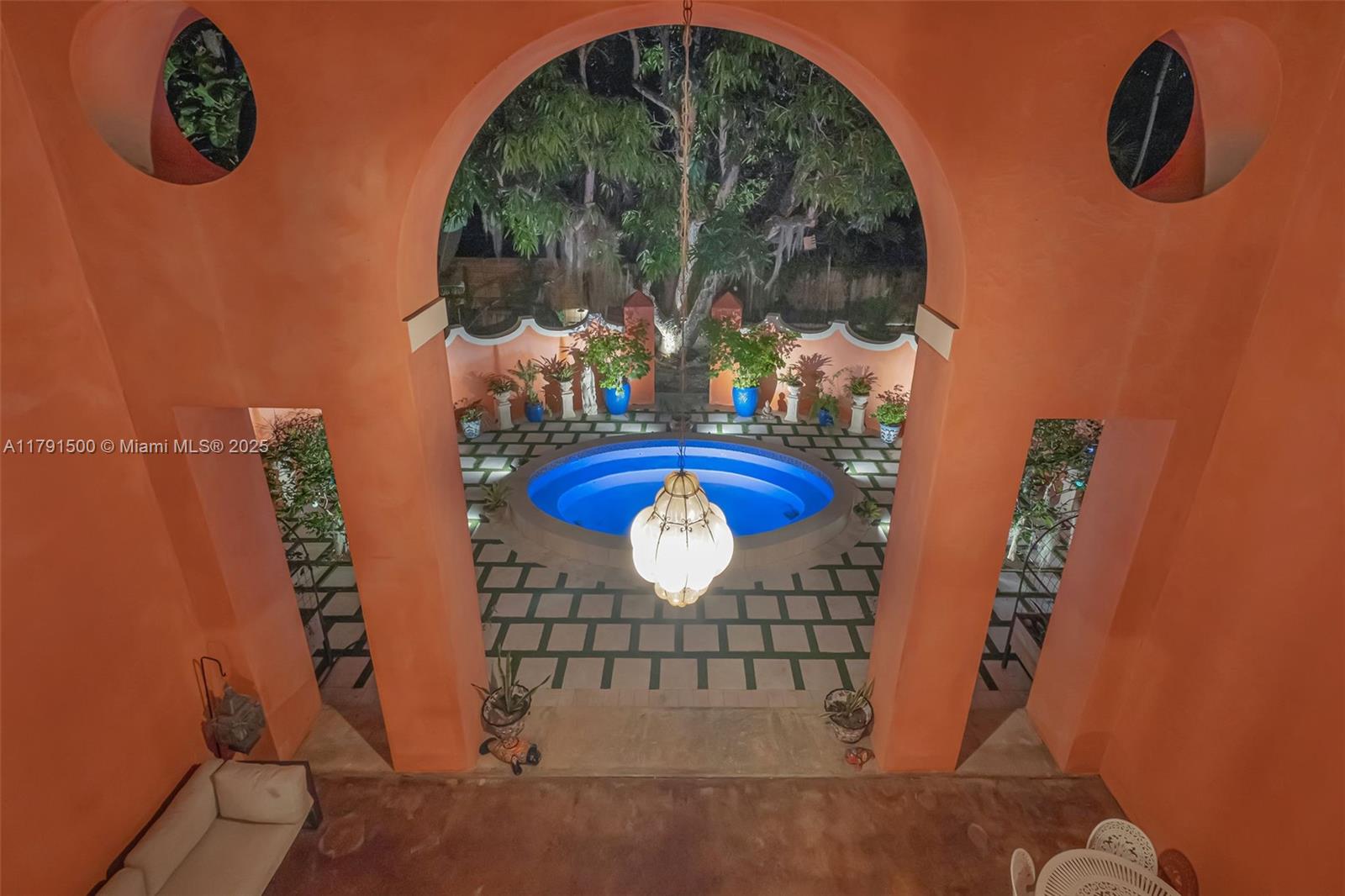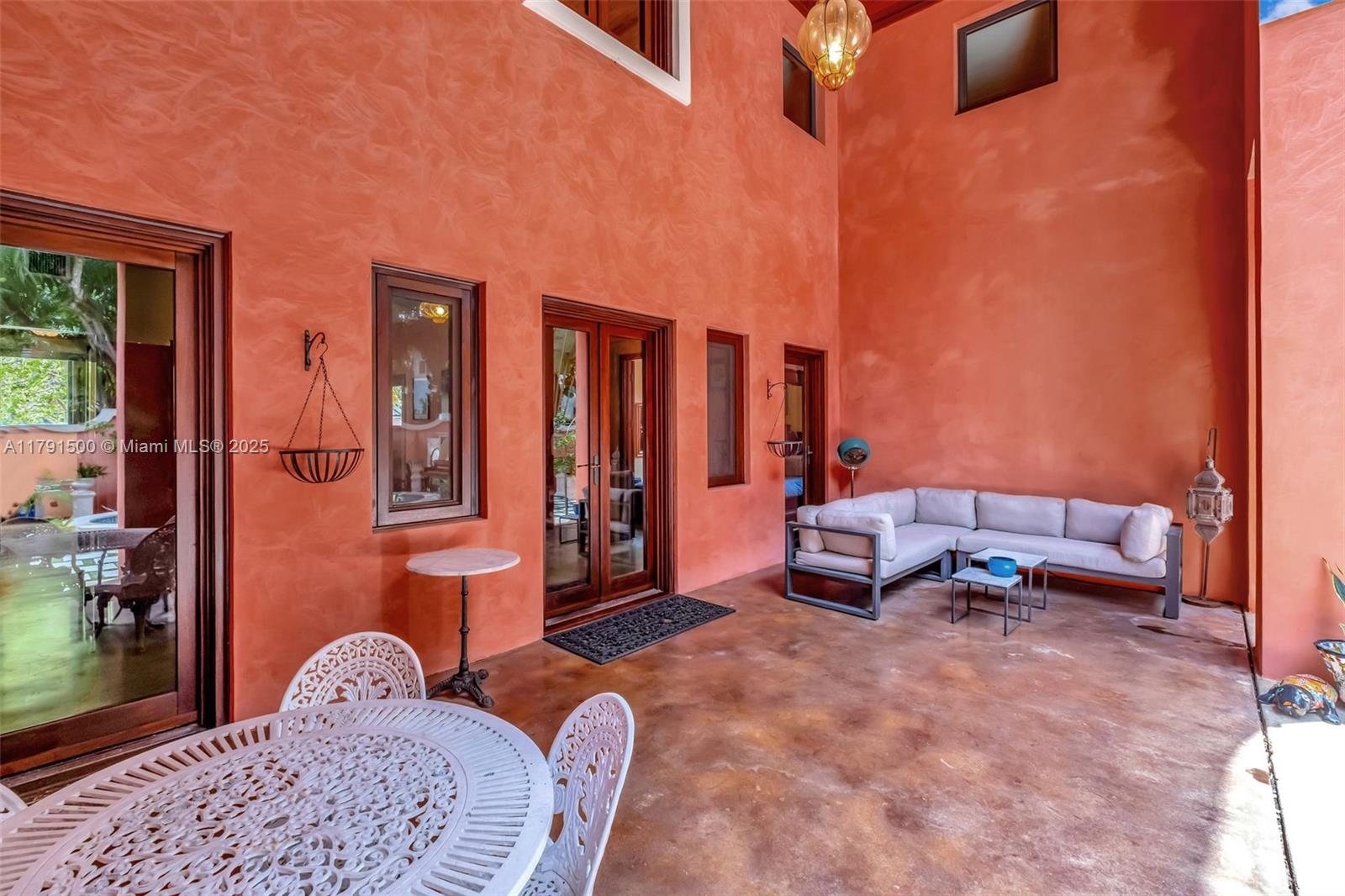 Ca’Rosa is a 4BD (+1 extra room)/3BA Venetian-inspired villa on a high elevation lot in verdant North Coconut Grove. Designed by Trelles Cabarrocas Architects, this magazine-worthy home won the 2013 Mizner Award for Excellence in Architecture. A perfect home to entertain in, Ca’Rosa features 12’ ceilings, combination pool/hot tub, soaring covered loggia, hand-blown Murano glass light fixtures, polished concrete floors, yellow pine paneling, and lush gardens with fruit trees and Florida native plants. Chef’s kitchen includes Wolf range, Bosch refrigerator, Miele dishwasher, marble counters and handmade mahogany/stained glass cabinetry. 11KW owned solar and smart thermostats can cover nearly all electricity costs. EV charger, huge attic, storage room, and generous closets. A masterpiece.
