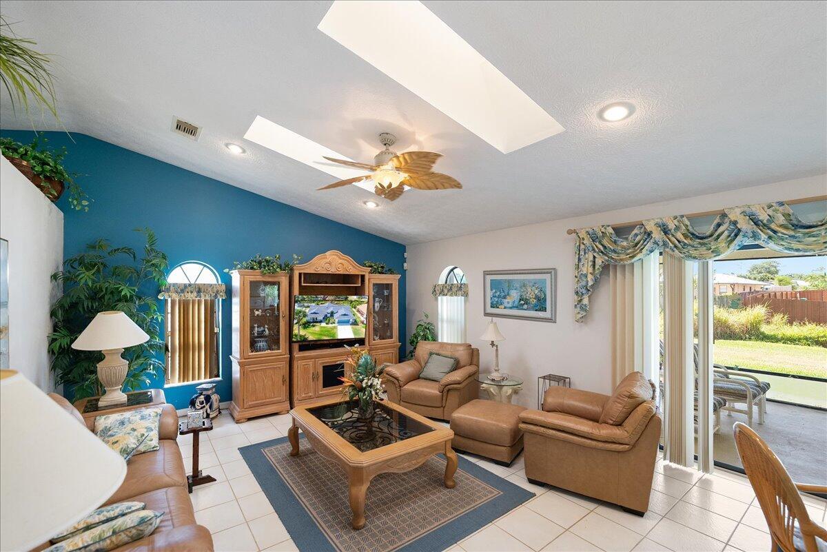 Live the Florida Lifestyle!!! This 3 bedroom, 2 bathroom 2 car garage was customized build with larger SF for this style home. Open kitchen with a large pass through to a screened in cover patio with plenty of room for a pool. The great room flows to a sliders to the patio and a formal dinning room. Master bedroom has double sinks and a separate jacuzzi tub. This split floor plan has tile throughout with the main bath a cabana bathroom. The roof '22. This home is conveniently located near Crosstown and making the commute easy to 95 or Turnpike.