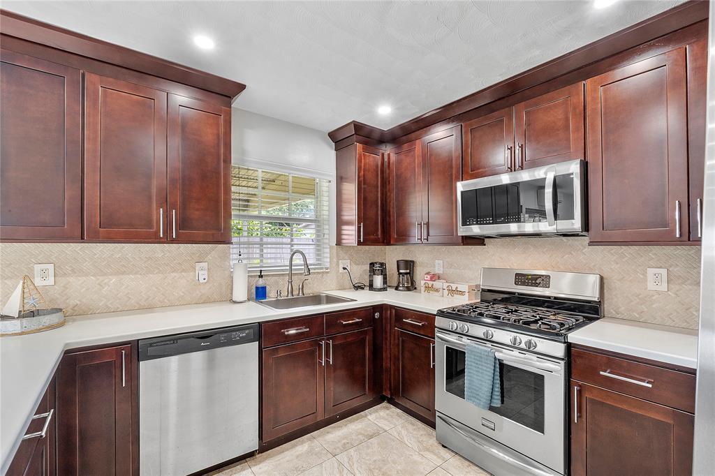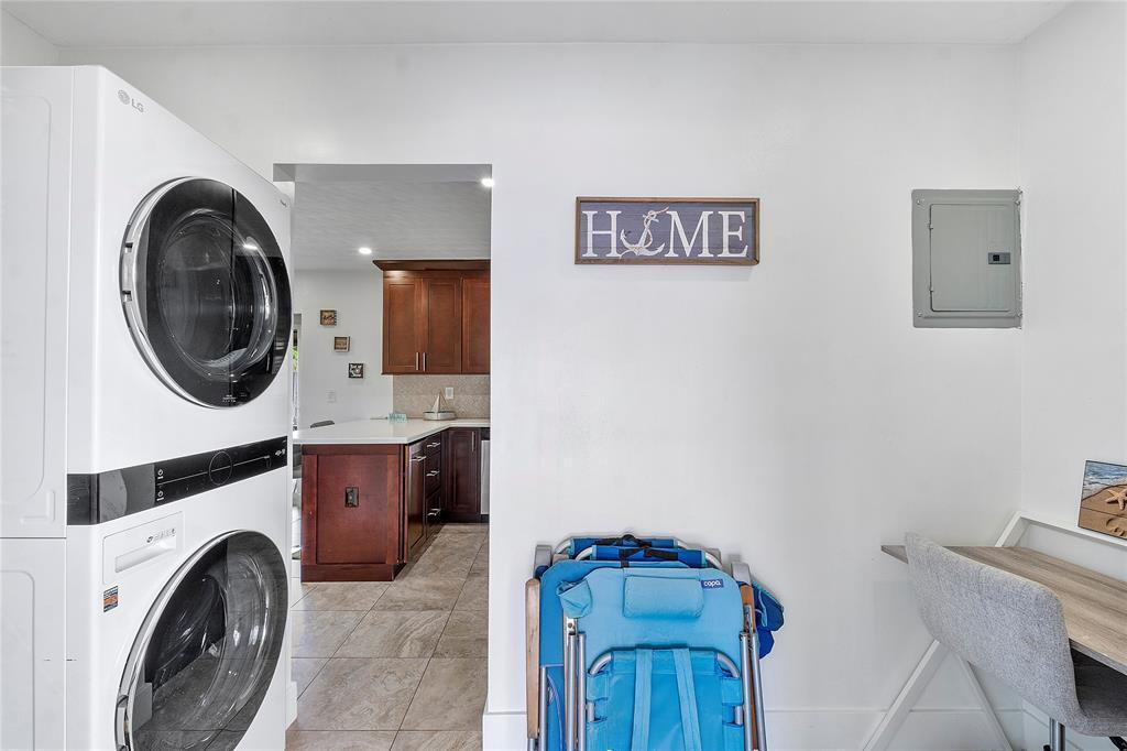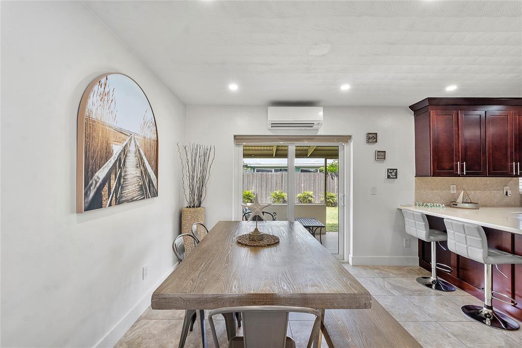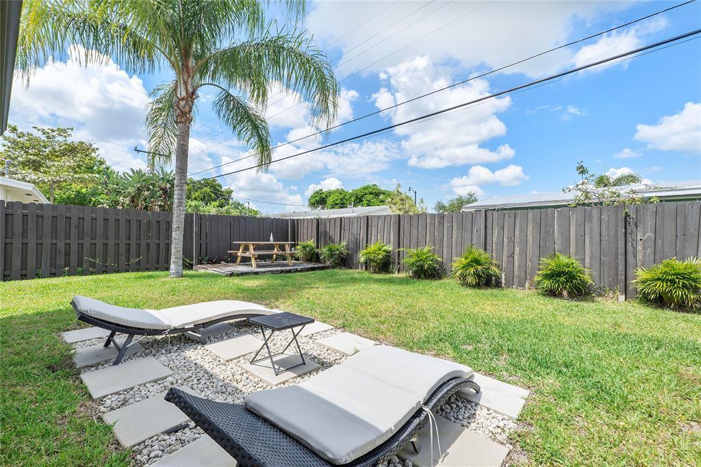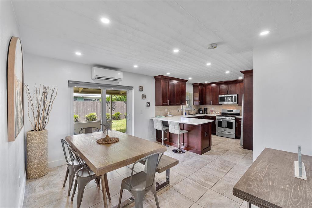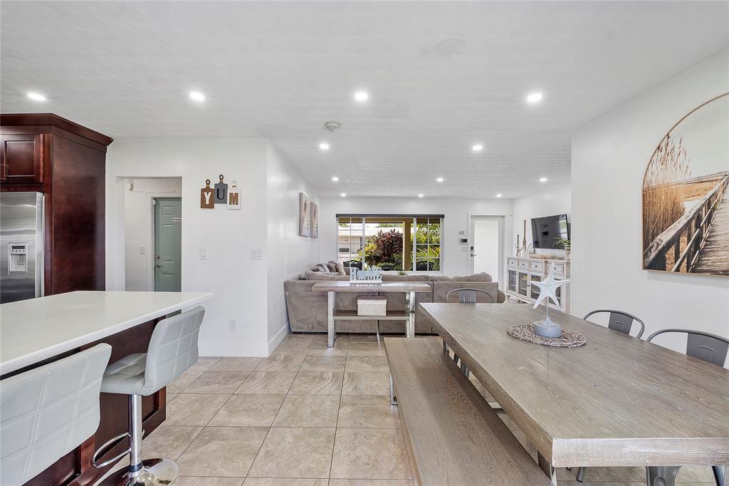 Live the coastal lifestyle in this updated Pompano Beach home, just minutes from the sand, downtown, shops, and restaurants. The open layout flows from the living and dining area into a modern kitchen with stainless steel appliances, gas stove, and bar seating. The spacious primary bedroom offers a quiet retreat, while the second bedroom is perfect for guests or a home office. A laundry room with washer, dryer, and built-in desk adds everyday ease. Enjoy a fenced yard, covered patio, and shed for storage. Ideal as a primary, vacation, or investment home!